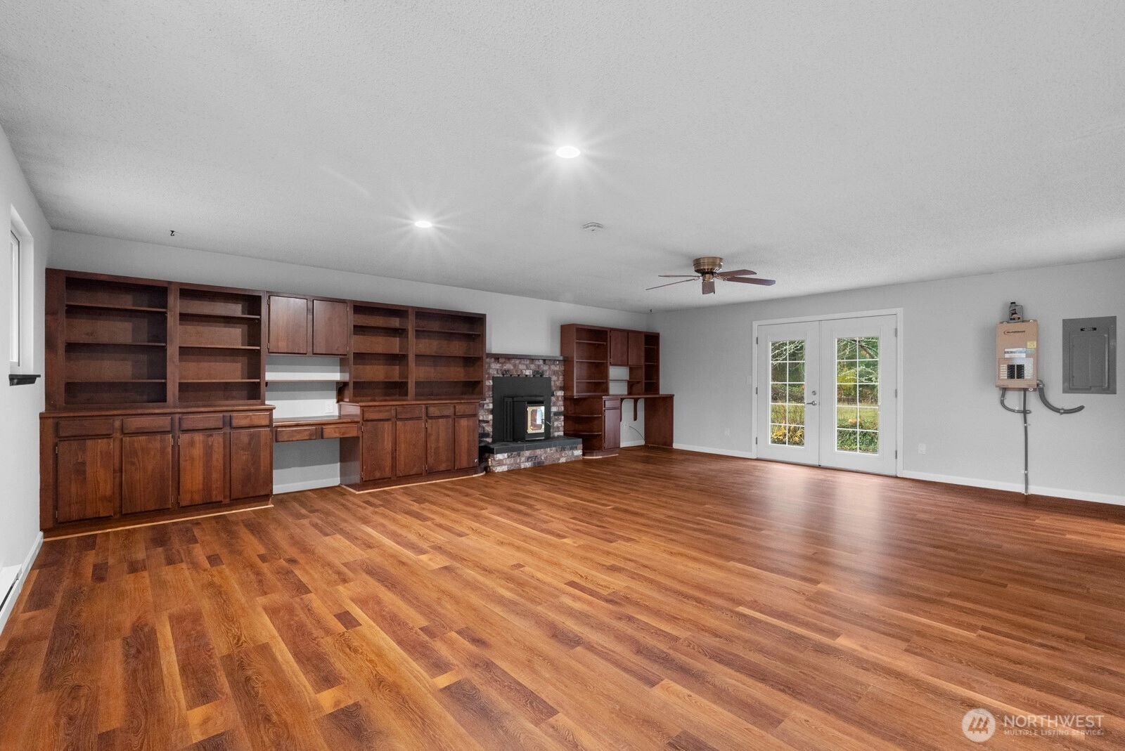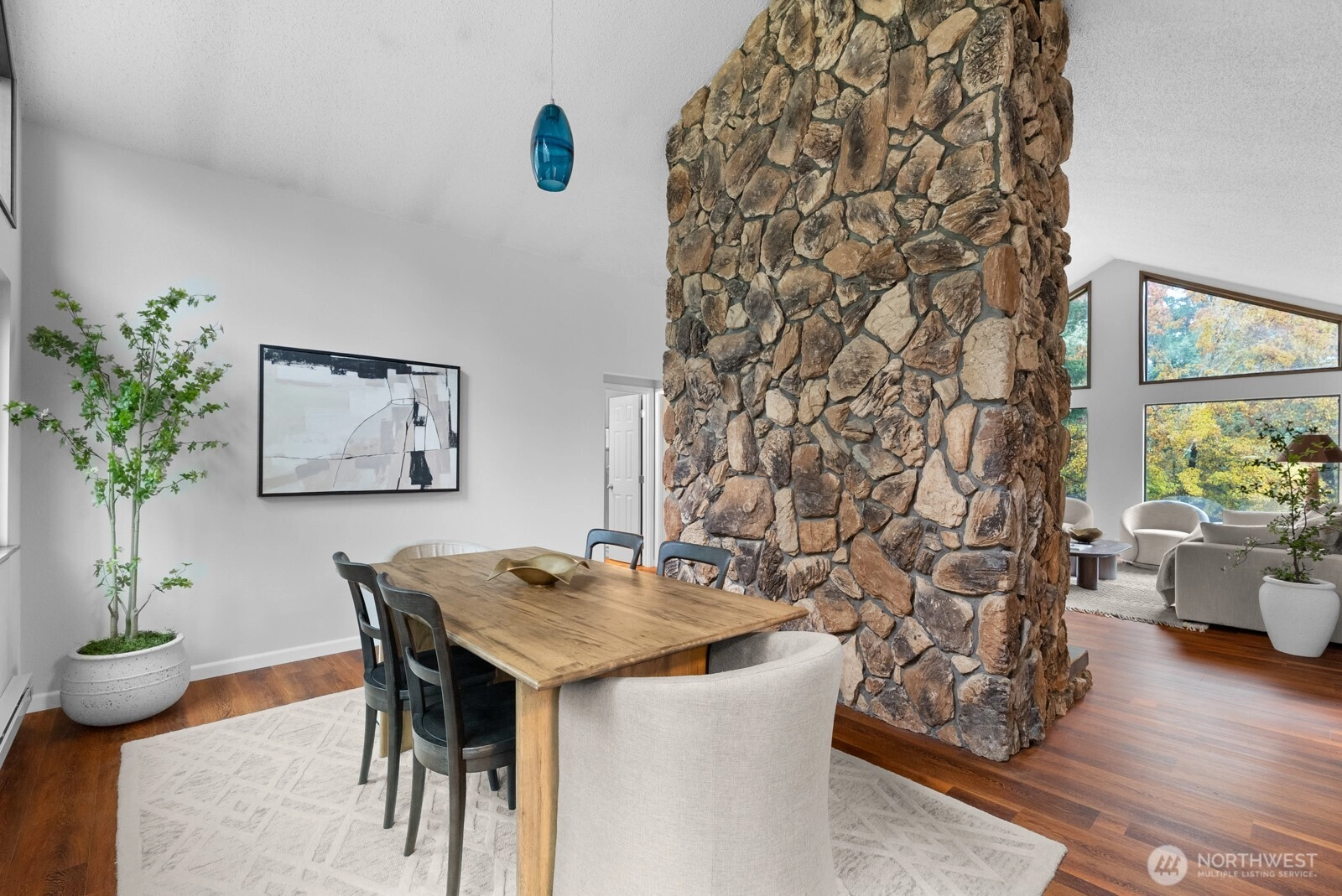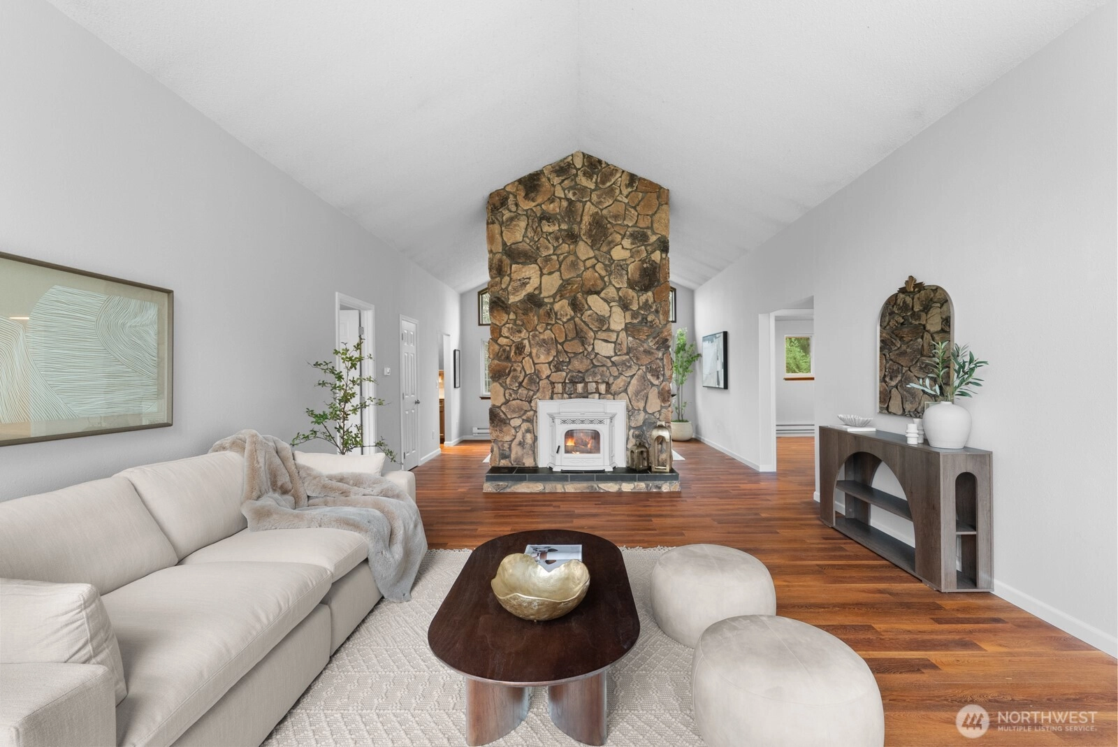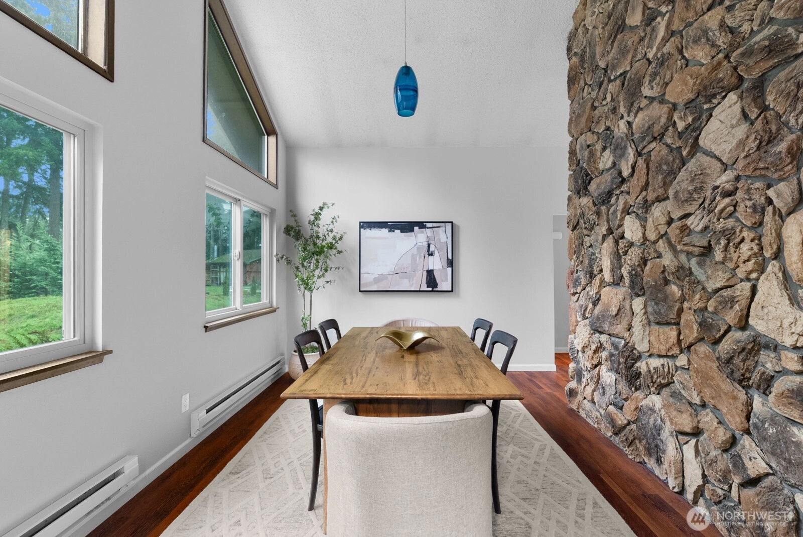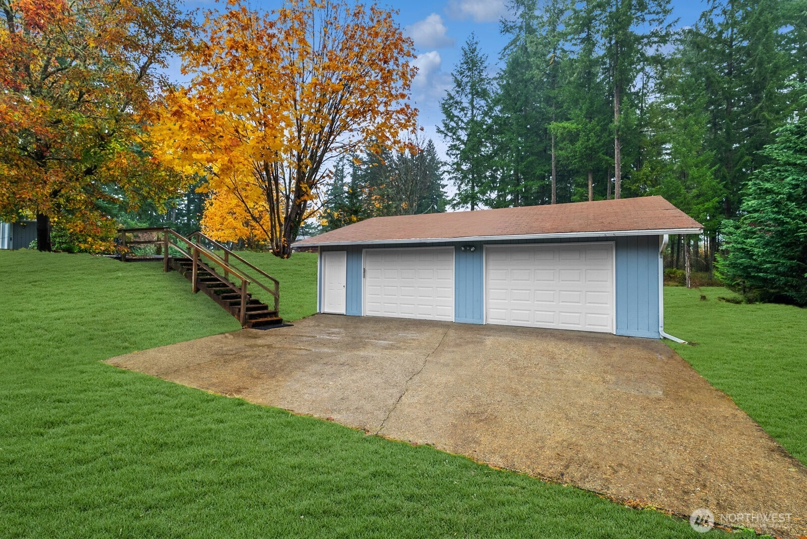 Discover this inviting 3-bedroom, 1.75-bath Mid-Century Modern home tucked away on just over an acre in Tenino! Thoughtful architectural details shine throughout, including vaulted ceilings and expansive living-room windows that fill the space with natural light! Enjoy two pellet fireplaces—one in the additional living room and one connecting the living and dining areas—perfect for warmth and ambiance. A fully wired generator system is already in place, ensuring power is always available! Home also features an updated kitchen, new LVP flooring throughout, updated bathrooms and a spacious garage/workshop ideal for projects or extra storage. Peaceful setting with room to breathe, yet close to town conveniences. A must-see sanctuary!