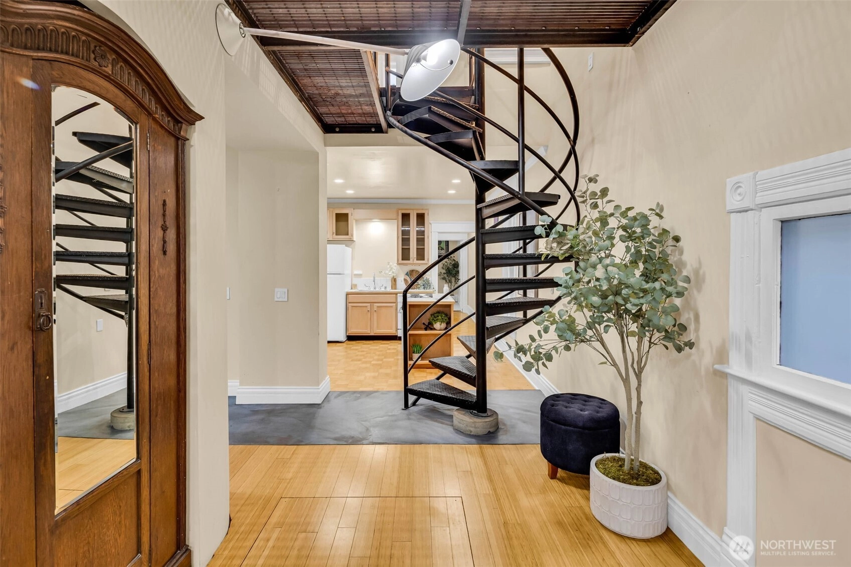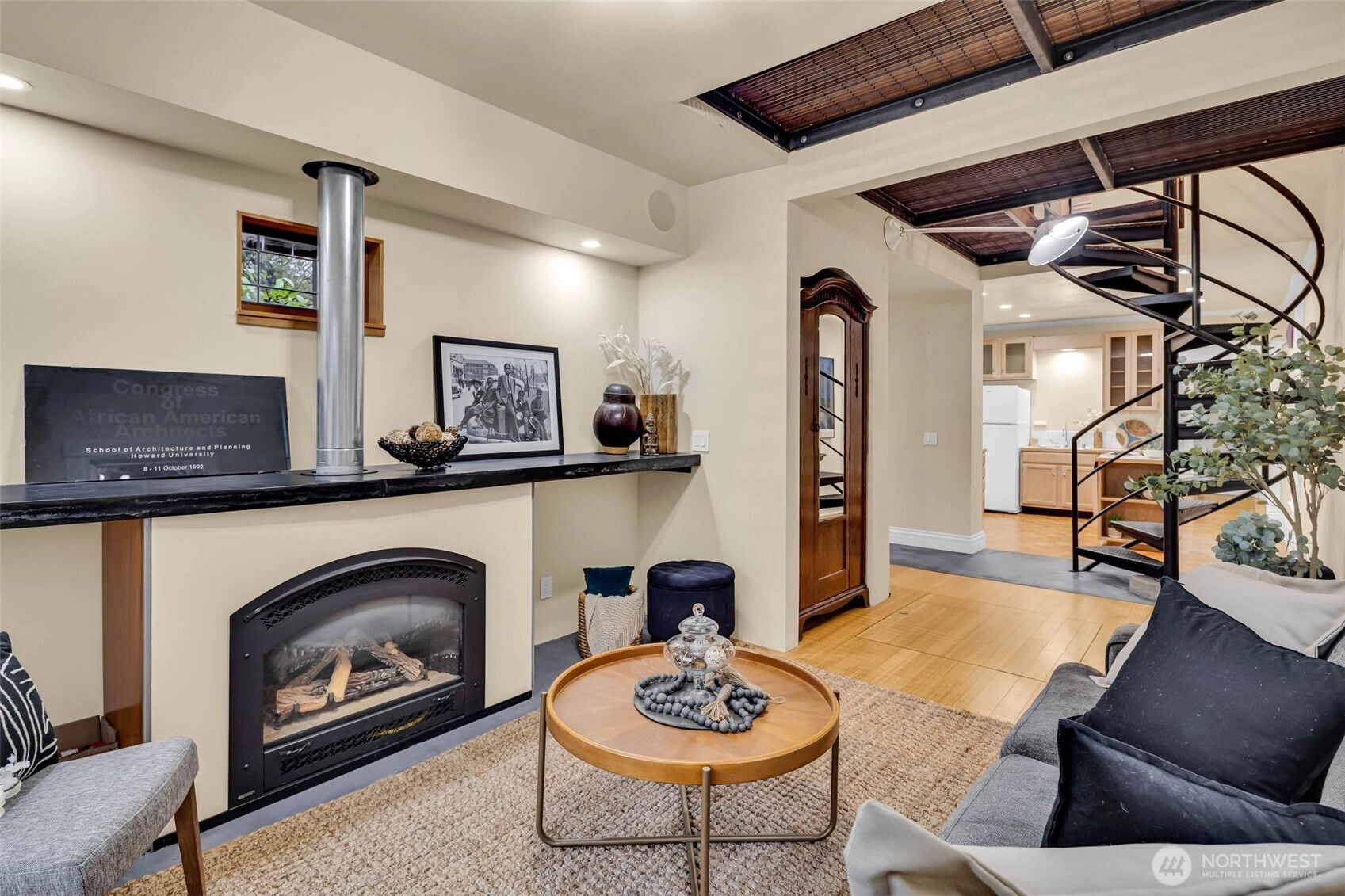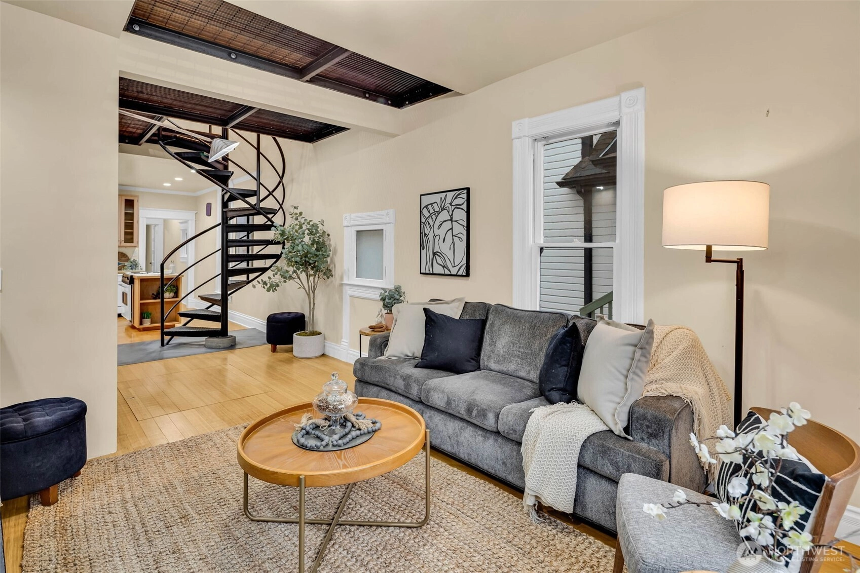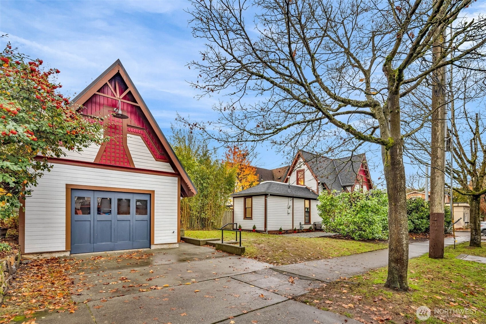 Welcome home to fun, fresh, and unexpectedly chic architecture in the heart of the Central District (CD)! This 2-bedroom, 2-bathroom charmer is perfectly situated on a corner lot, recorded on the historical preservation registry, blending timeless allure with modern comforts. Enjoy a new roof and new carpet, a dramatic spiral staircase, and a practical pulley system for easy lift to the second floor. Bright, open-concept spaces flow seamlessly from the living room to the kitchen and dining area. A freestanding garage offers ample storage and potential for a DADU. Enjoy the local eateries and shops in the vibrant and historic CD Neighborhood!