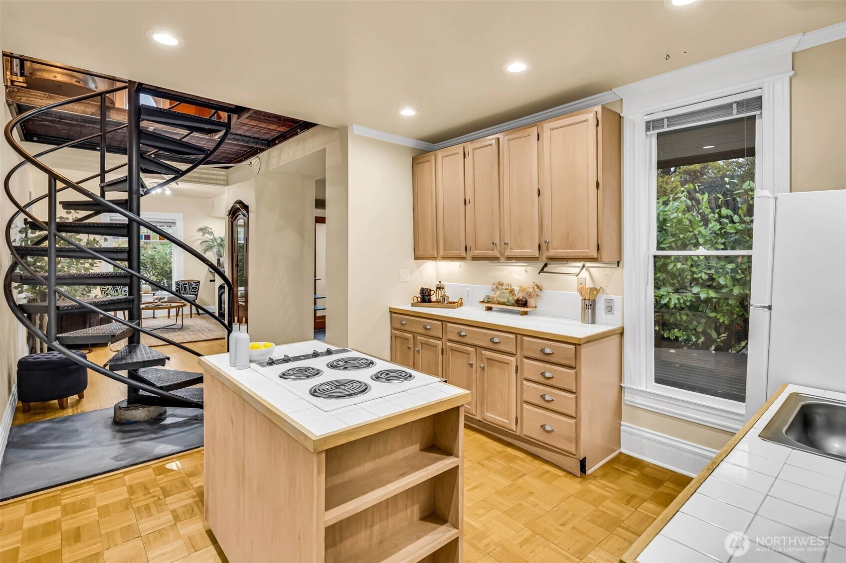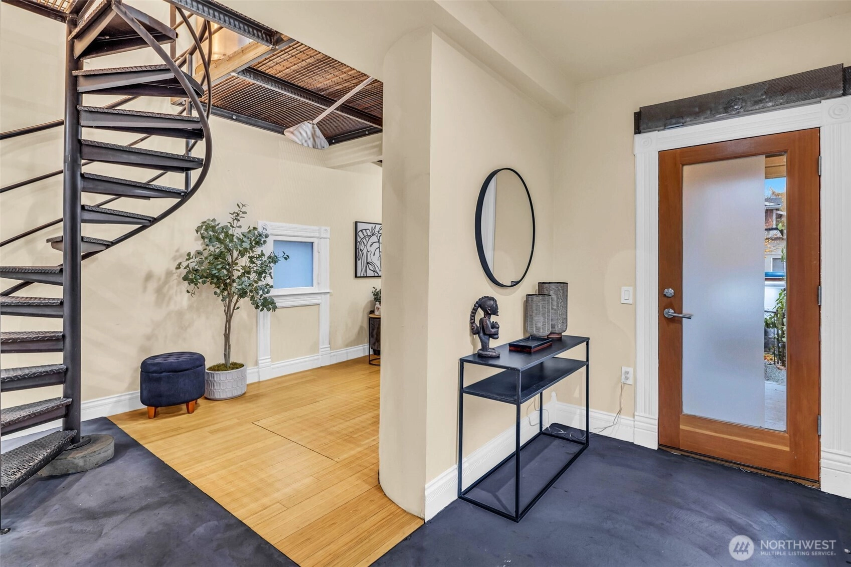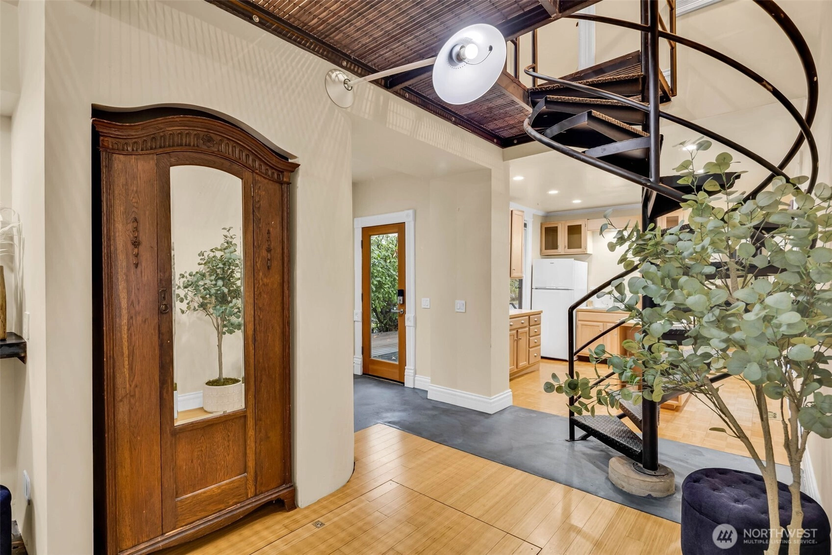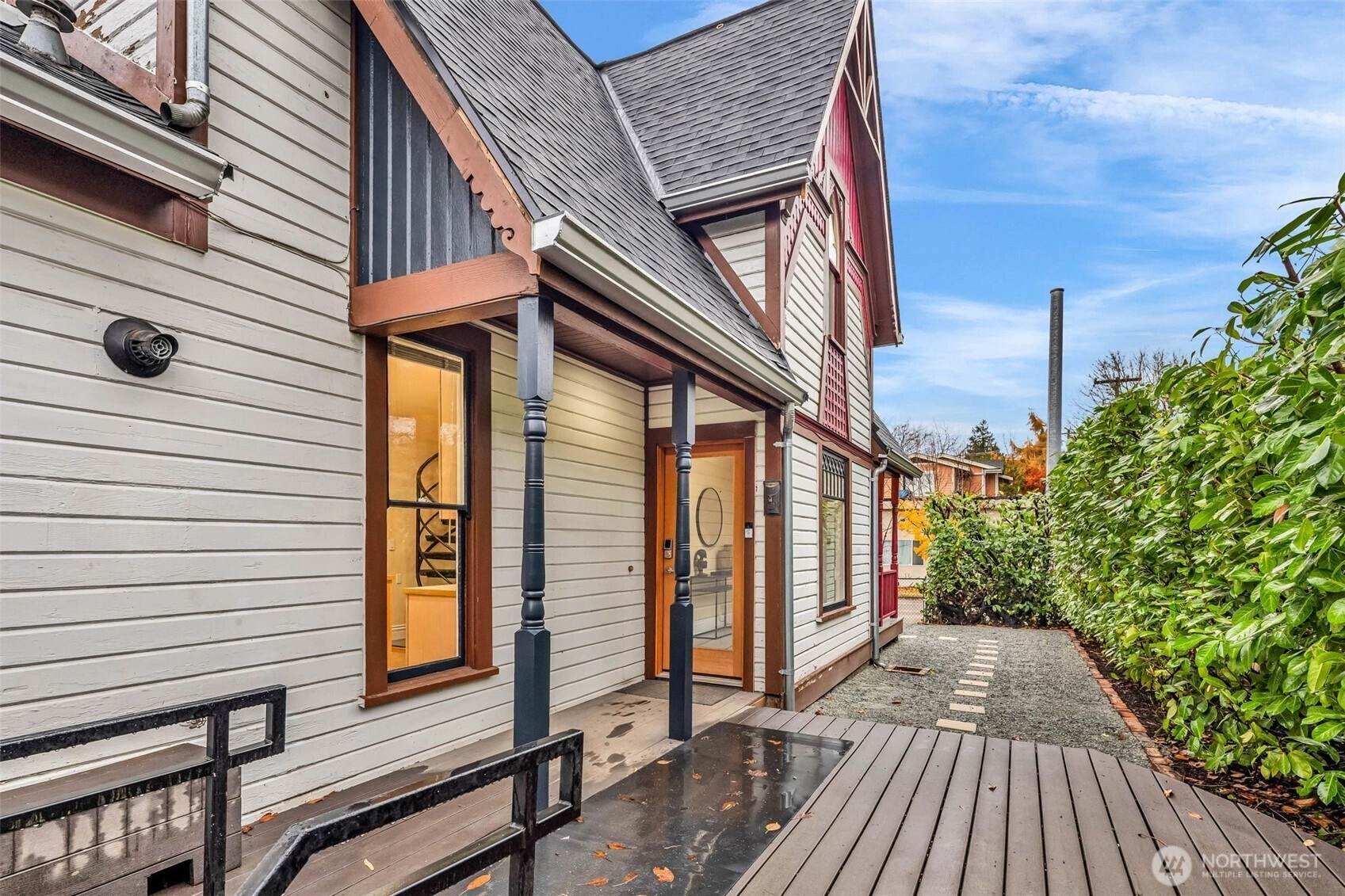 Welcome home to fun, fresh, and unexpectedly chic architecture in the heart of the Central District (CD)! This 2-bedroom, 2-bathroom charmer is perfectly situated on a corner lot, recorded on the historical preservation registry, blending timeless allure with modern comforts. Enjoy a new roof and new carpet, a dramatic spiral staircase, and a practical pulley system for easy lift to the second floor. Bright, open-concept spaces flow seamlessly from the living room to the kitchen and dining area. A freestanding garage offers ample storage and potential for a DADU. Enjoy the local eateries and shops in the vibrant and historic CD Neighborhood!