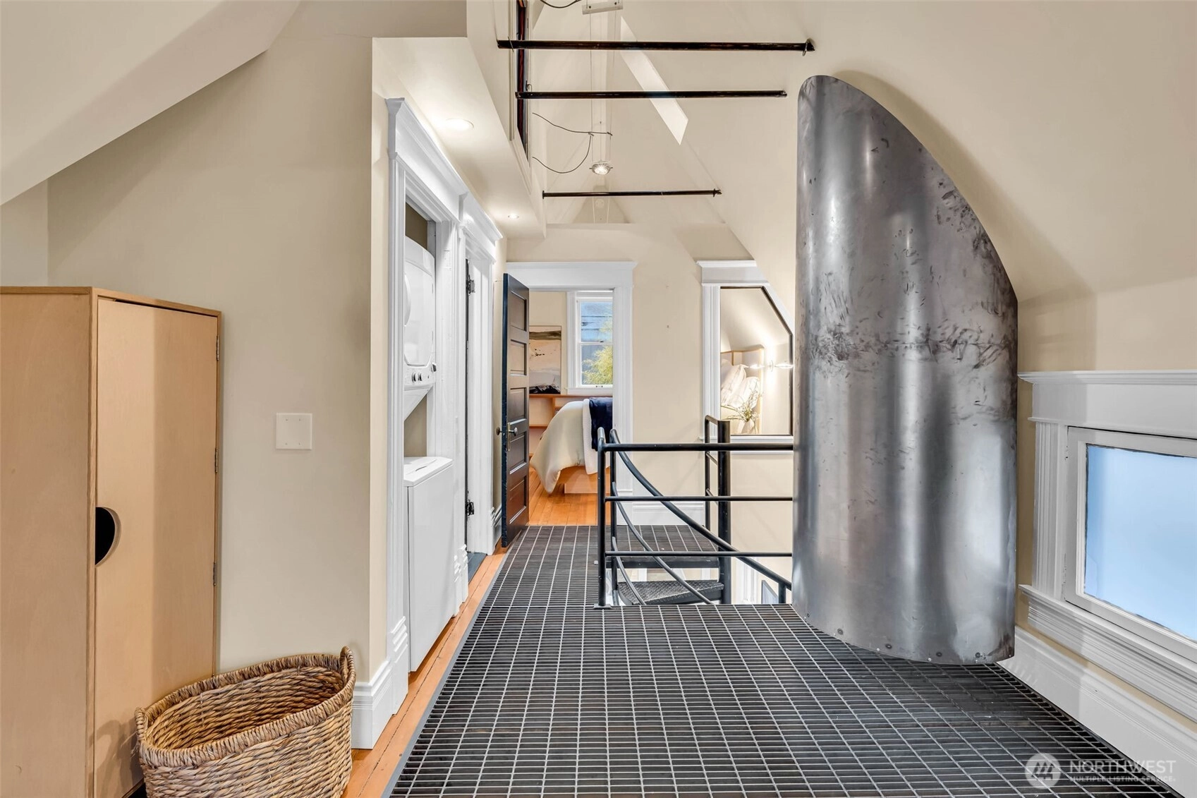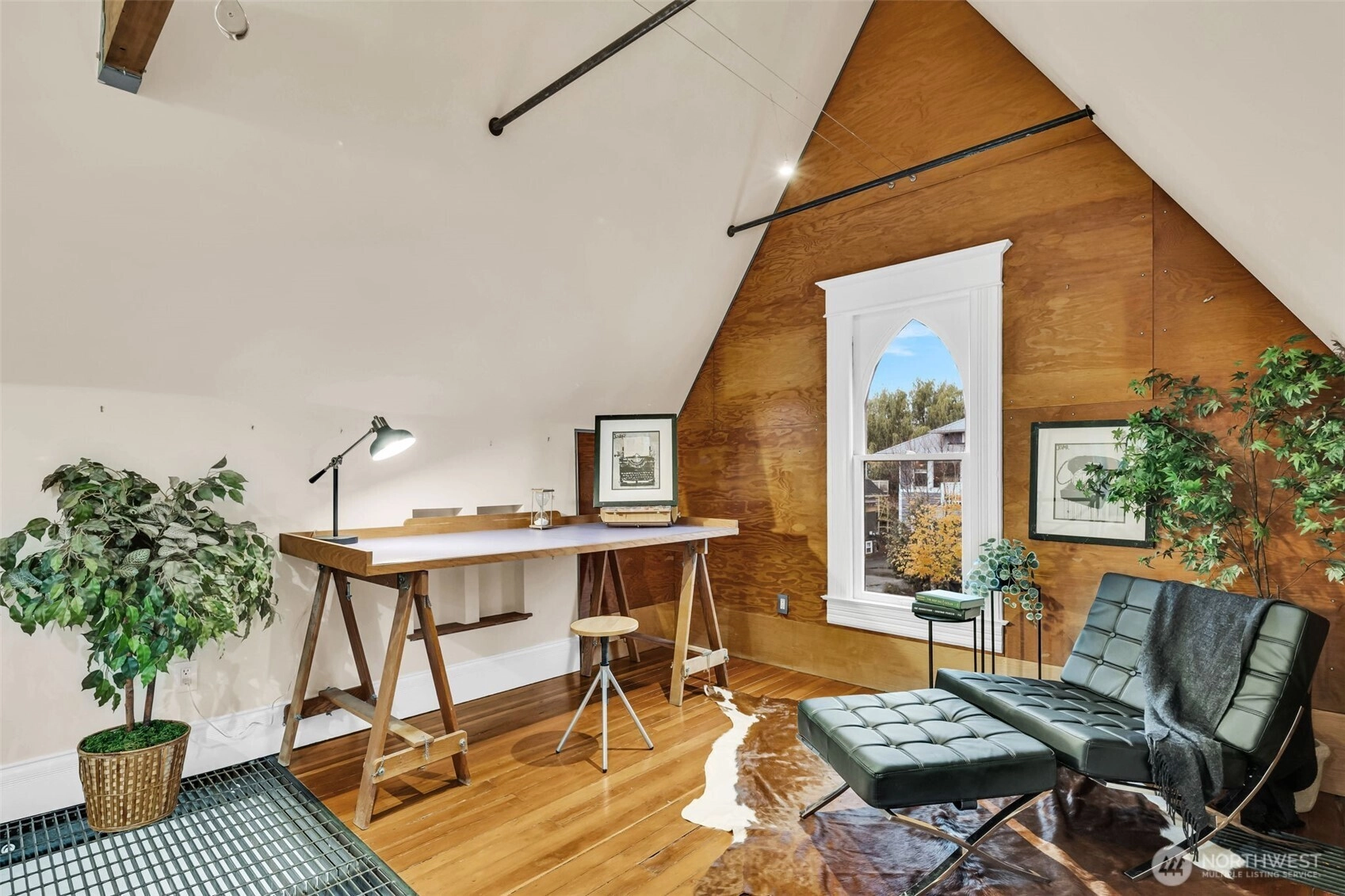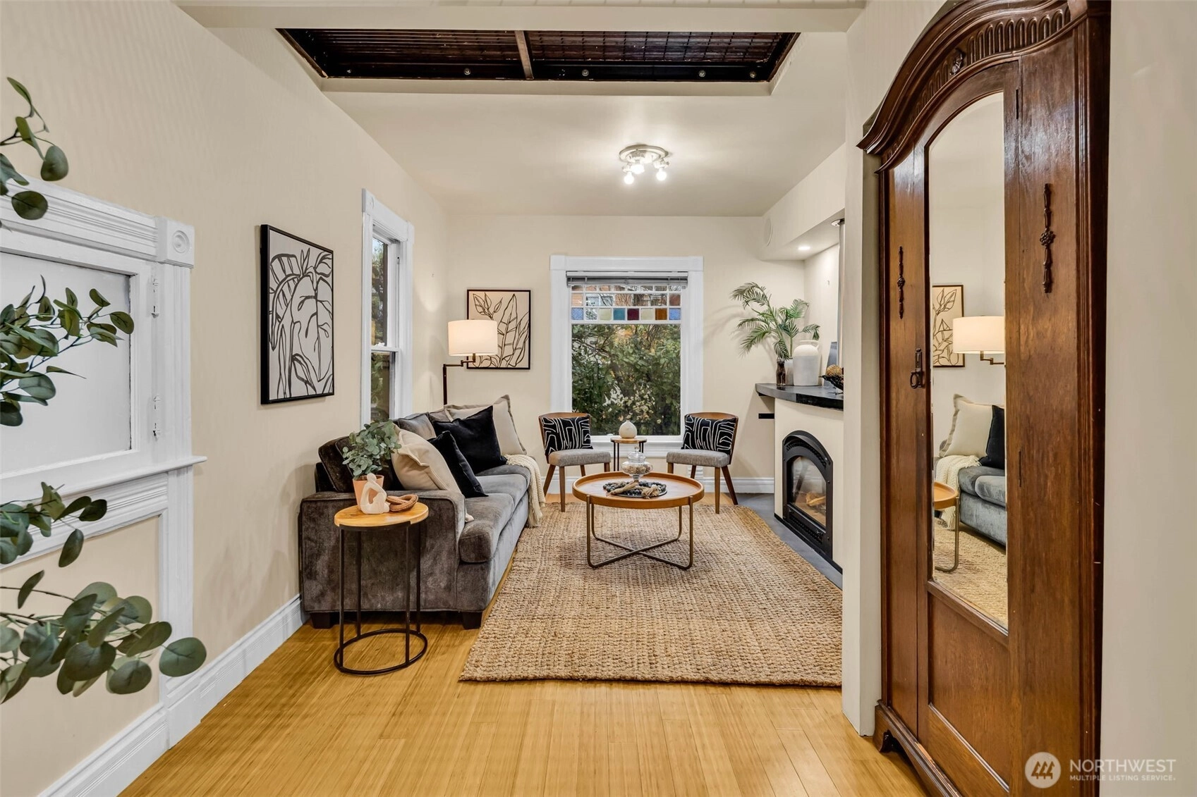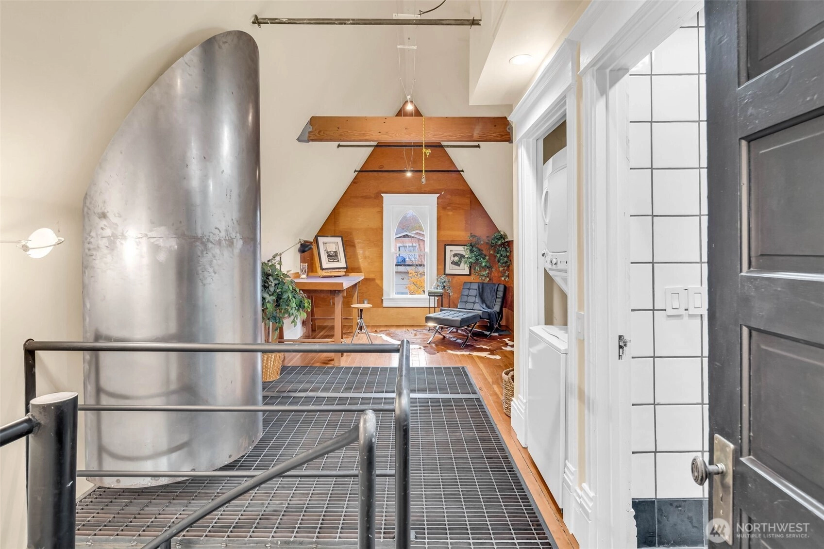 Welcome home to fun, fresh, and unexpectedly chic architecture in the heart of the Central District (CD)! This 2-bedroom, 2-bathroom charmer is perfectly situated on a corner lot, recorded on the historical preservation registry, blending timeless allure with modern comforts. Enjoy a new roof and new carpet, a dramatic spiral staircase, and a practical pulley system for easy lift to the second floor. Bright, open-concept spaces flow seamlessly from the living room to the kitchen and dining area. A freestanding garage offers ample storage and potential for a DADU. Enjoy the local eateries and shops in the vibrant and historic CD Neighborhood!