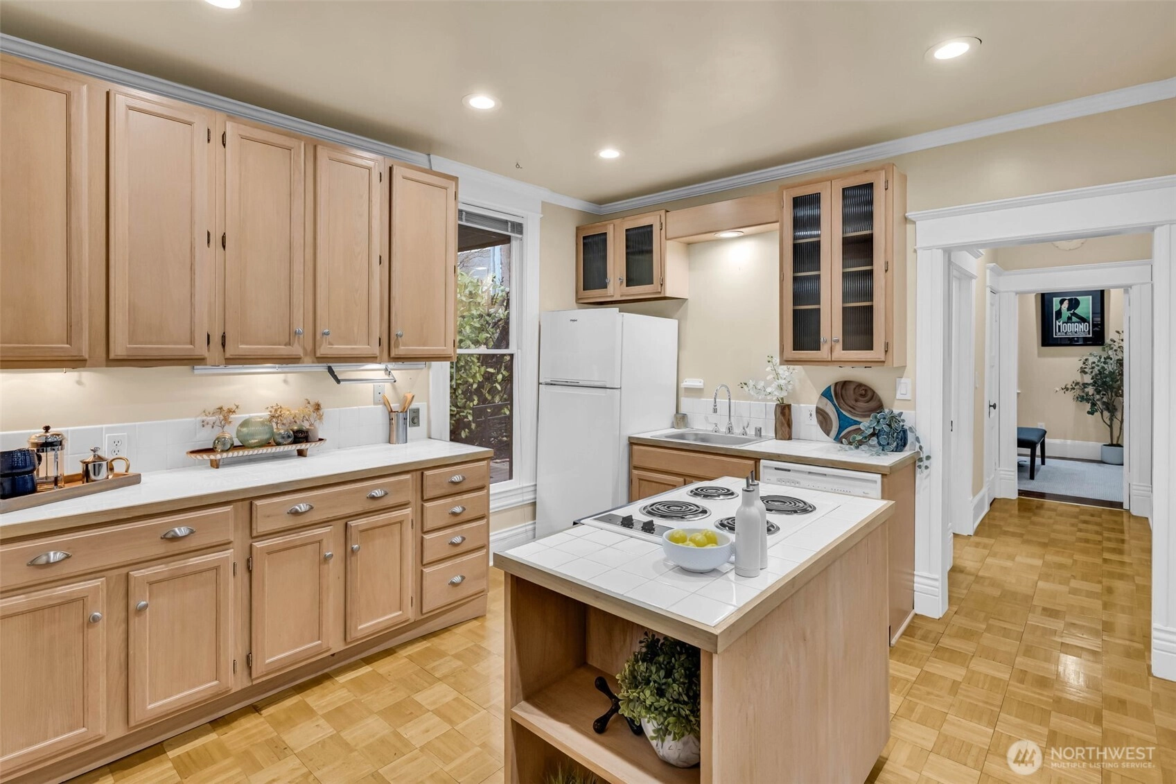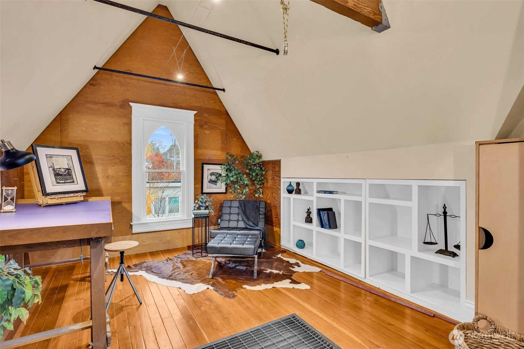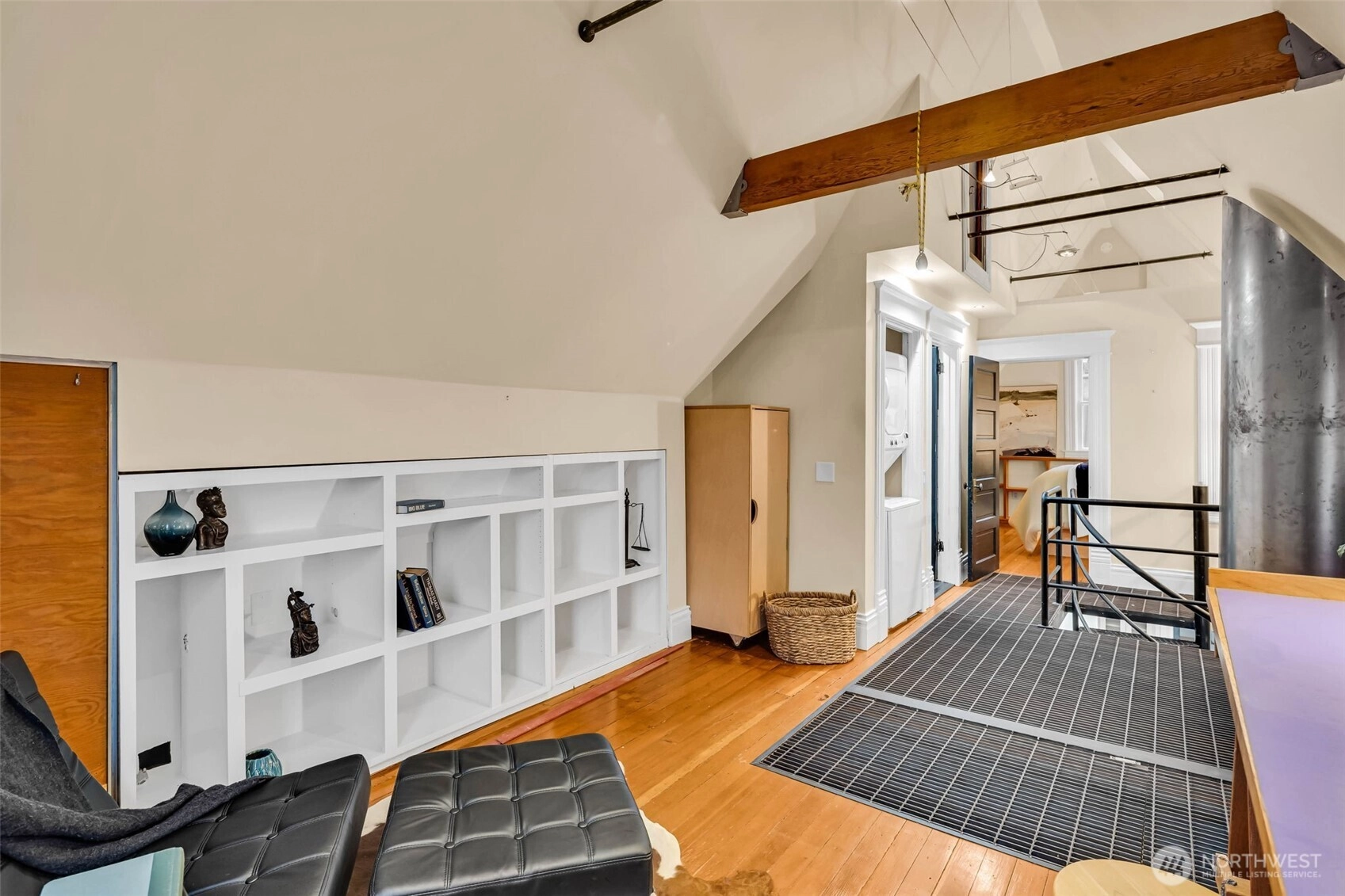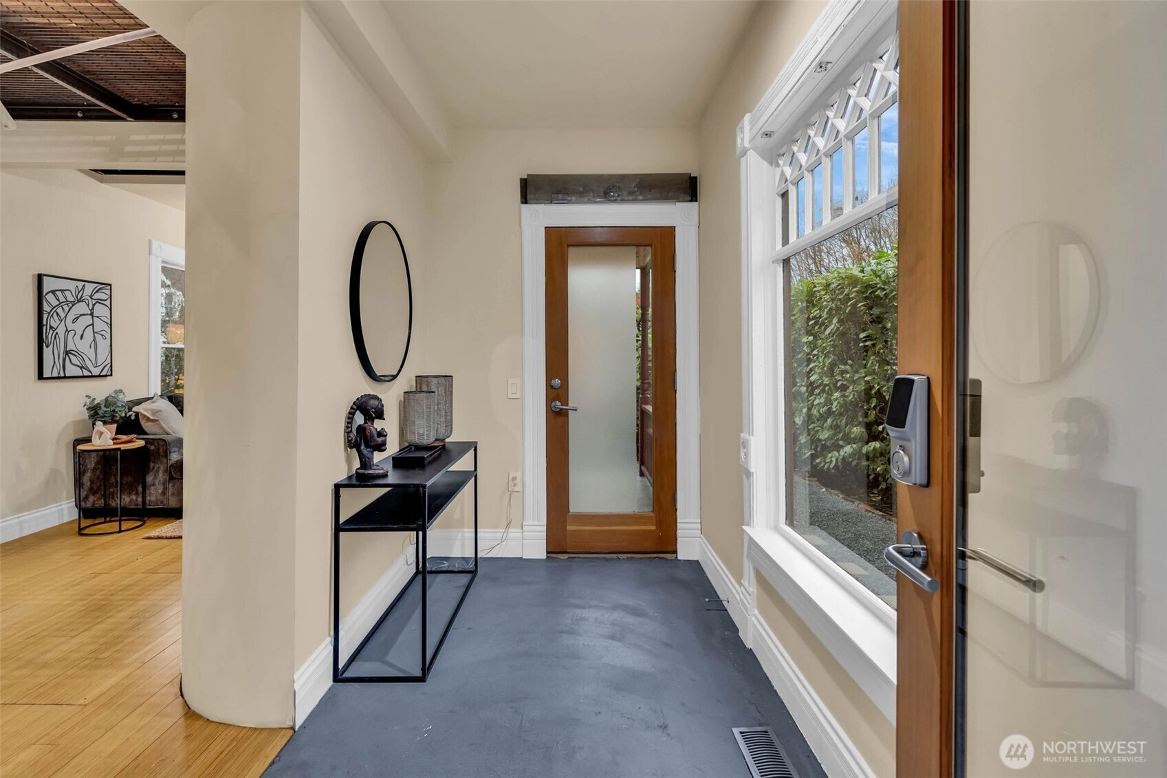 Welcome home to fun, fresh, and unexpectedly chic architecture in the heart of the Central District (CD)! This 2-bedroom, 2-bathroom charmer is perfectly situated on a corner lot, recorded on the historical preservation registry, blending timeless allure with modern comforts. Enjoy a new roof and new carpet, a dramatic spiral staircase, and a practical pulley system for easy lift to the second floor. Bright, open-concept spaces flow seamlessly from the living room to the kitchen and dining area. A freestanding garage offers ample storage and potential for a DADU. Enjoy the local eateries and shops in the vibrant and historic CD Neighborhood!