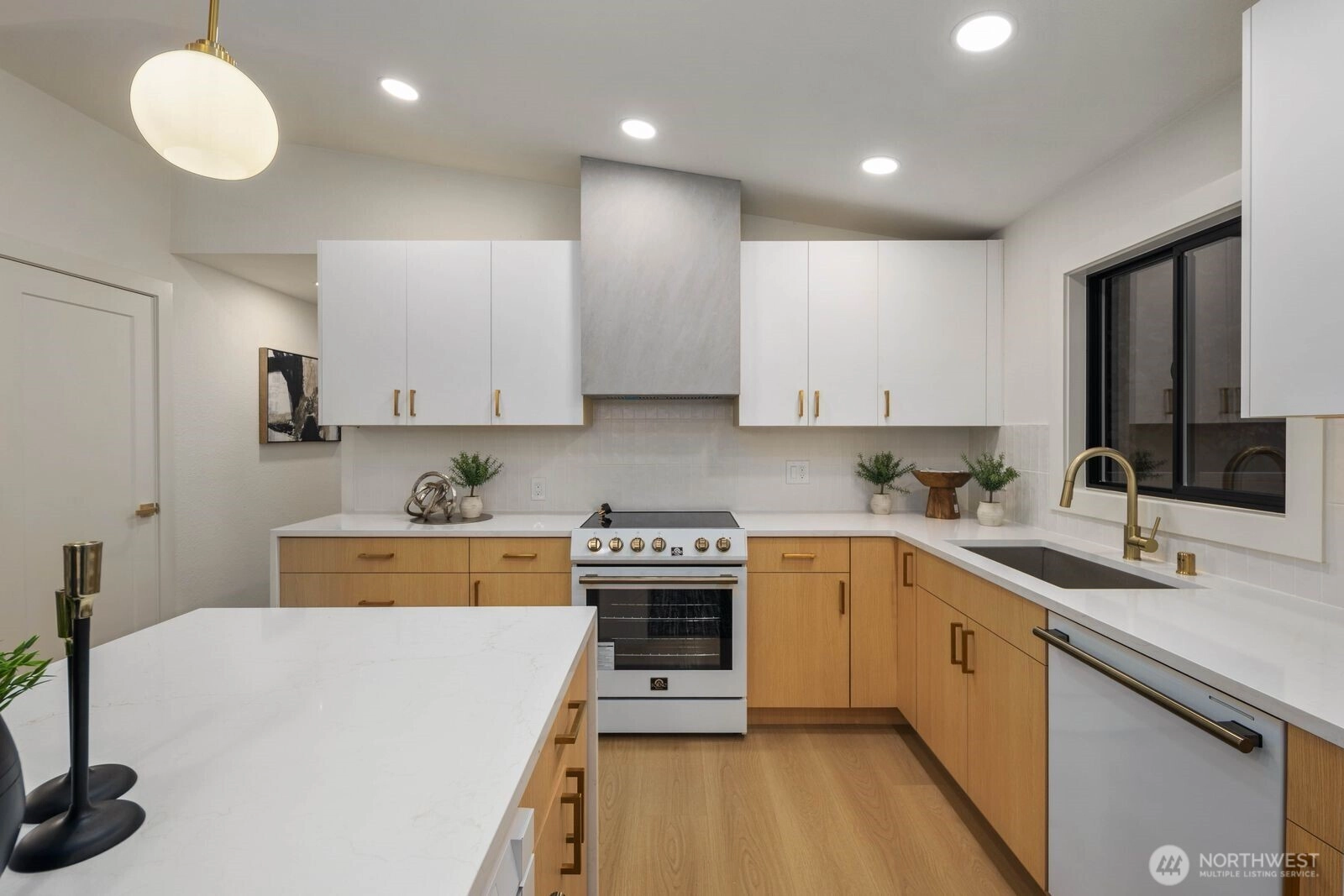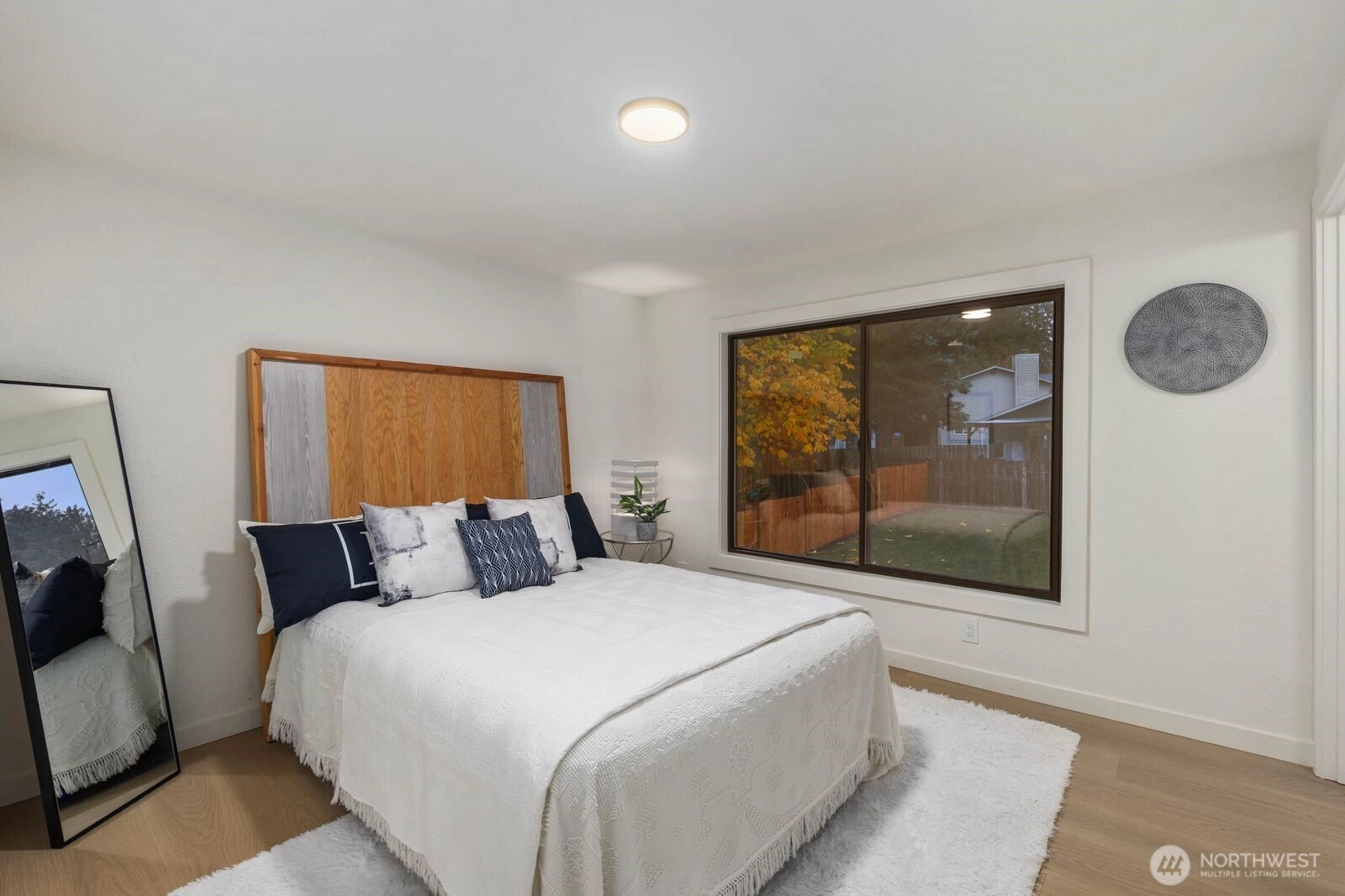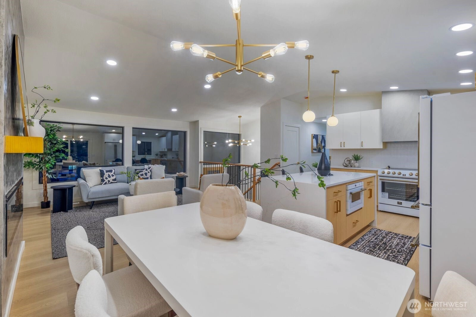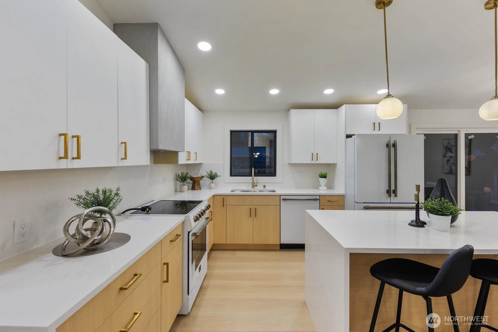 This is a must see, move-in ready, split level home in the Meadowdale community. This beautifully updated 3-bed, 1.75-bath home offers both comfort and convenience. The main level features an inviting open-concept kitchen and dining area with a large deck off the kitchen, quartz counter tops with new cabinets & white SS appliances. All new laminate flooring throughout the home, gorgeous tile in all the bathrooms. Lower level offers Loft/bonus room with a wet-bar. Large fully fenced private backyard with all new landscaping, Edmonds School District. Minutes from I-5, Alderwood shopping & dining.