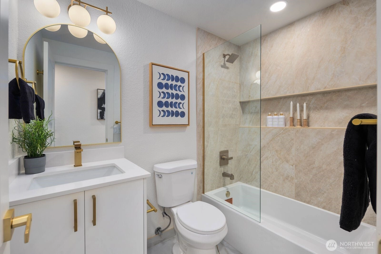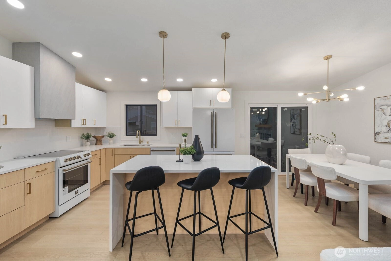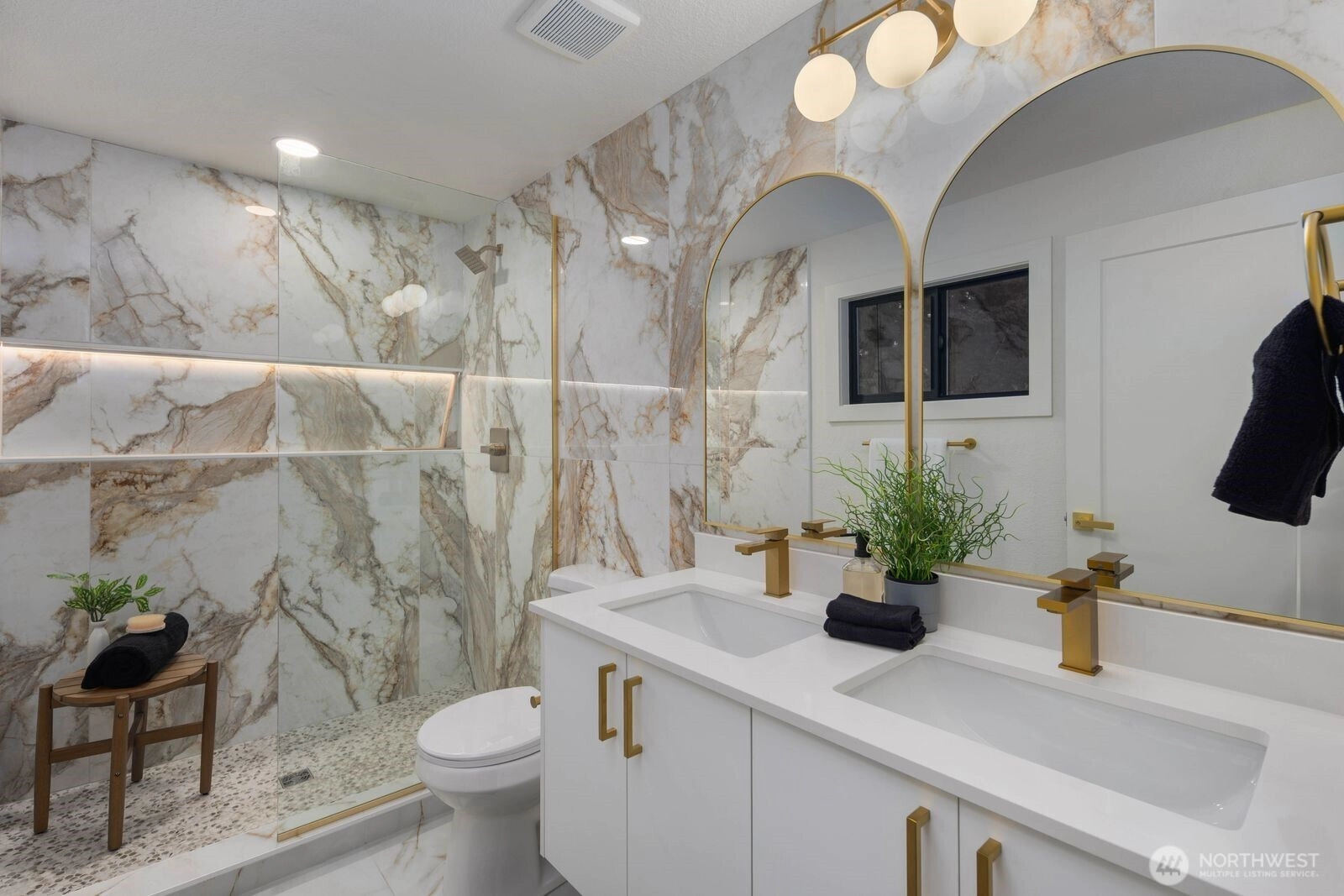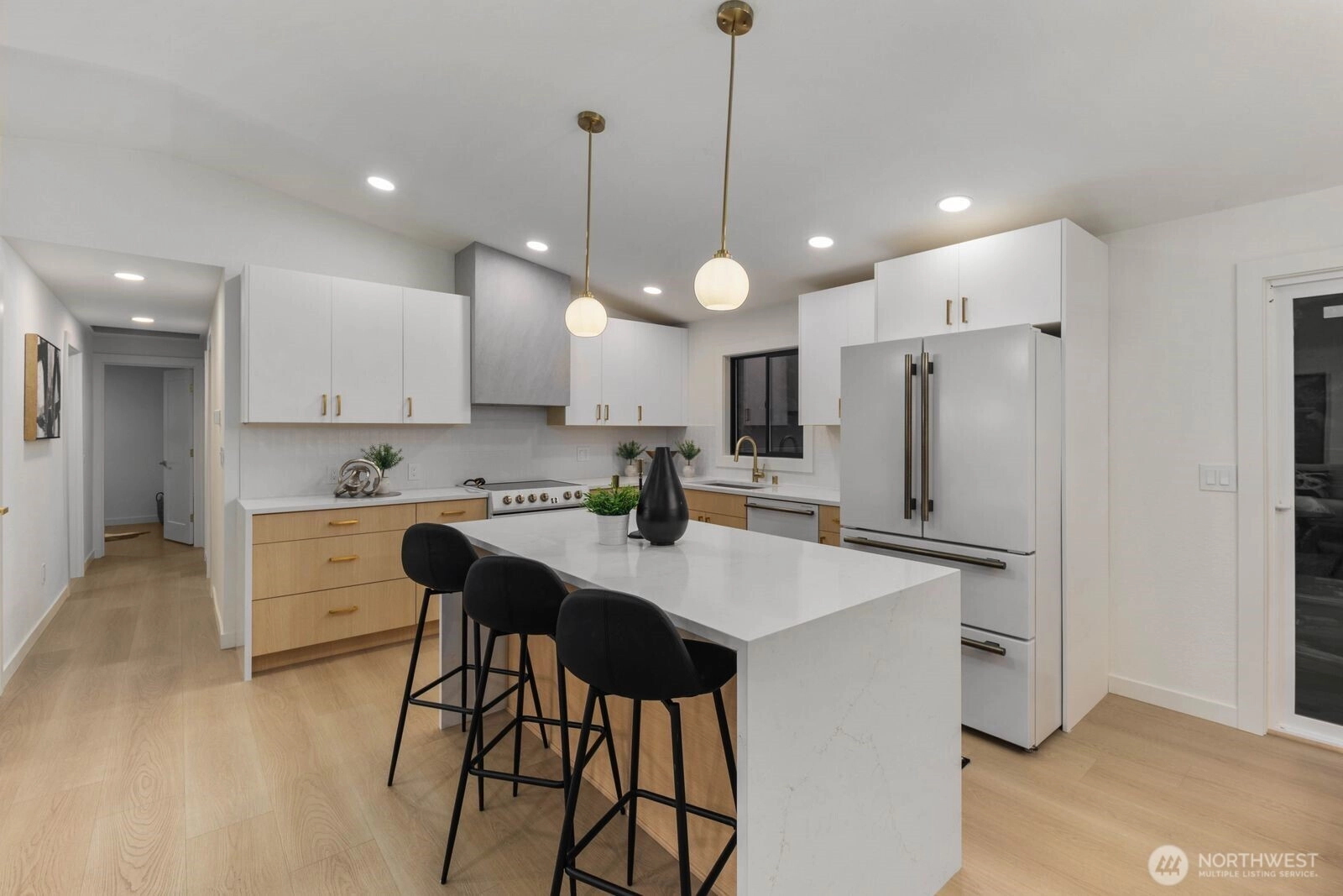 This is a must see, move-in ready, split level home in the Meadowdale community. This beautifully updated 3-bed, 1.75-bath home offers both comfort and convenience. The main level features an inviting open-concept kitchen and dining area with a large deck off the kitchen, quartz counter tops with new cabinets & white SS appliances. All new laminate flooring throughout the home, gorgeous tile in all the bathrooms. Lower level offers Loft/bonus room with a wet-bar. Large fully fenced private backyard with all new landscaping, Edmonds School District. Minutes from I-5, Alderwood shopping & dining.