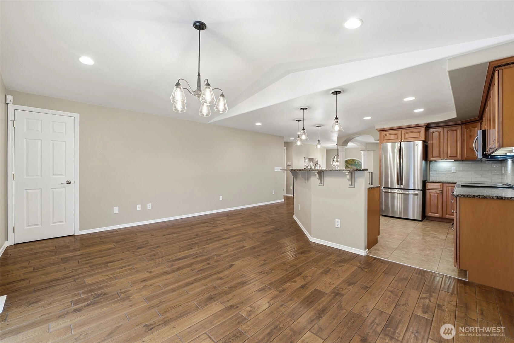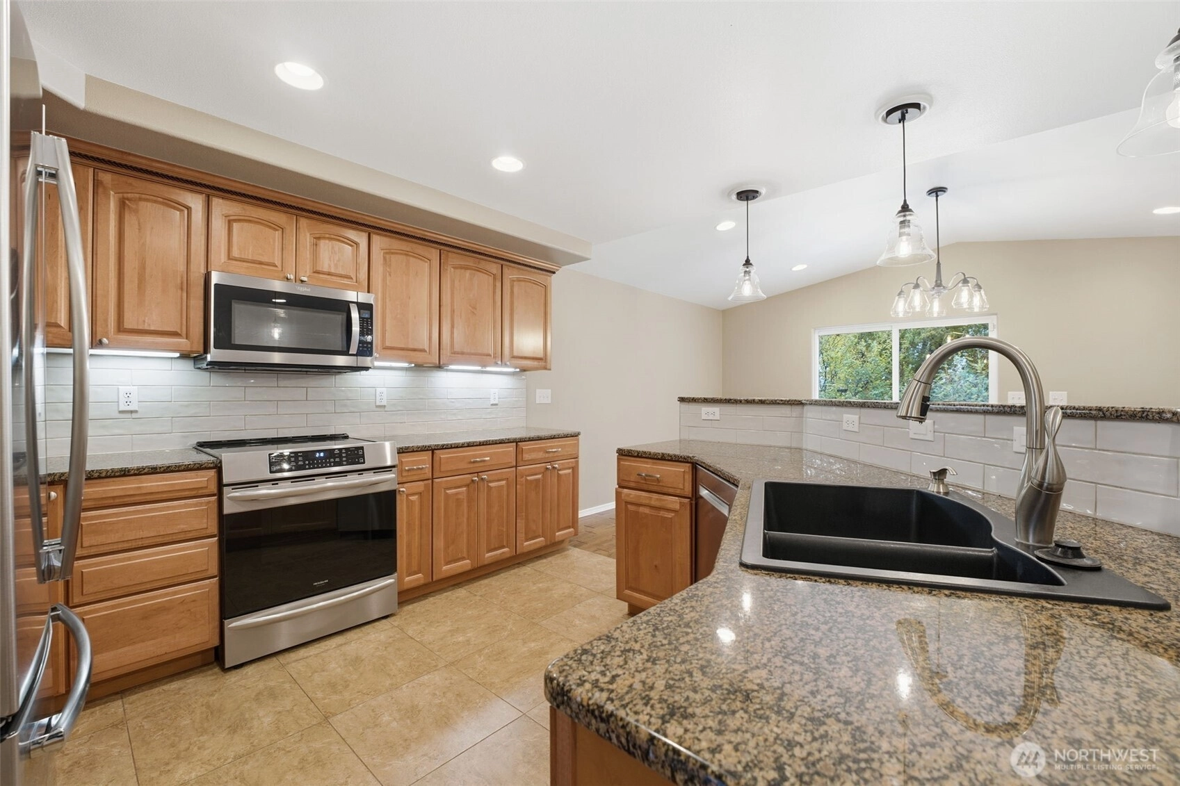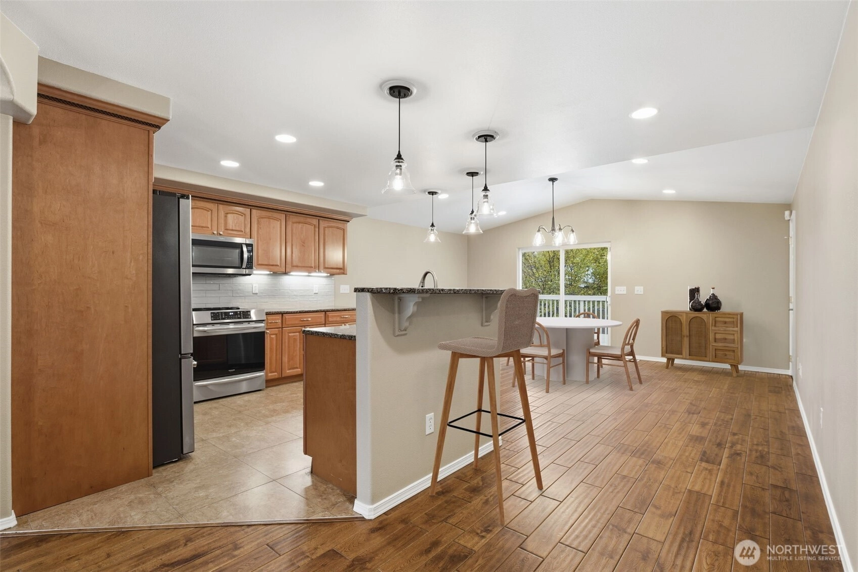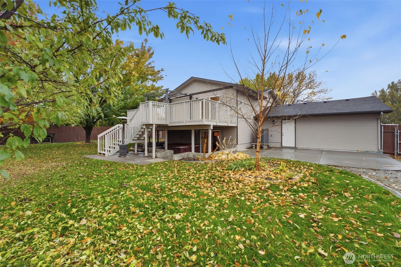 Move-in ready with modern upgrades throughout, this home delivers space, comfort, and flexibility on a .36-acre lot in the Kennewick School District. A bold tile entry w/granite and tiled steps leads to 3/4" wood flooring. The kitchen features granite counters, a breakfast bar, and newer stainless appliances that open to the living room for easy entertaining. The lower level adds a bright family room, three bedrooms, and a kitchenette, perfect for guests or multigenerational living. Step outside to a true backyard getaway w/a deck, pergola, hot tub, kennel, outbuildings, two sheds, and ample parking. Major updates include two remodeled baths, new roof w/warranty, new HVAC & water heater, epoxy garage flooring, and a Nest thermostat.