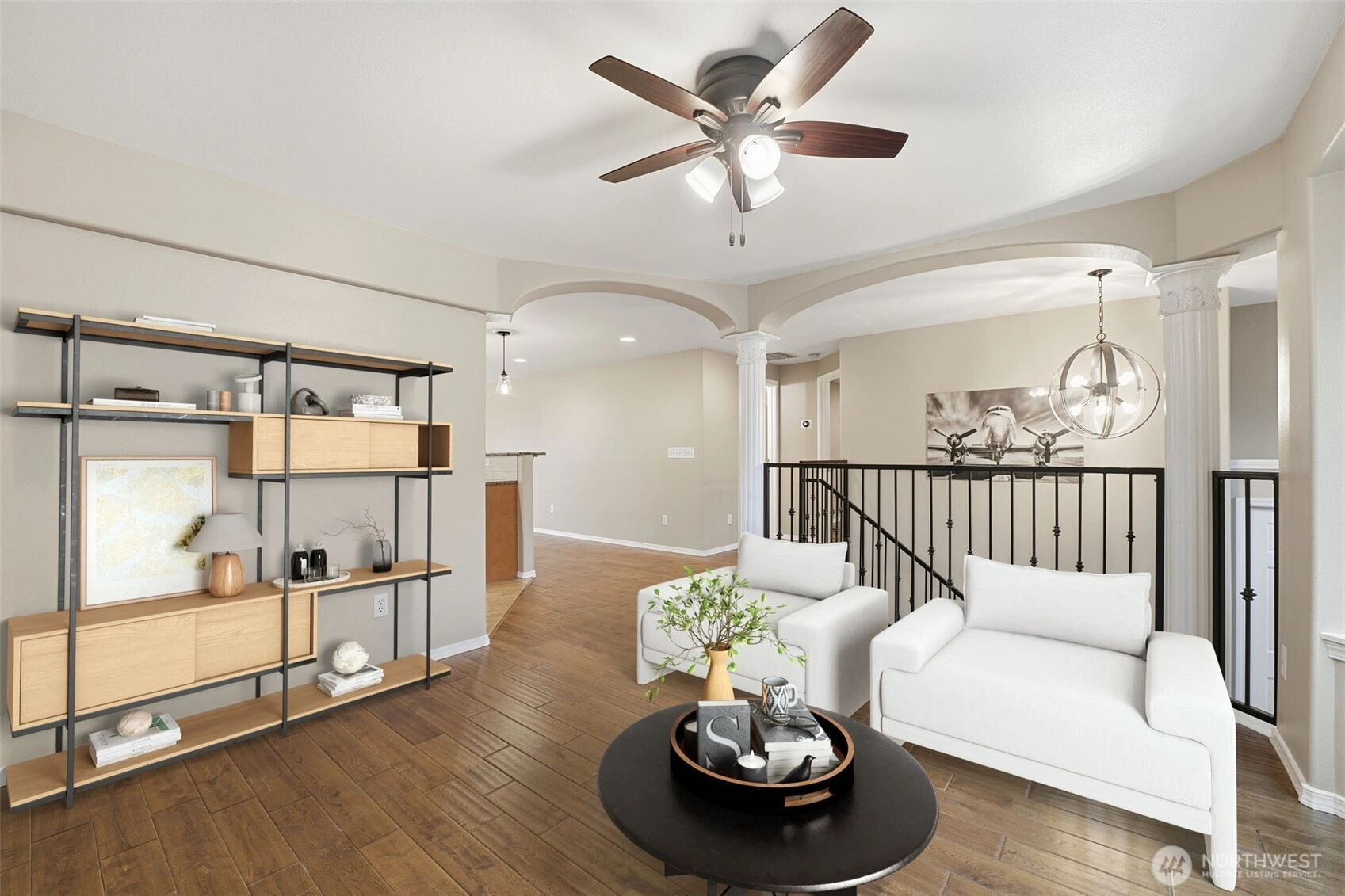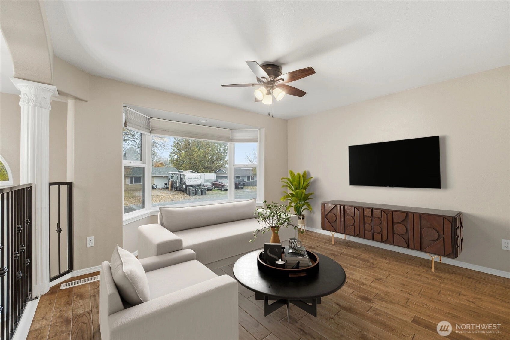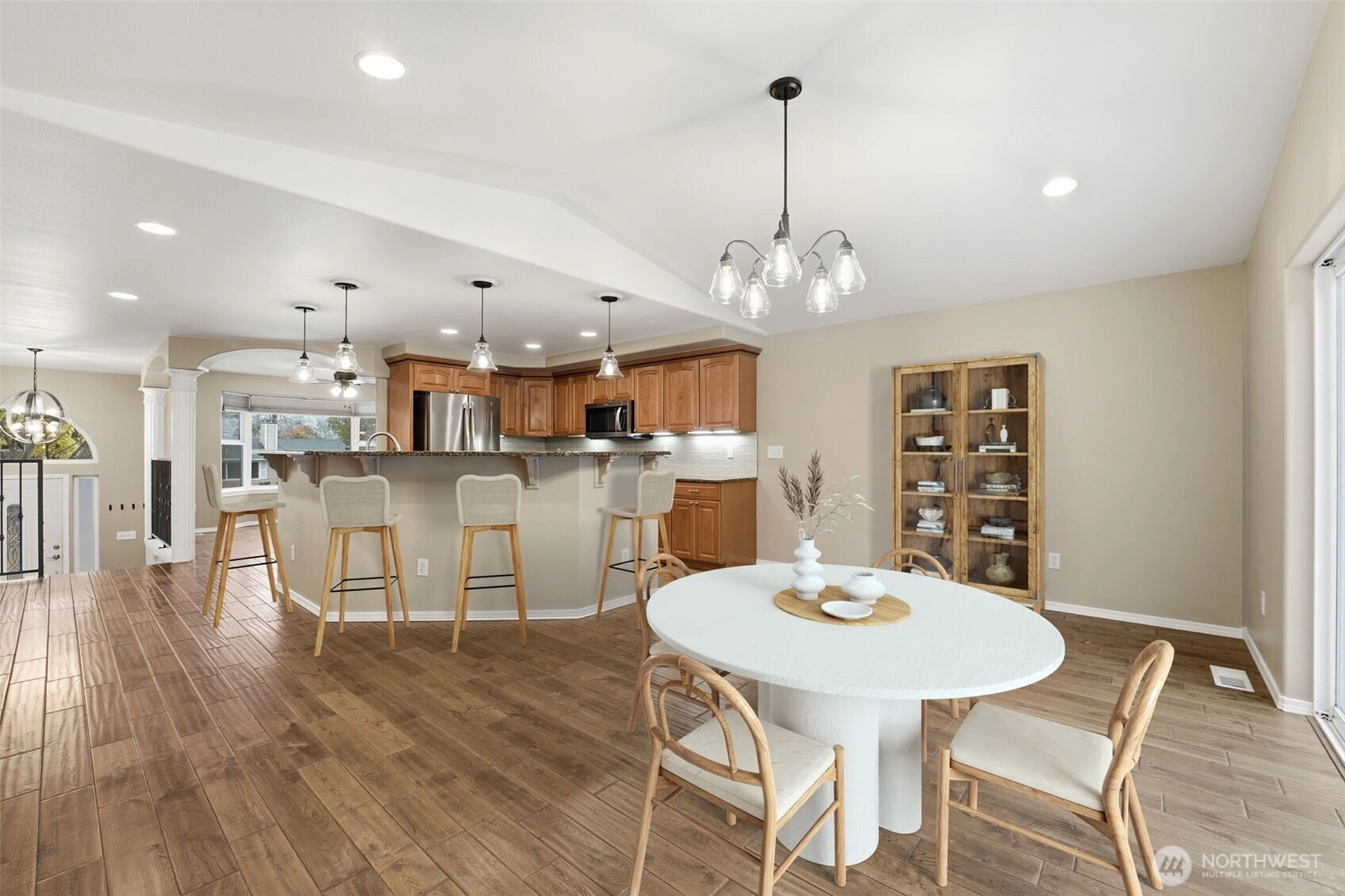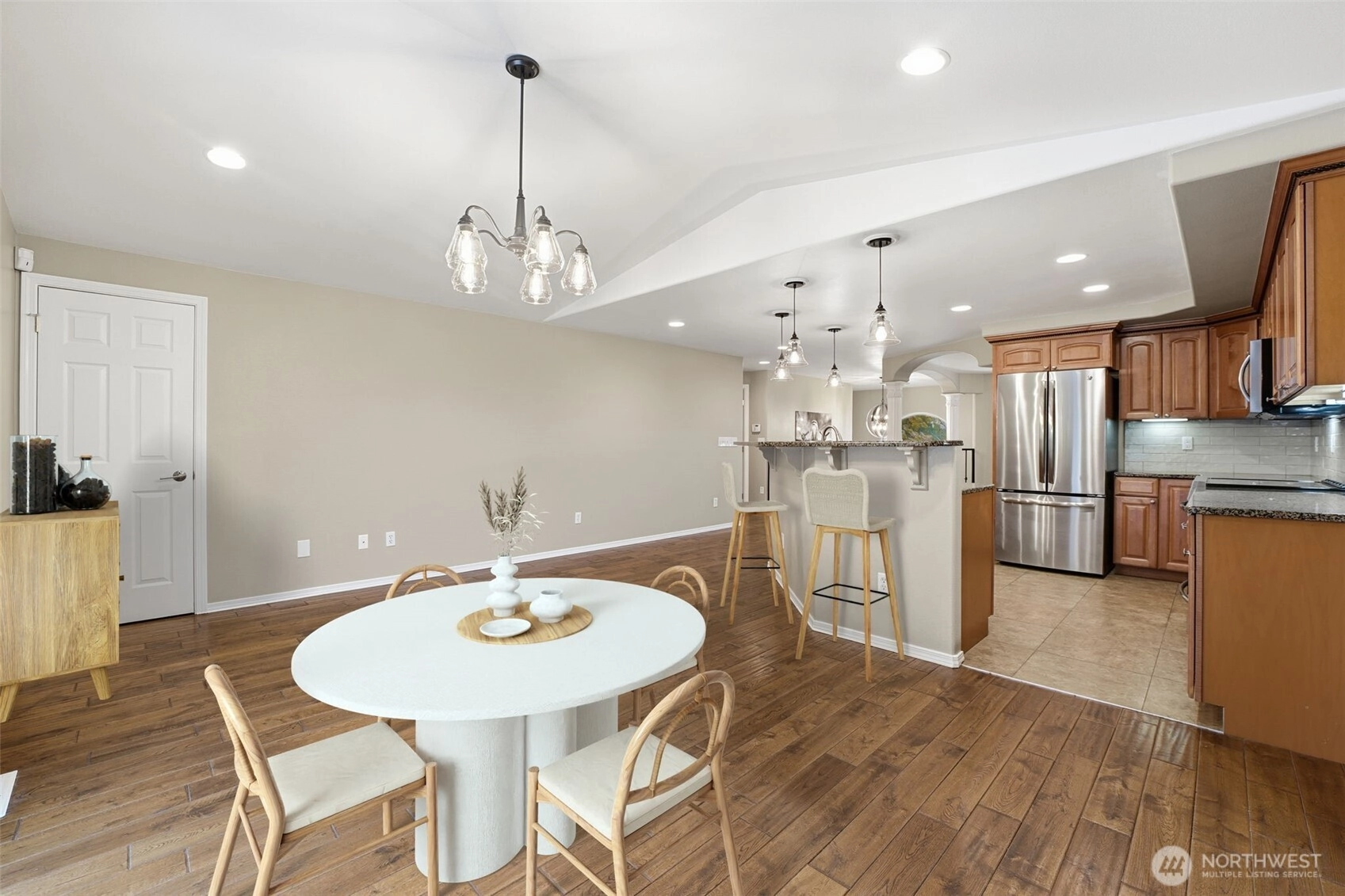 Move-in ready with modern upgrades throughout, this home delivers space, comfort, and flexibility on a .36-acre lot in the Kennewick School District. A bold tile entry w/granite and tiled steps leads to 3/4" wood flooring. The kitchen features granite counters, a breakfast bar, and newer stainless appliances that open to the living room for easy entertaining. The lower level adds a bright family room, three bedrooms, and a kitchenette, perfect for guests or multigenerational living. Step outside to a true backyard getaway w/a deck, pergola, hot tub, kennel, outbuildings, two sheds, and ample parking. Major updates include two remodeled baths, new roof w/warranty, new HVAC & water heater, epoxy garage flooring, and a Nest thermostat.