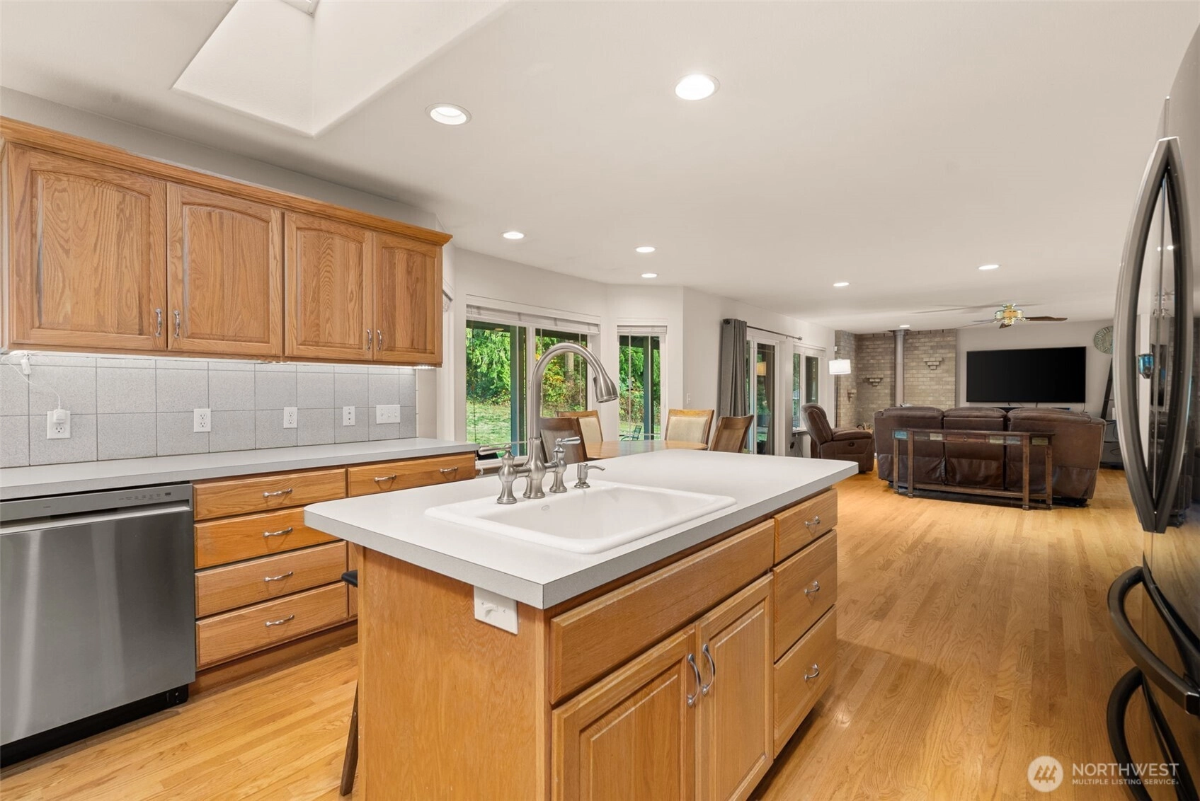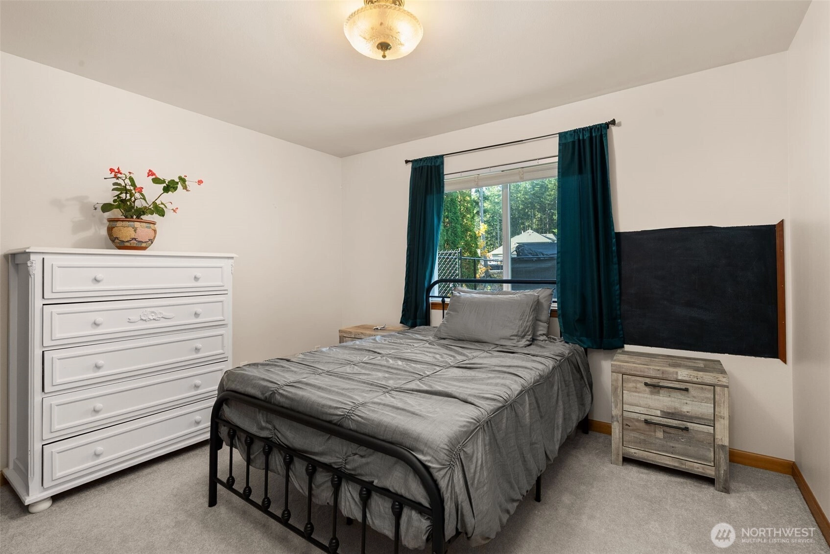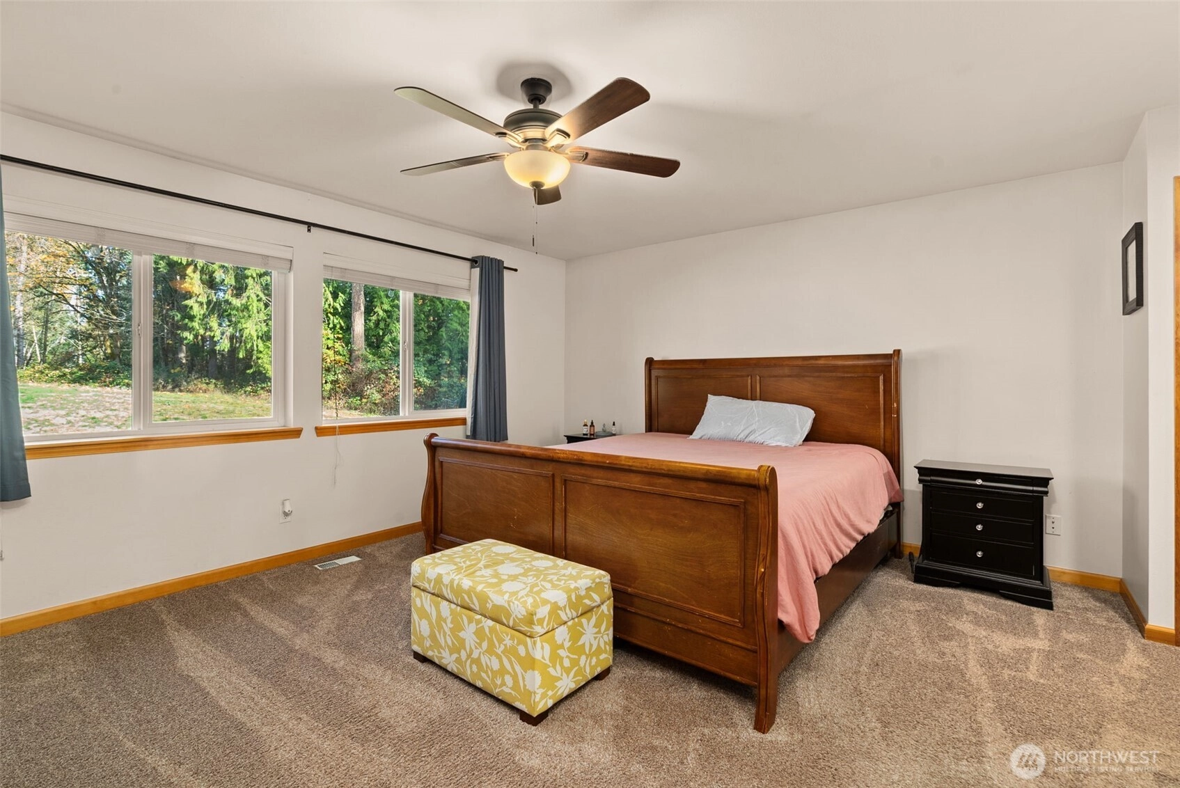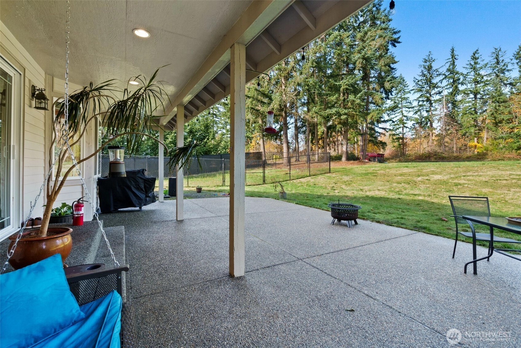 Escape to this private retreat on over 4 acres w/ this well-maintained rambler offering 3 bedrooms, 2 baths, and TWO versatile offices/flex rooms—ideal for remote work or hobbies. Enjoy spacious single-level living w/ a wide-open great room, hardwood floors, & a cozy wood-burning stove framed by large windows overlooking serene wooded surroundings. The kitchen features a large island, solid cabinetry, & newer appliances. The primary suite includes a spa-style bath w/ tiled walk-in shower, jetted tub, dual vanities, & a generous walk-in closet. Outdoors, enjoy the covered patio, large dog run, usable acreage, detached outbuilding, & room for gardens, animals, or a future shop. Bonus: direct back-road access to Bonney Lake with total privacy.