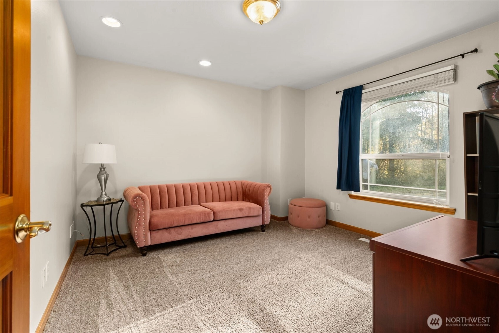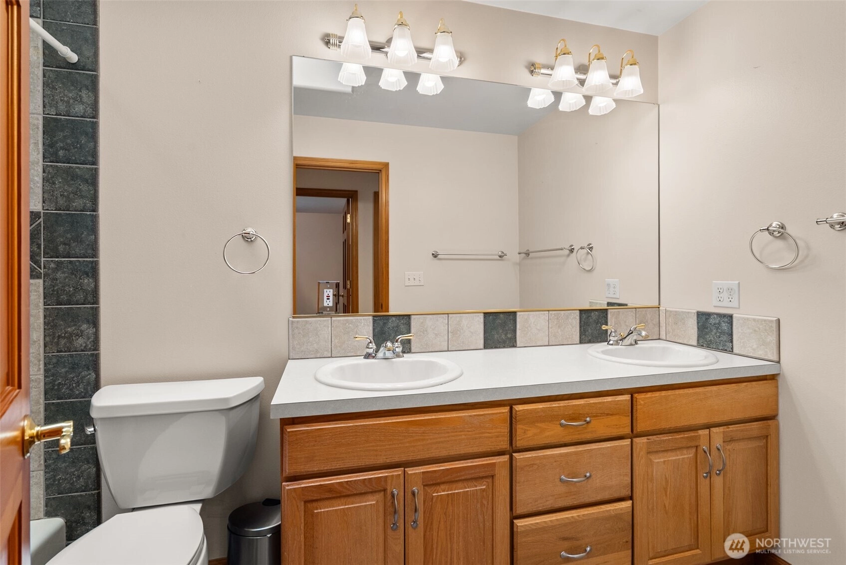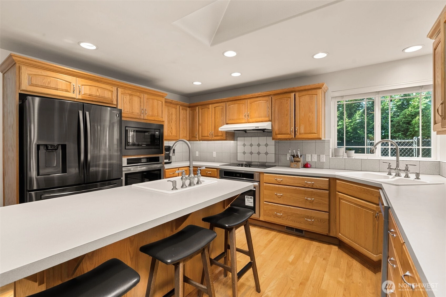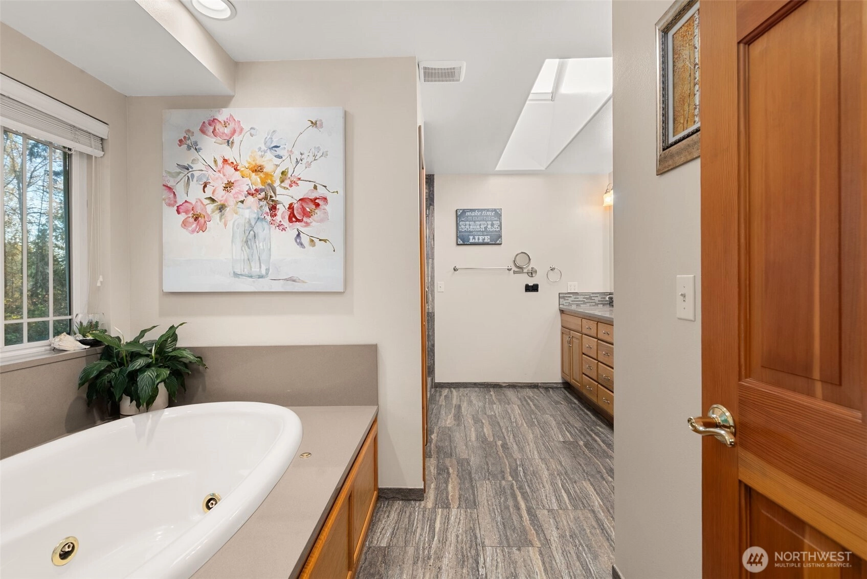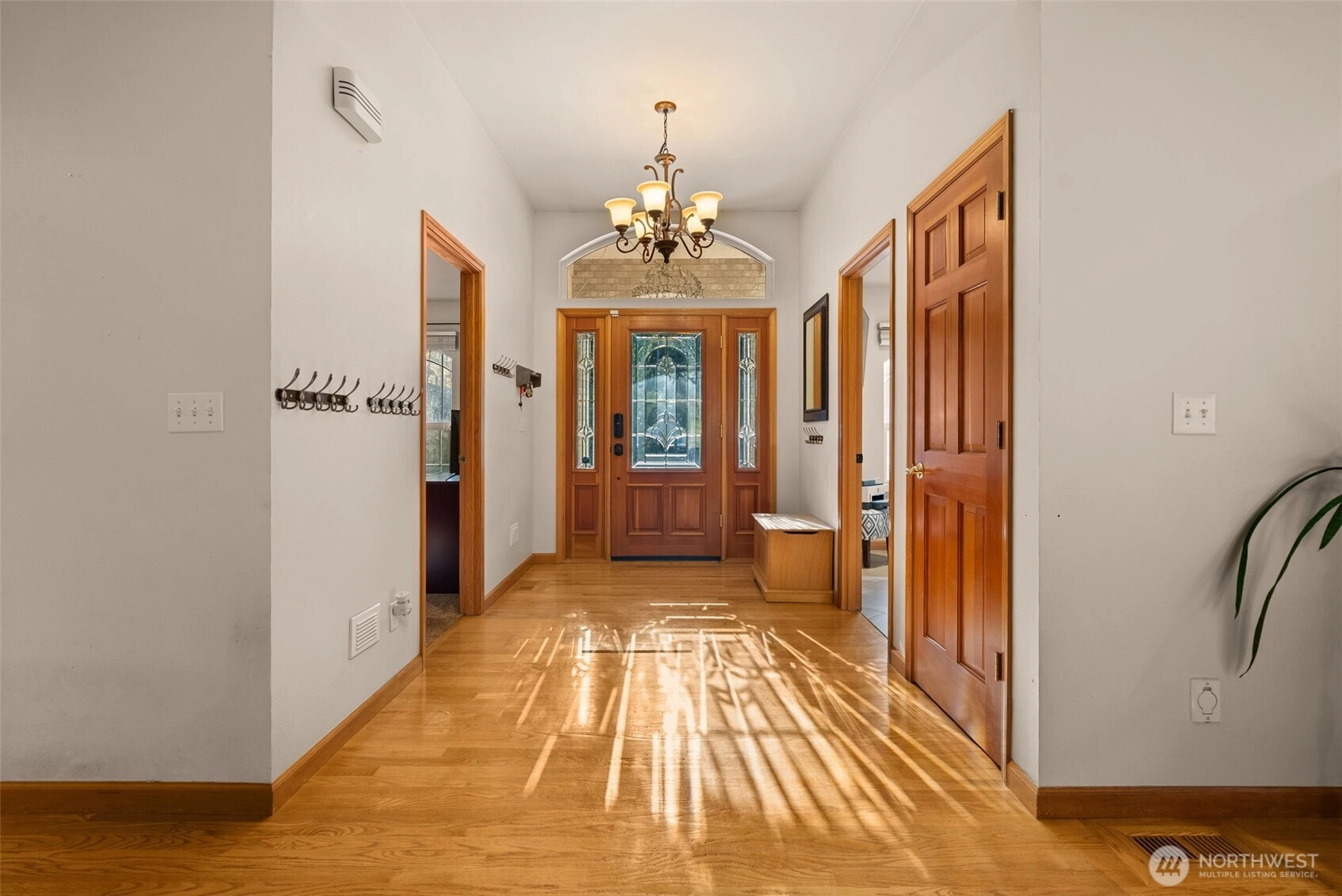 Escape to this private retreat on over 4 acres w/ this well-maintained rambler offering 3 bedrooms, 2 baths, and TWO versatile offices/flex rooms—ideal for remote work or hobbies. Enjoy spacious single-level living w/ a wide-open great room, hardwood floors, & a cozy wood-burning stove framed by large windows overlooking serene wooded surroundings. The kitchen features a large island, solid cabinetry, & newer appliances. The primary suite includes a spa-style bath w/ tiled walk-in shower, jetted tub, dual vanities, & a generous walk-in closet. Outdoors, enjoy the covered patio, large dog run, usable acreage, detached outbuilding, & room for gardens, animals, or a future shop. Bonus: direct back-road access to Bonney Lake with total privacy.