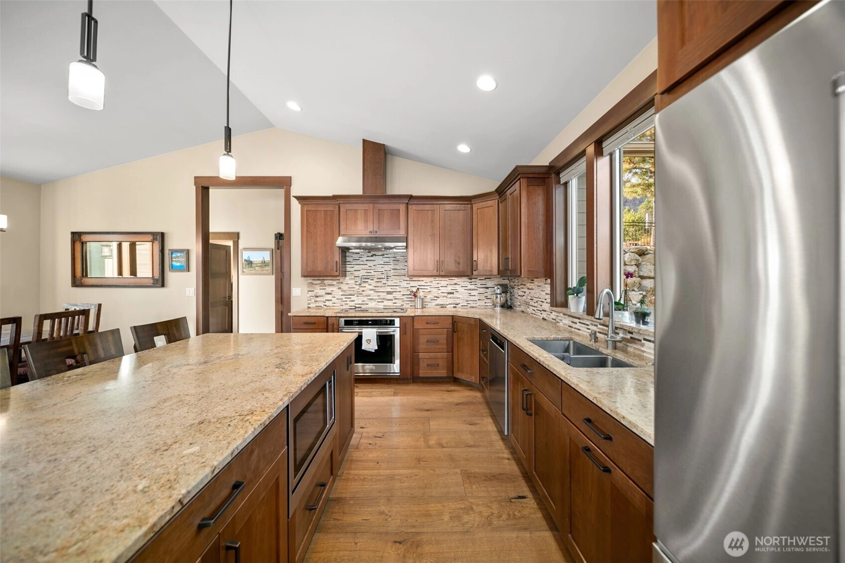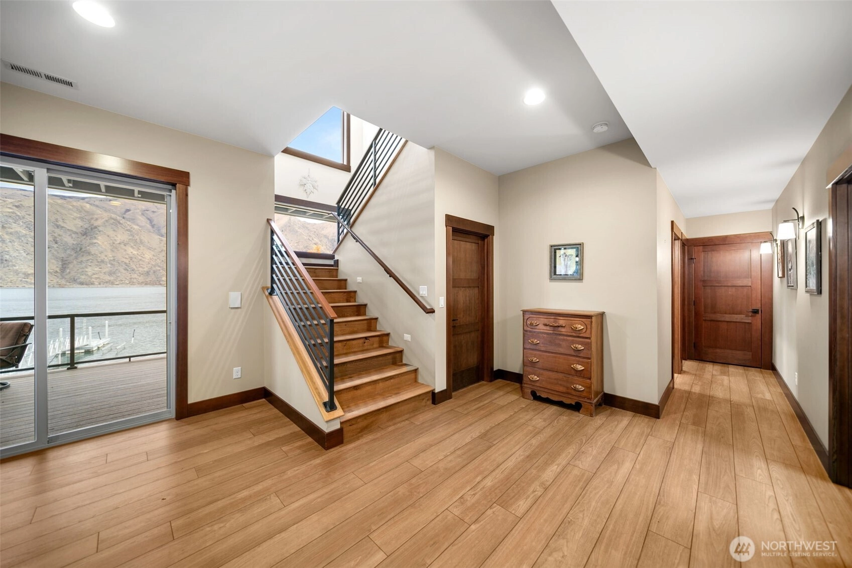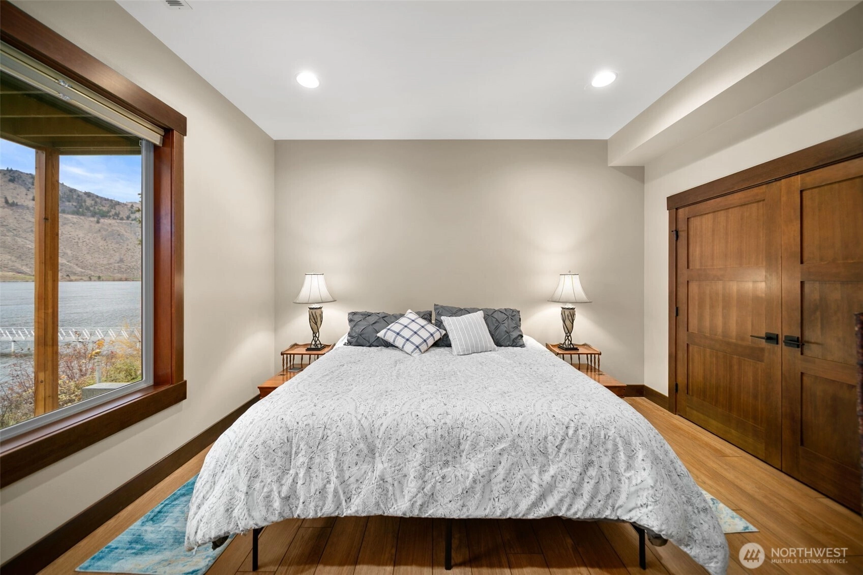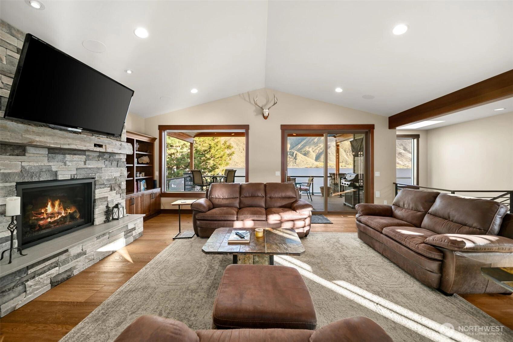 Welcome home to this masterfully crafted Entiat home + ADU featuring premier riverfront living on the Columbia River with ~141ft of low-bank frontage, a newer SINGLE use dock & 9,000lb boat lift. Upon entry you will find exsposed beams, vaulted ceilings, extensive use of engineered hardwood flooring, focal floor to ceiling fireplace & stunning mountain and river views. Inviting chef's kitchen with large center island, SS appliances, induction cooktop, large walk-in pantry and adjoining family room with oversized slider door to rear covered deck area that features infrared heaters - ideal for entertaining. Main floor primary suite, lower rec room, ample parking - the list goes on. An exceptional waterfront opportunity in Central WA!