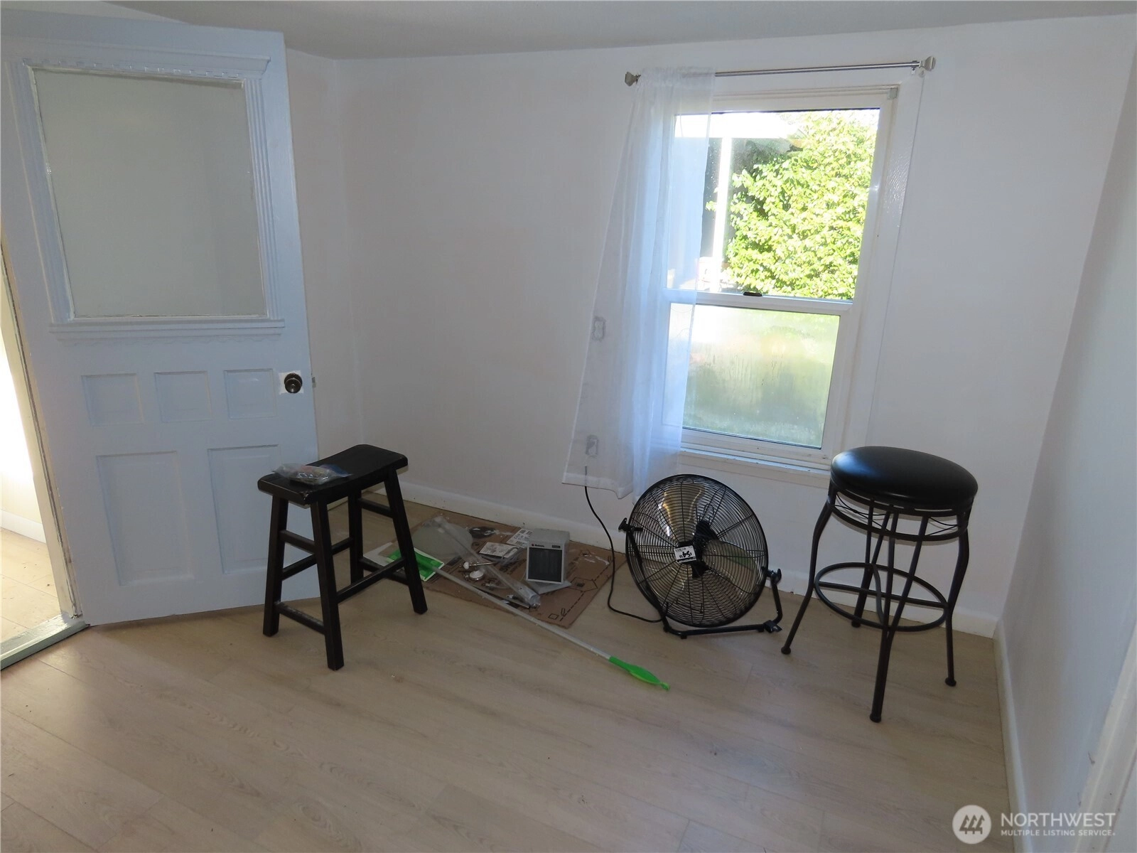 This home is a lovely one level home with one bedroom and 1 full bathroom and two nice bonus rooms! And in the bedroom, there are two large closets. The kitchen has a nice table next to it for sitting down to eat and the living room is next to the kitchen. And out front, the garage has room for a vehicle! Out back behind the house there is a nice, fenced area with a firepit for sitting down to relax! Lots of bright new windows and there is a utility room in the home!