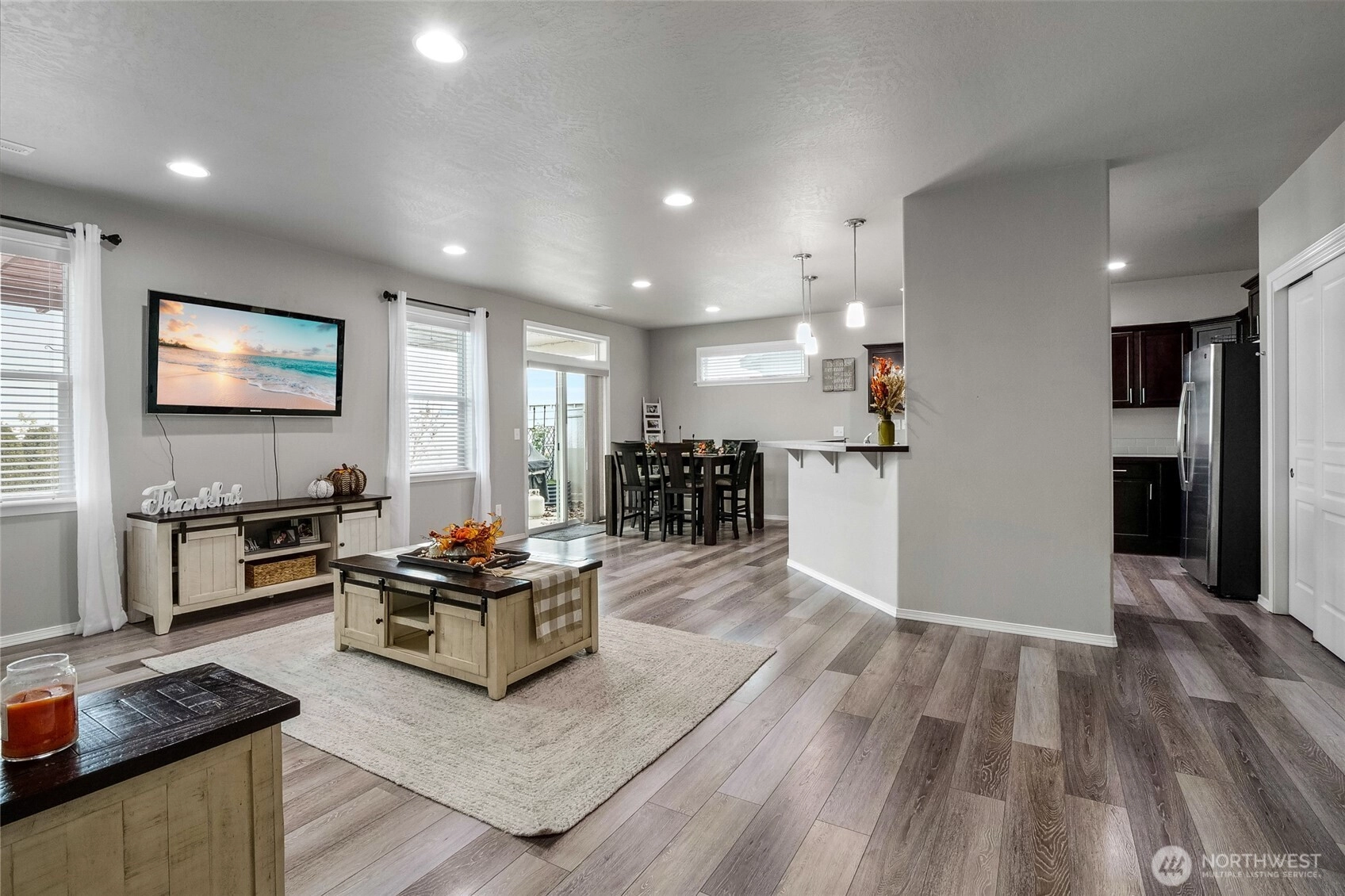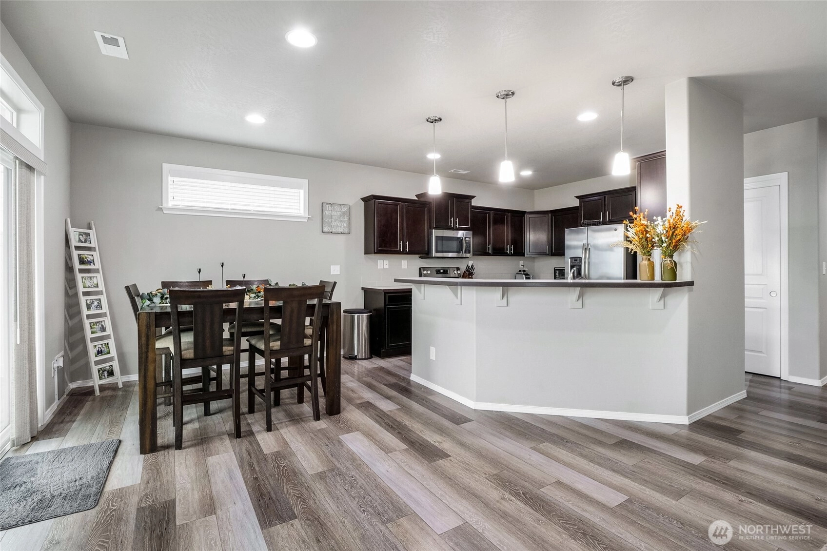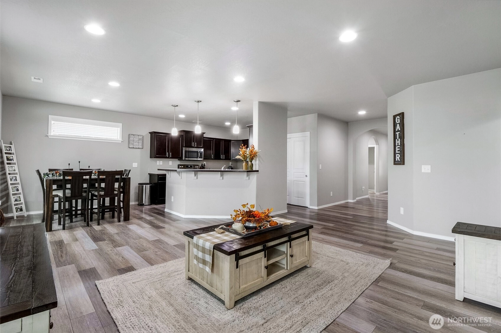 Charming and move-in ready, this 3-bedroom, 1.75-bath home offers a warm, welcoming layout and fantastic outdoor space. Step inside to an open-concept great room with a dining area, breakfast bar, and easy-flow design. The spacious primary suite includes a walk-in closet, dual sinks, and a private 3/4 bath. Outside, enjoy a fully fenced yard with beautiful landscaping, raised garden beds, and a covered patio perfect for year-round relaxation. The finished 2-car garage with extra depth provides added storage and convenience.