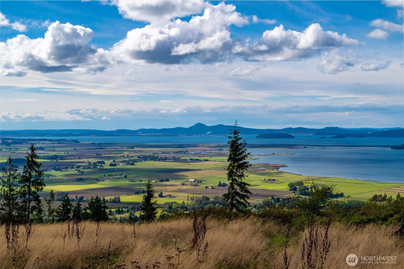 Discover the upper plat at Chuckanut Scenic Estates, an extraordinary vantage point where the landscape opens in every direction. From these elevated parcels, your eyes sweep effortlessly across the Skagit flats, following the farmland all the way to the shimmering bay beyond. The panorama continues outward to include the iconic silhouettes of the San Juan Islands, the snow-capped Olympic Mountains, and on clear days, Mt Rainier. Within this private, gated community, seven remaining 1-acre parcels with paved access roads, on-site power and water, cable, and strong cell service. Soil tests have been completed, and water right hook-ups under 1K. Despite the peaceful setting, you’re only minutes from I-5 and surrounded by open space and trails
