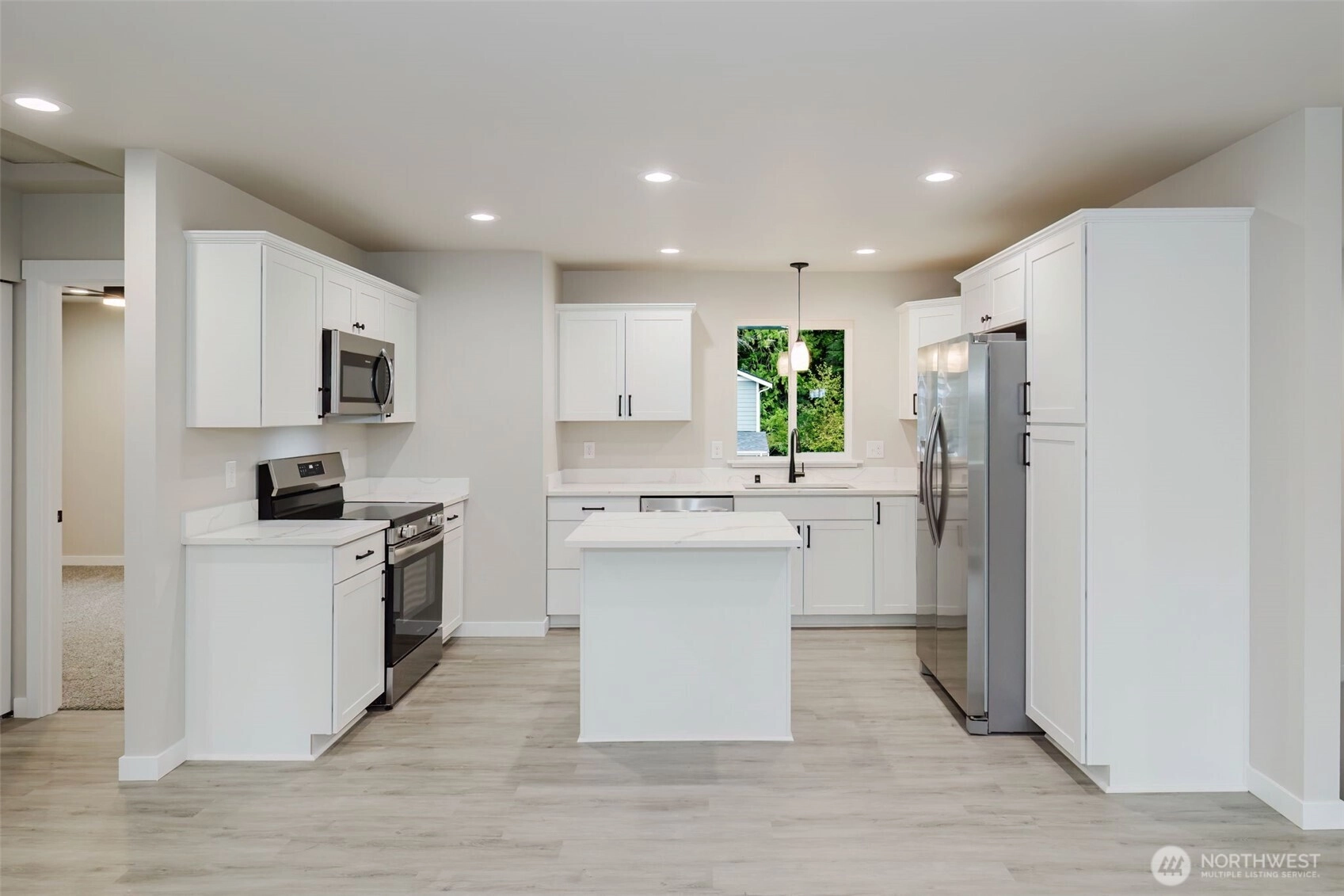 Luxury new construction with standout finishes and move-in-ready appeal. This 3-bedroom, 2.5-bath home features Hardie plank siding, elegant LVP flooring, premium stainless appliances, slab granite counters, and crisp white millwork. The designer kitchen impresses with a subway-tile backsplash and curated details throughout. Stay comfortable year-round with the ductless mini-split heat pump offering efficient heating and coveted A/C. The open-concept layout flows effortlessly and includes a generous bonus room for added flexibility. Fresh hydro-seeded landscaping and a 2-car garage complete this polished, modern home.