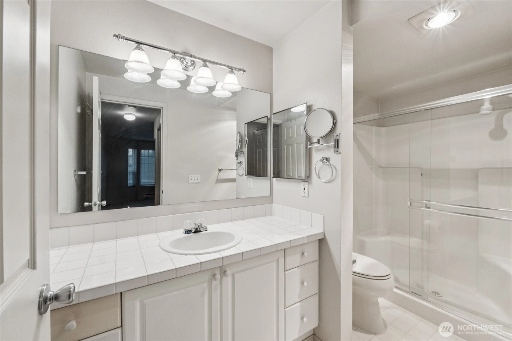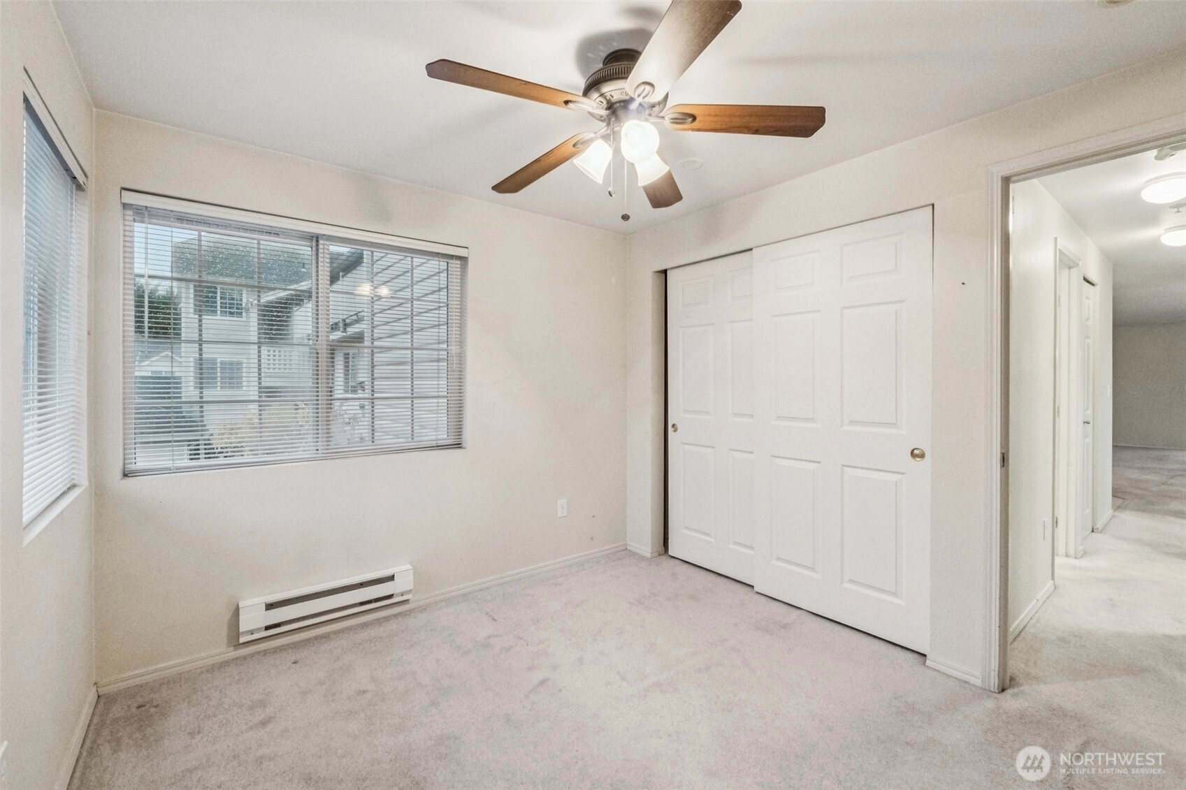 Welcome to this beautiful 3 Bedroom end unit condo! The sprawling floorplan is filled with natural light and features spacious living room and dining room, and a covered deck/patio for relaxing or entertaining. Large primary suite with ensuite bath and walk-in closet, and built-in shelving for additional storage or decoration. Light and bright kitchen cabinetry, gas fireplace and full hall bath. Conveniently located near freeway access, shopping, schools and bus line. Don't miss this opportunity for a large unit in a desirable area!