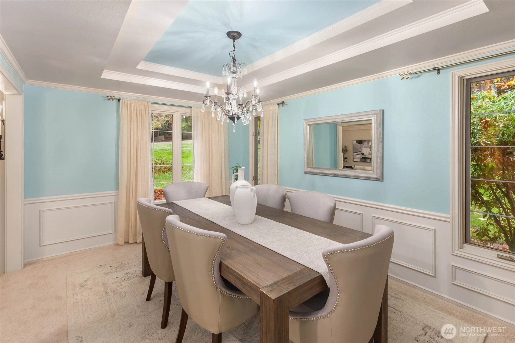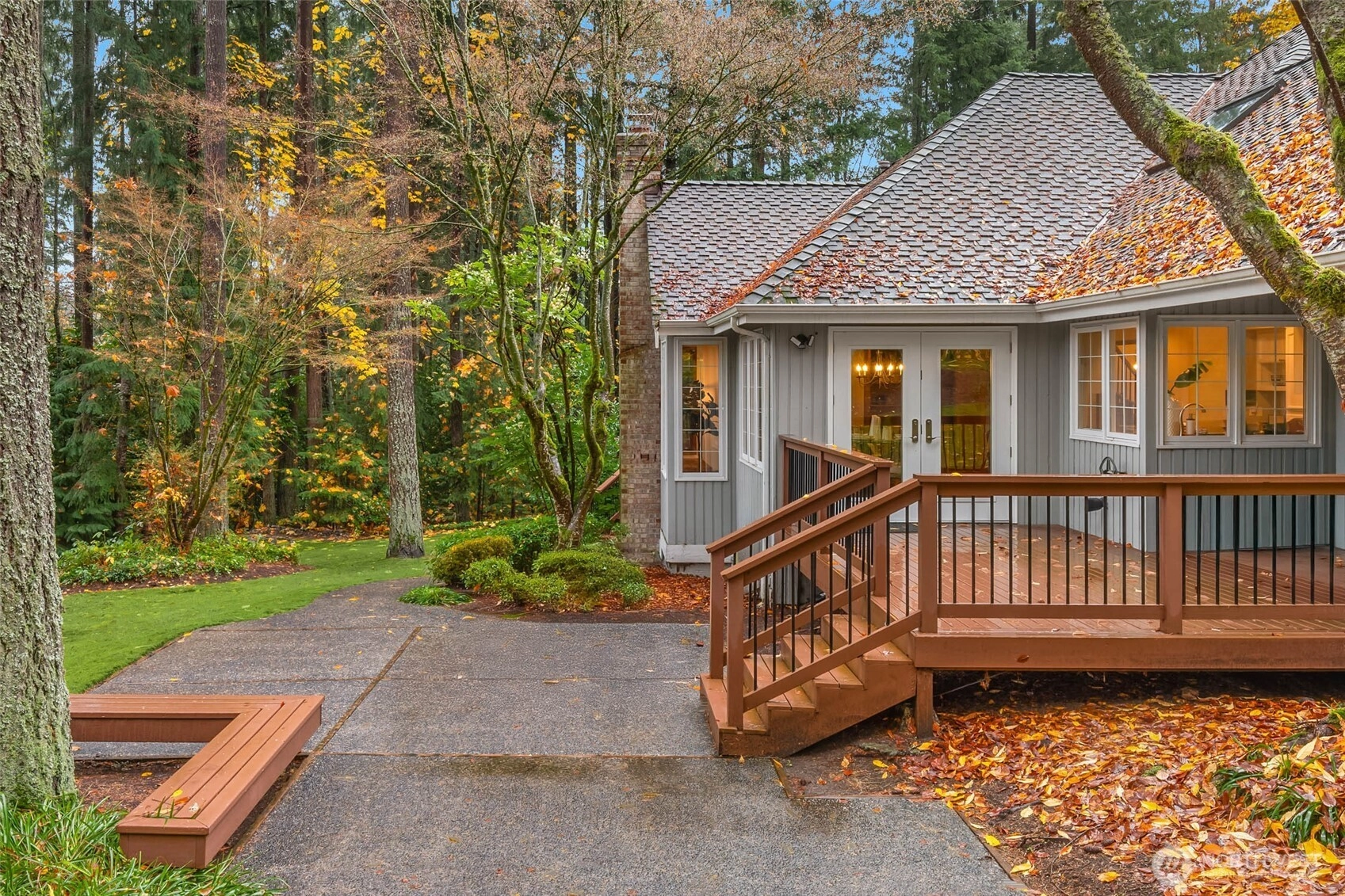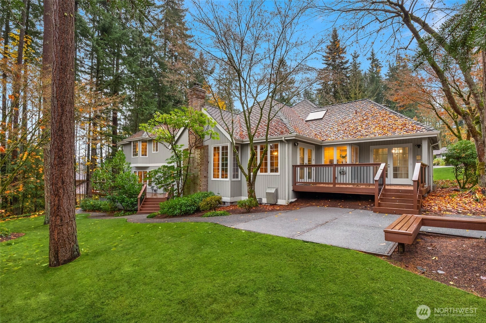 Rare opportunity to own in Canterwood Estates. Surrounded by beautiful trees on a horse acre, this expansive home w/ a split-driveway offers an impressive approach & curb appeal. From the grand mid-level entry to every room, you’ll find deluxe appointments & craftsmanship including double crown molding, extensive millwork & wainscoting. Super kitchen w/ eating space opens to a gorgeous deck/backyard through French doors. Main floor also features a formal living room w/ wood-burning fireplace, family room w/ gas fireplace, and a powder room. Large rec room w/ deck, full bath, office/den & utility room sit 1/2 story down. Four bedrooms 1/2 story up includes spacious primary suite w/ 5-piece en-suite plus additional full bath w/ soaking tub.