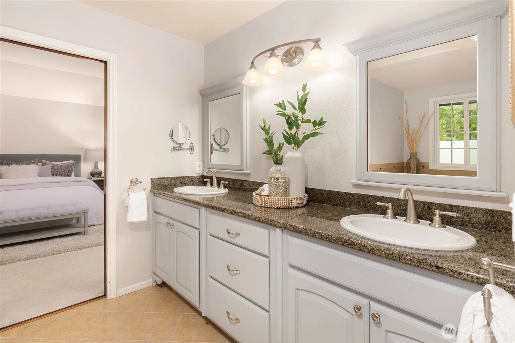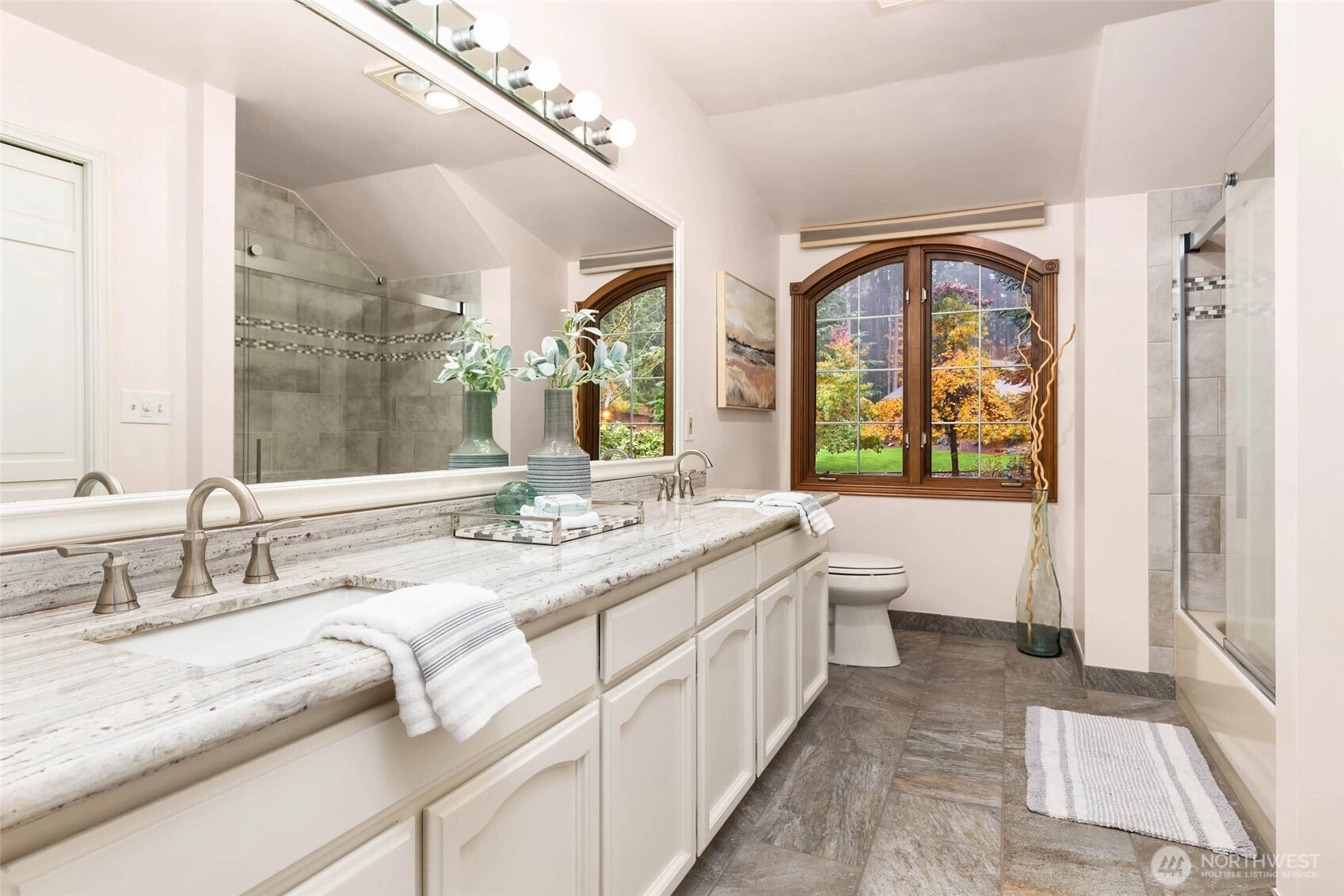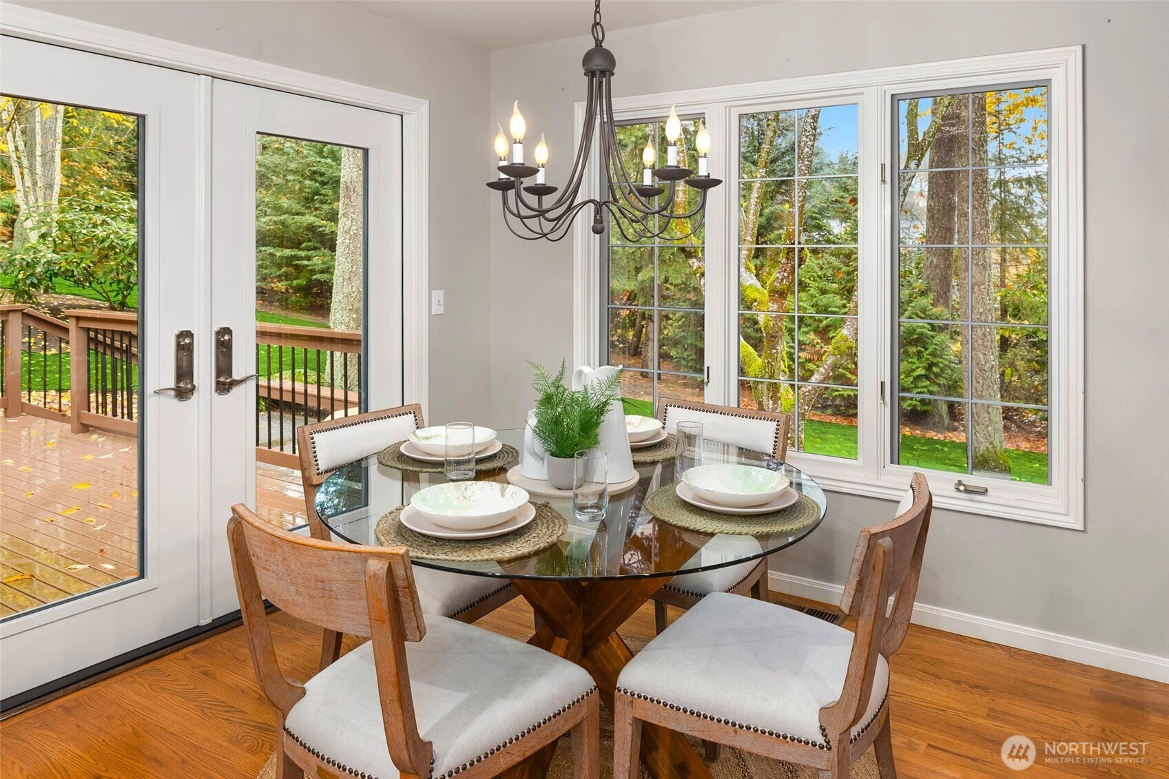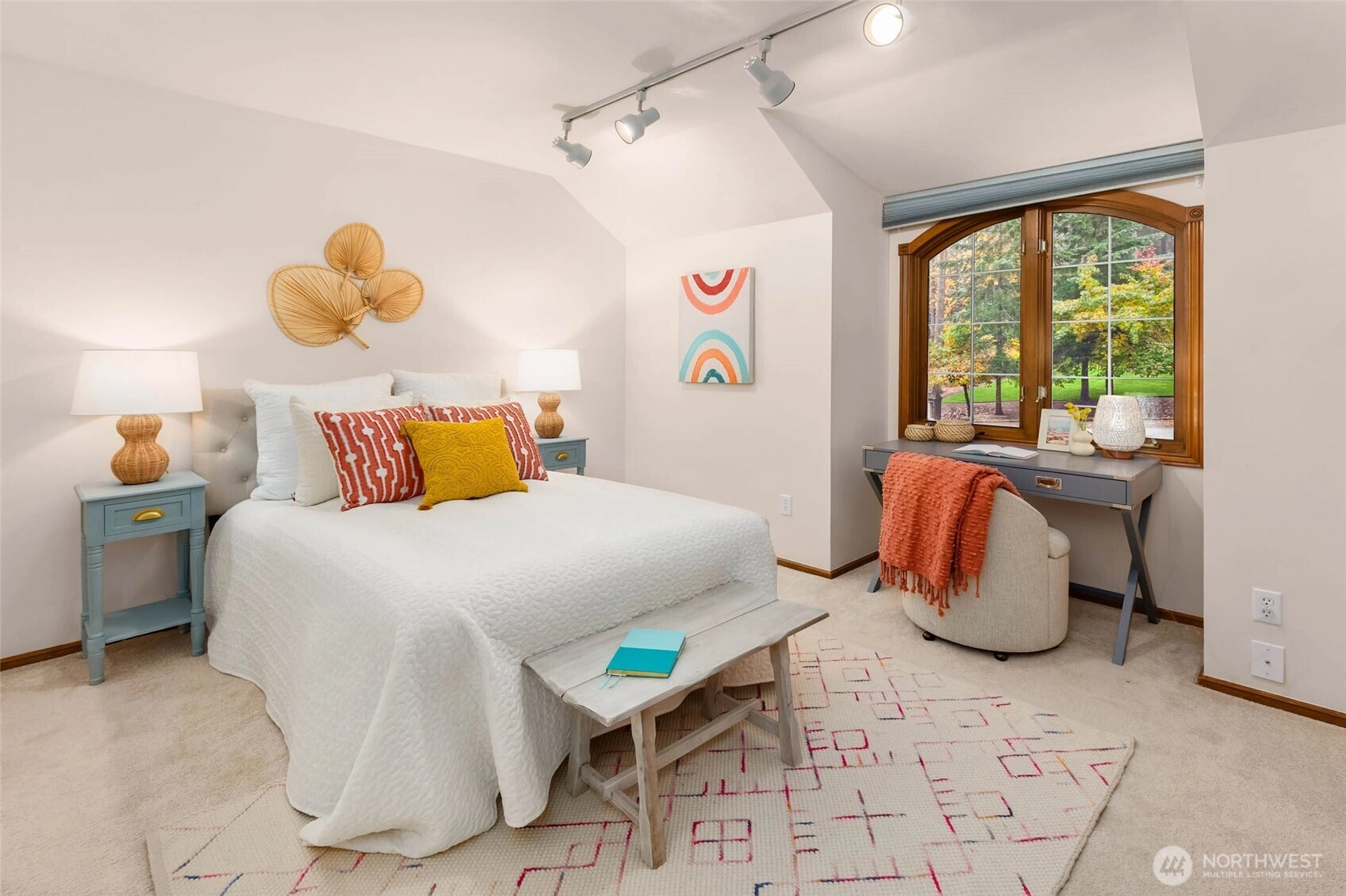 Rare opportunity to own in Canterwood Estates. Surrounded by beautiful trees on a horse acre, this expansive home w/ a split-driveway offers an impressive approach & curb appeal. From the grand mid-level entry to every room, you’ll find deluxe appointments & craftsmanship including double crown molding, extensive millwork & wainscoting. Super kitchen w/ eating space opens to a gorgeous deck/backyard through French doors. Main floor also features a formal living room w/ wood-burning fireplace, family room w/ gas fireplace, and a powder room. Large rec room w/ deck, full bath, office/den & utility room sit 1/2 story down. Four bedrooms 1/2 story up includes spacious primary suite w/ 5-piece en-suite plus additional full bath w/ soaking tub.