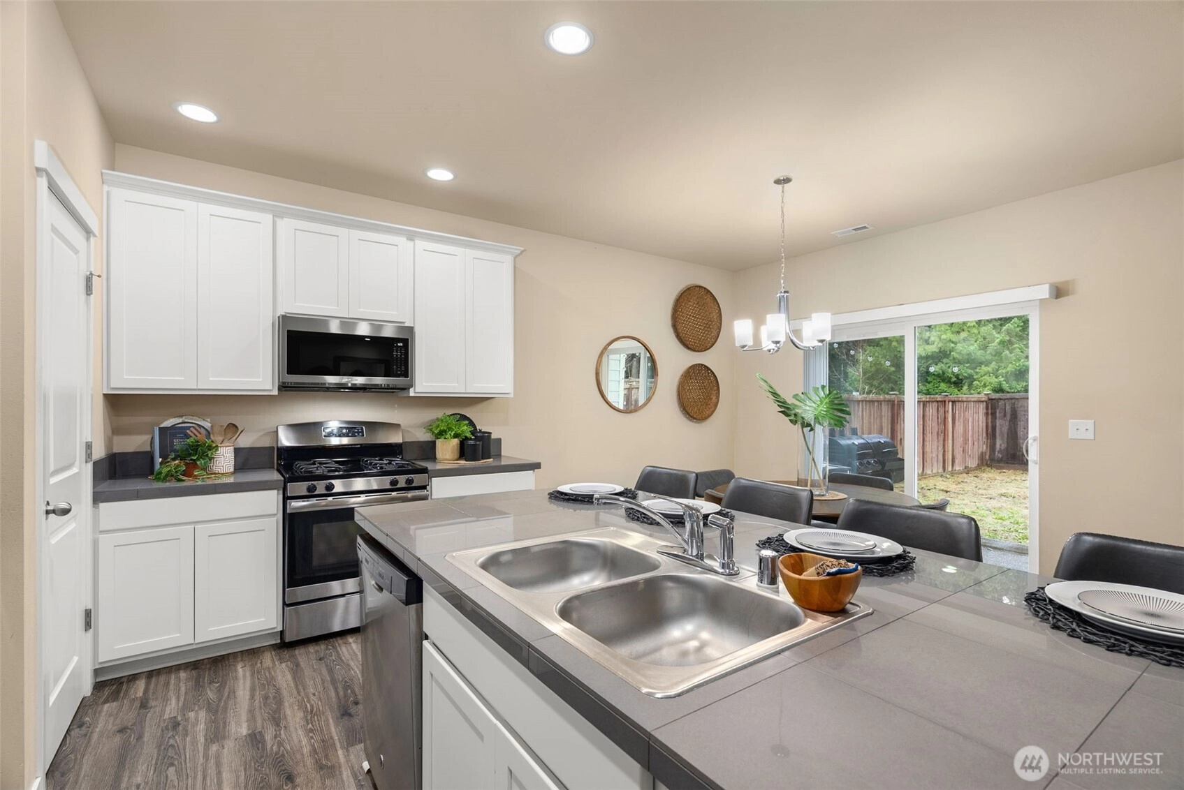 Beautiful, 4 bedroom home in the coveted Central Kitsap School District! With over 2,200 sf, this property features a flowing open floor plan. Perfectly positioned kitchen is the heart of the home with chic white cabinetry & a walk in pantry, & opens to the dining & living room. French doors lead you to the spacious Primary Suite with attached bath & 2 walk-in closets! Spoil yourself in the spa-like bath, with double vanity & soaking tub. Designed with flexibility & convenience in mind with three additional bedrooms, full bath & convenient laundry room upstairs. Enjoy your weekend BBQ on the back patio, overlooking the fully fenced yard. Super easy to Bangor base or the shipyard, & minutes to Silverdale's finest restaurants and shopping!
