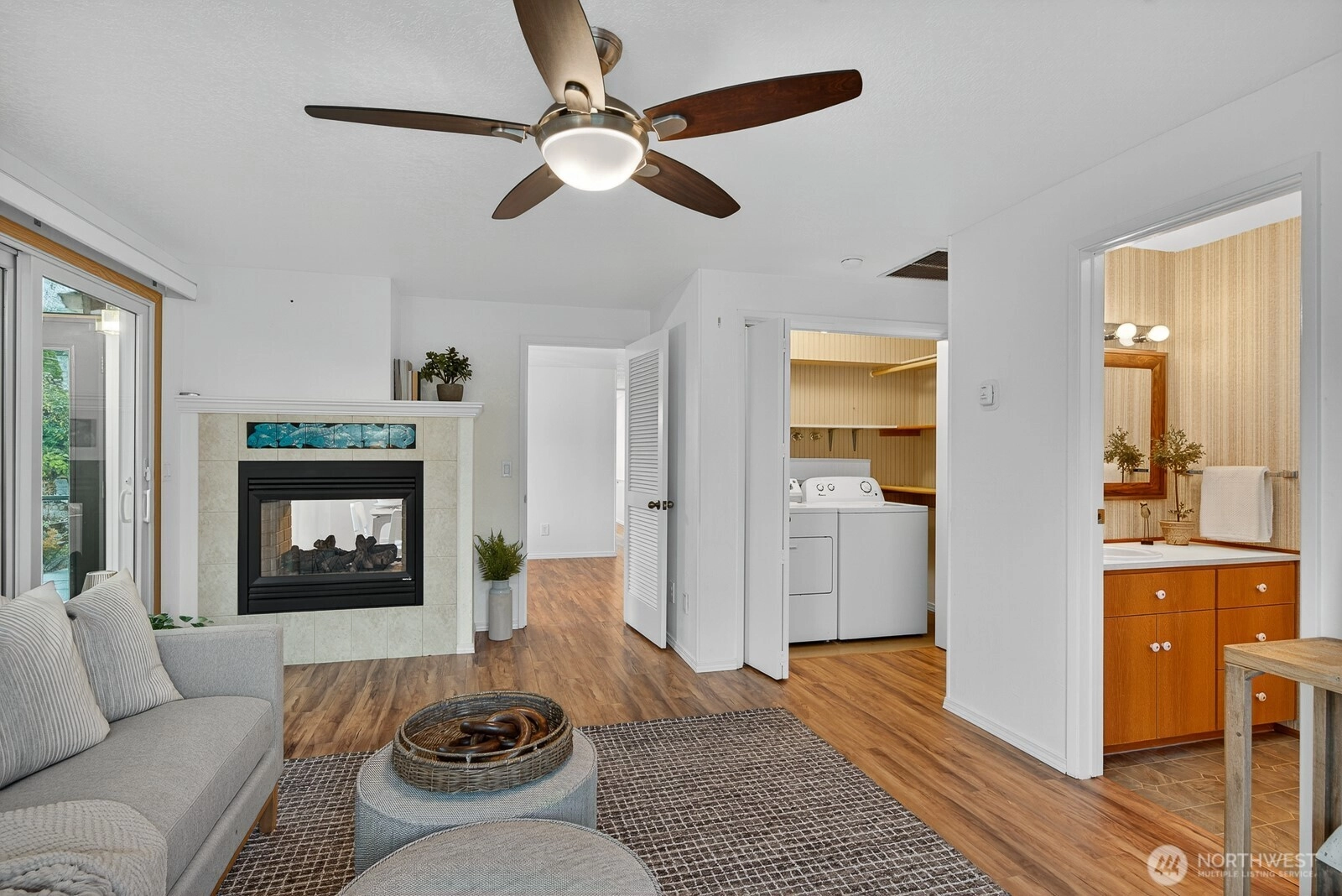 Welcome to effortless one-level living in the heart of Skyline with a layout that simply lives well. Living room flows into dining area, while well-appointed kitchen offers abundant cabinetry, pantry, generous skylight & pass-thru that makes hosting & everyday meals a breeze. A second living/rec room extends the home’s versatility, anchored by 2-sided fireplace & offering laundry, access to 2-car garage & slider opening to expansive sunroom. Outside is fenced backyard, ideal for garden lovers, pets or relaxed outdoor living. Three comfortable bedrooms include full bath & 3/4 bath, giving room for flexible use. Perfectly positioned to enjoy all amenities: play courts, beach club, nearby beaches & marina with quick access to Wa Park & ferry.