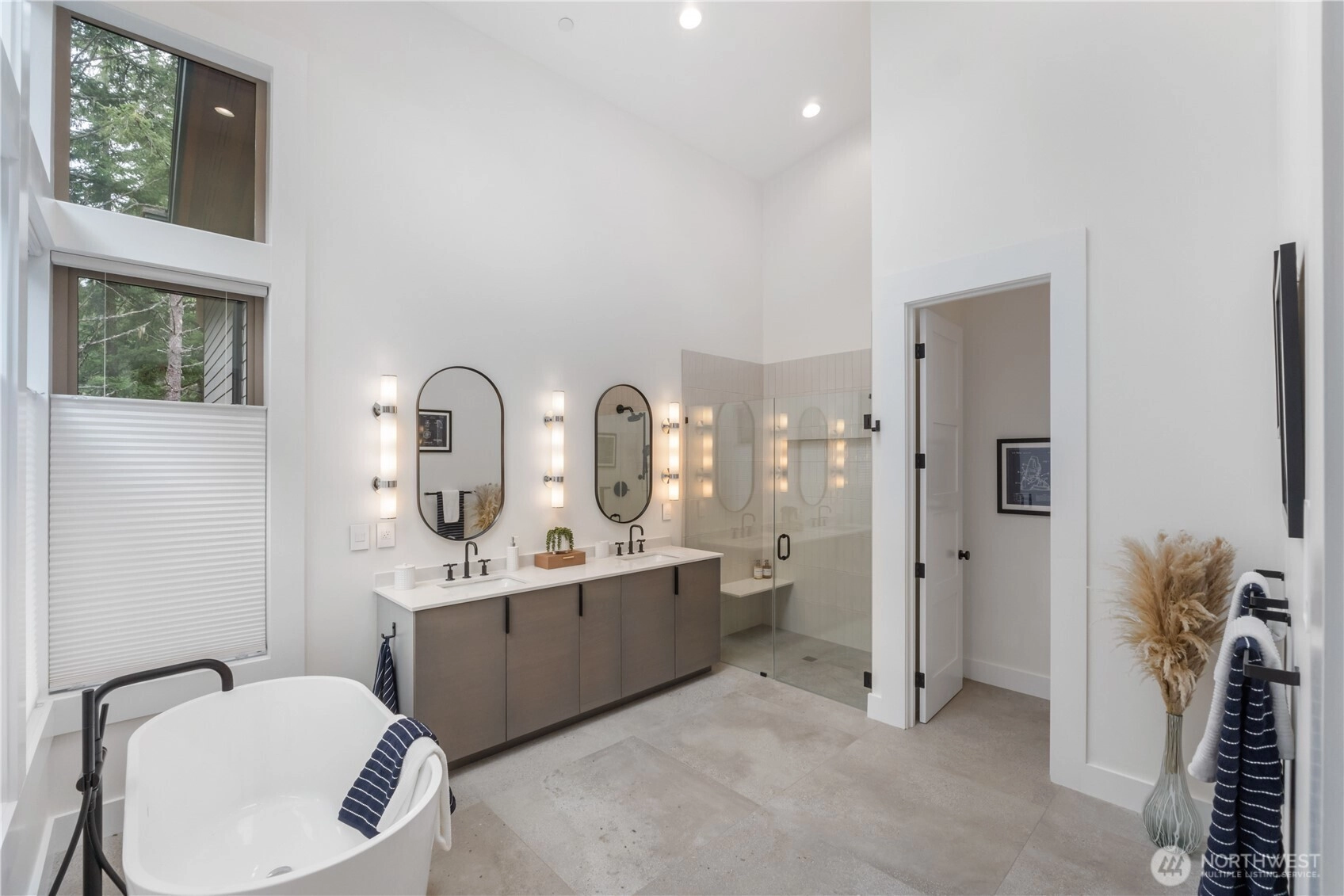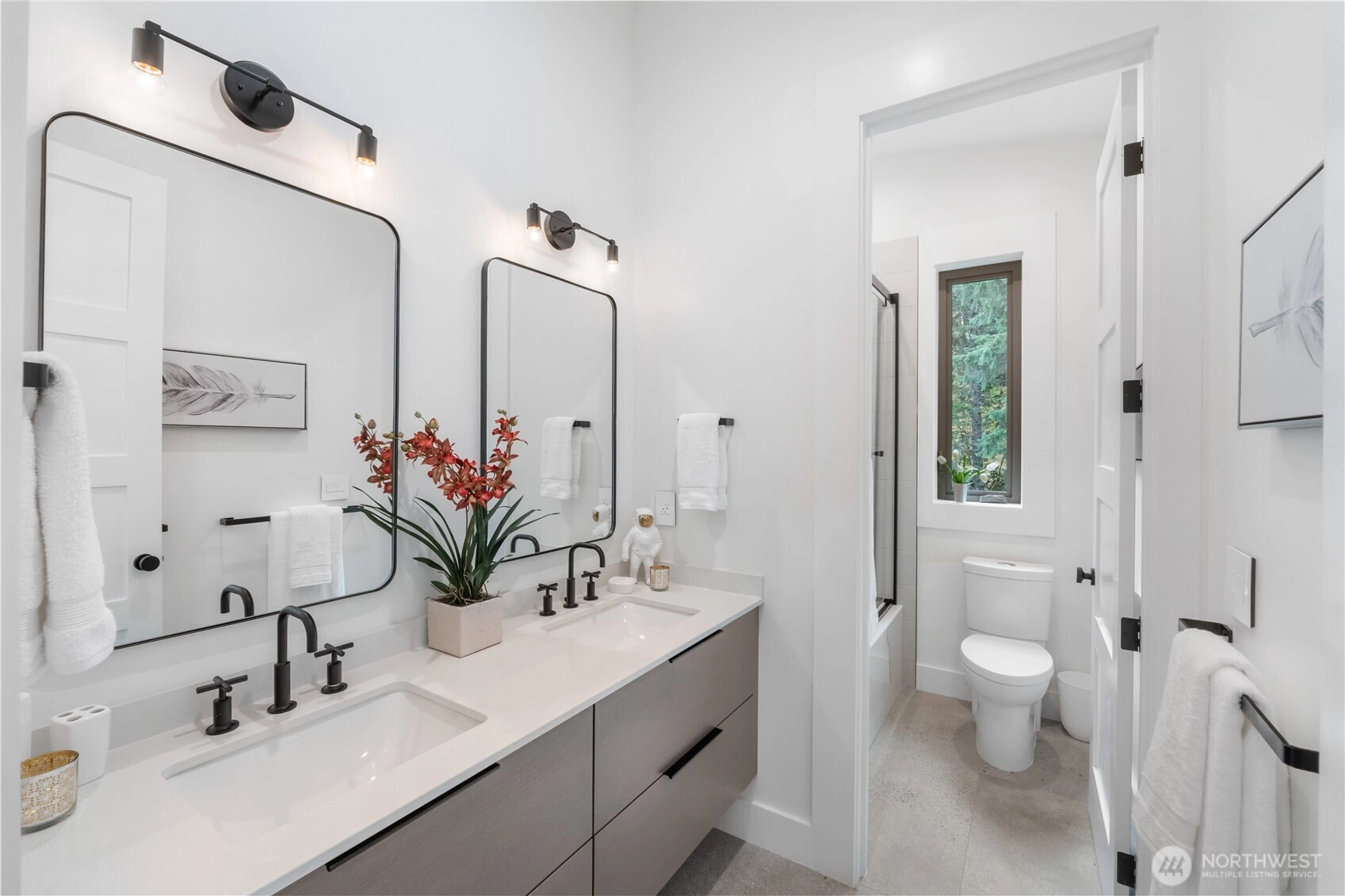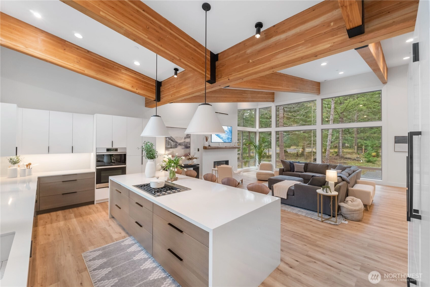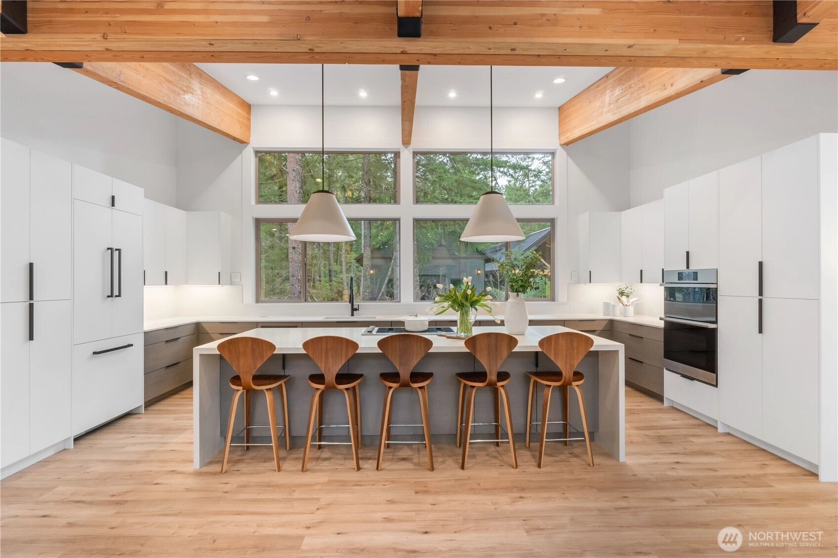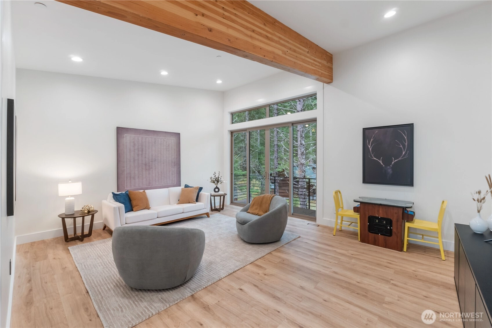 Stunning NW Contemporary home in Crystal River Ranch is a rare fusion of iconic design & modern luxury. Walls of glass frame the panorama, seamlessly blending indoors w/ the natural beauty of mountain living. Built in 2024, this 3 BR + bonus rm (used as BR) home showcases high-end craftsmanship thru-out. Open-concept main floor great room w/ soaring 20' ceilings & exposed beams, huge chef's kitchen, living rm w/ gas FP, & dining area w/ custom buffet. Den/office & 2nd primary BR suite round out main floor. 2nd flr features spacious primary suite, 2 bedrms & full bath, plus a secluded family rm. 3 car fully insulated attached garage. Recent privacy landscape added. Walk to comm. clubhouse, playground, ball fields. 20 minutes to Crystal Mtn.