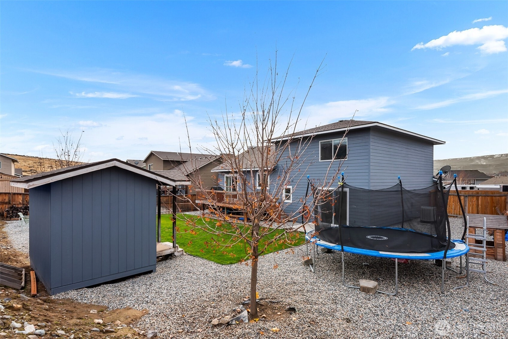 Stunning Tri-Level home with high ceilings and an open-concept layout that fills the space with natural light. The Living Room flows seamlessly into the Dining Area and Kitchen with peninsula and eat bar. From the Main Level, step out onto a deck overlooking the spacious, fully fenced backyard, perfect for pets or outdoor enjoyment. The Lower Level offers a finished Family Room, half bath, laundry, and direct garage access. Upstairs, the Primary Bedroom features a private bath and walk-in closet, alongside two additional bedrooms and a full bath. Exterior Recently Painted, combining style, functionality, and comfort on every level. Built in 2014, located in Canyon Hills, this home offers a balance of peace and city accessibility.