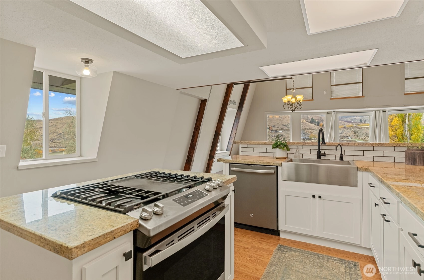 Experience the charm of this refreshed 3-bedroom A-frame, perfectly situated on 2.15 acres with stunning Methow River and mountain views. Offering 2,392 sq. ft. of inviting living space, this home showcases enhanced landscaping and a welcoming aesthetic. The fully remodeled kitchen impresses with new cabinetry, granite countertops, stainless steel appliances, and a spacious single-basin sink. The open concept main living area features a cozy stove and chimney, adding both ambience and efficient heat. Thoughtful exterior updates, improved garden beds, and well designed outdoor spaces create a seamless connection to the natural surroundings. Enjoy sweeping views from the main floor and throughout the property.