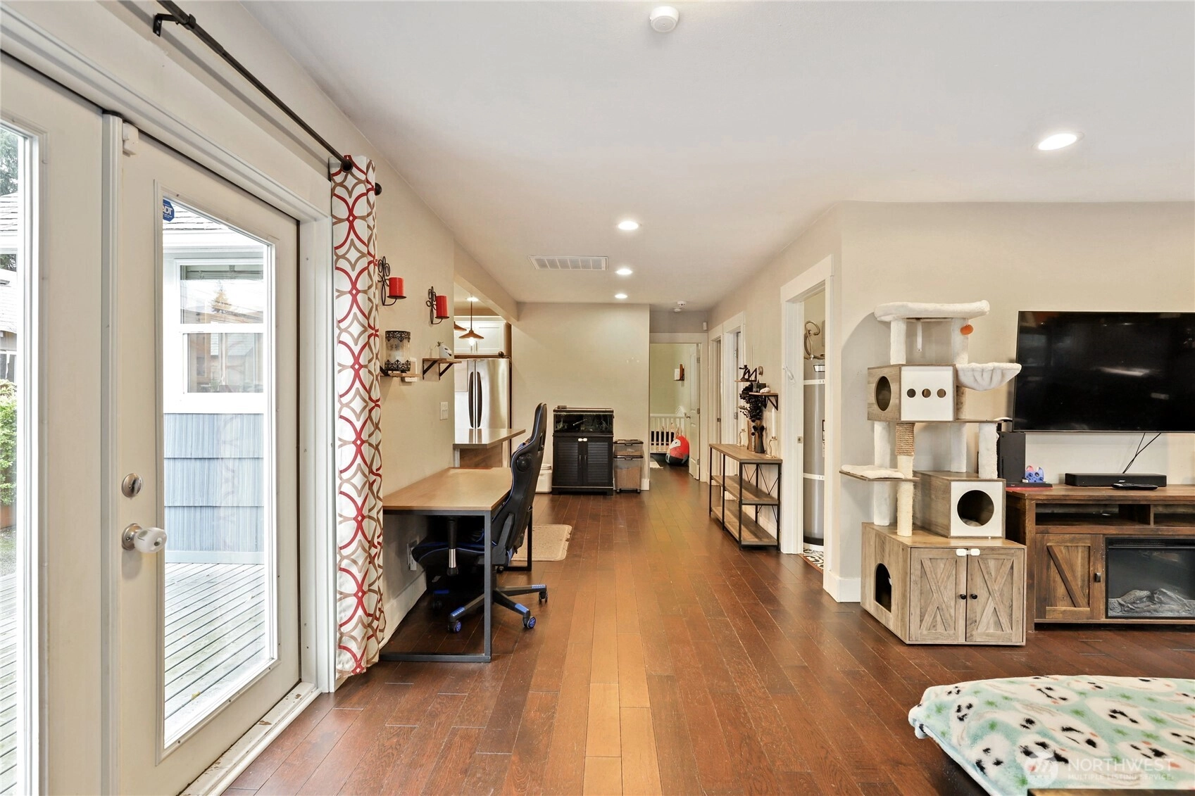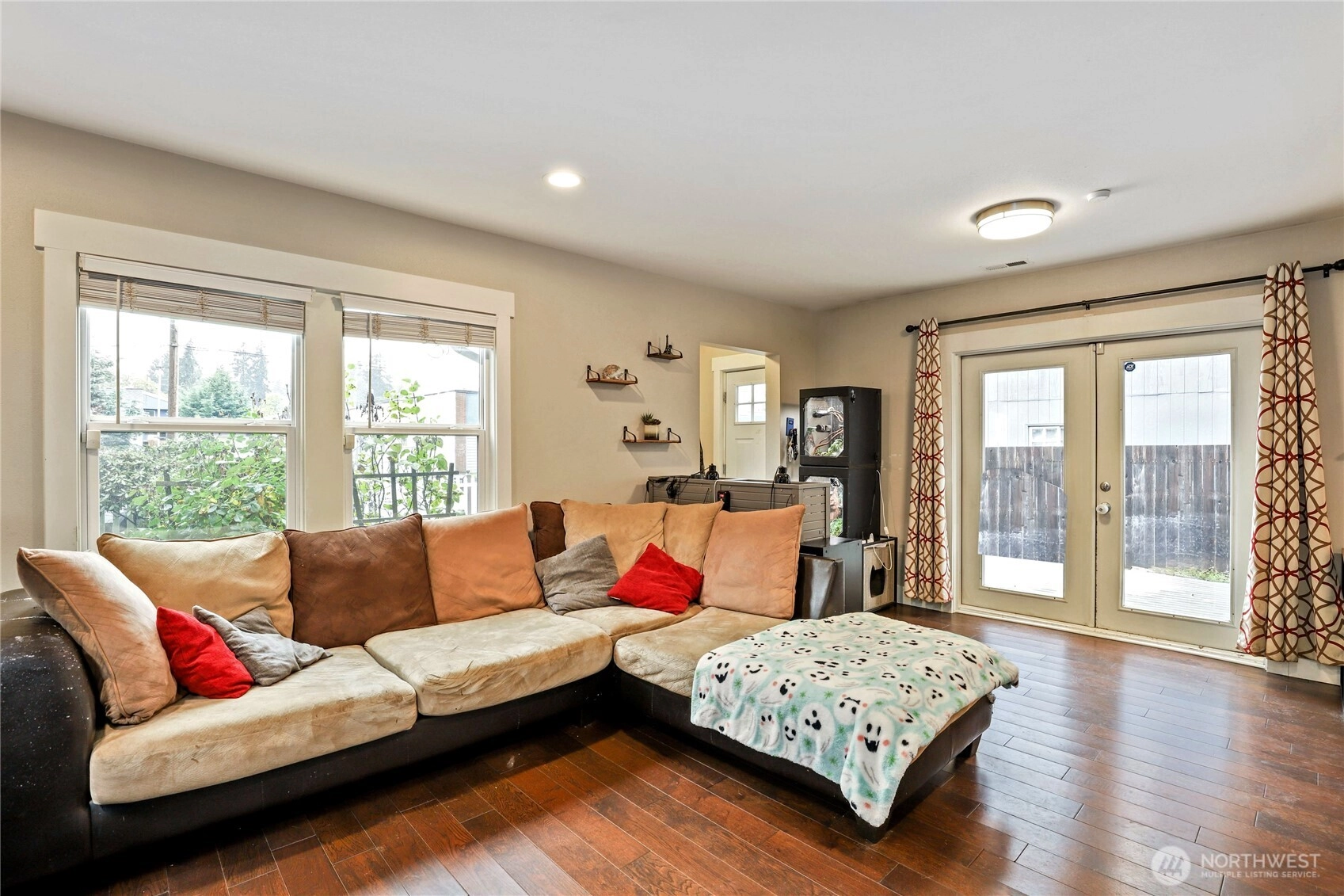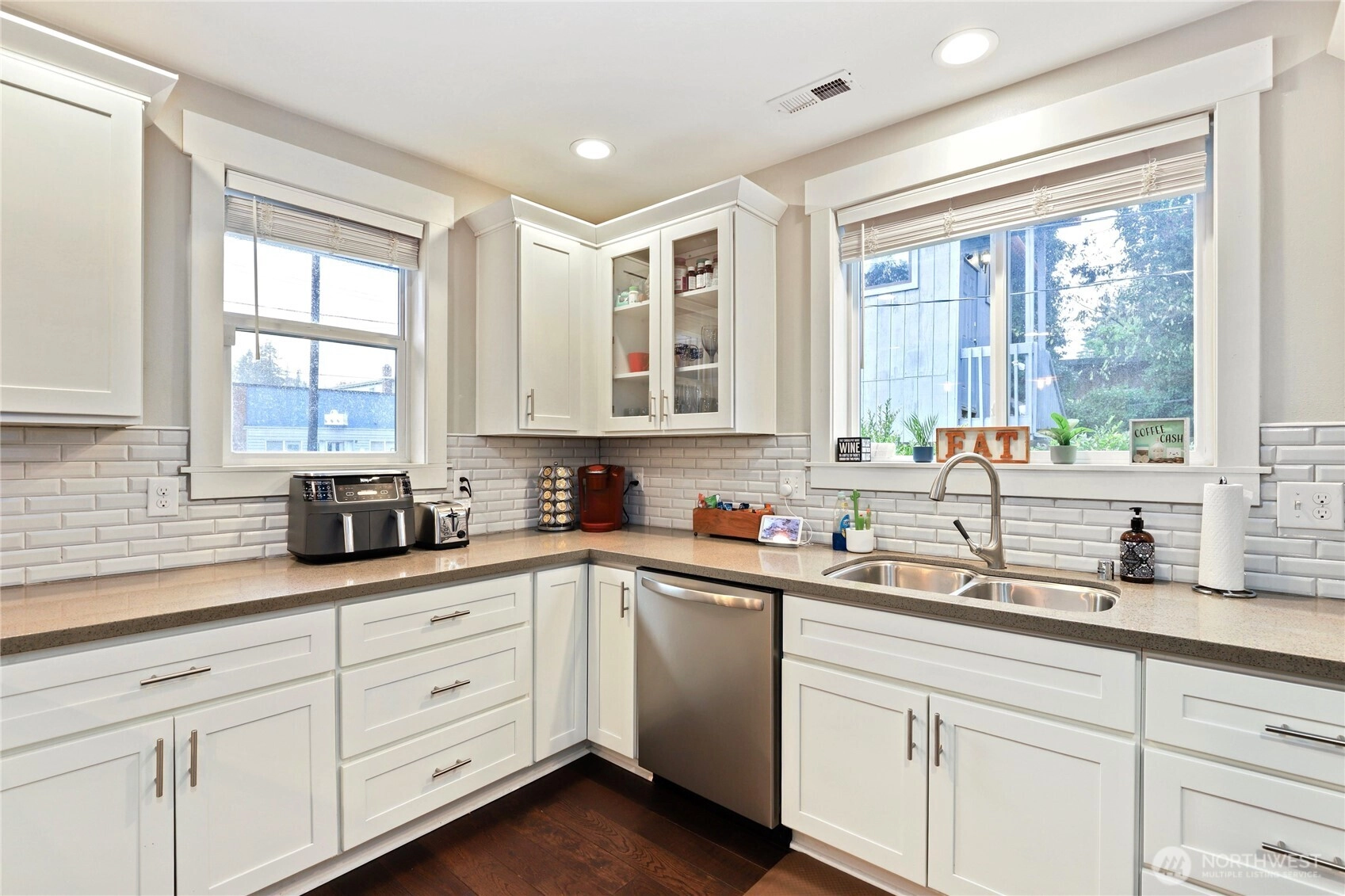 Come see this fully updated 2 bed/1 bath Craftsman home near lively shops and restaurants! Open floor plan, gorgeous hardwood floors, dinning area with French doors leading to an open deck. Massive kitchen with custom tile backsplash, stainless steel appliances, quartz countertops. Primary bedroom has private deck & walk-in closet. Dedicated laundry room, newer water heater, updated plumbing, electrical. Fully insulated garage with loft storage, new lighting, electric car charging hookups, bonus attached shop leading to a fenced backyard. 18 min walk to PSNS, 10 min to Bremerton ferry terminal.