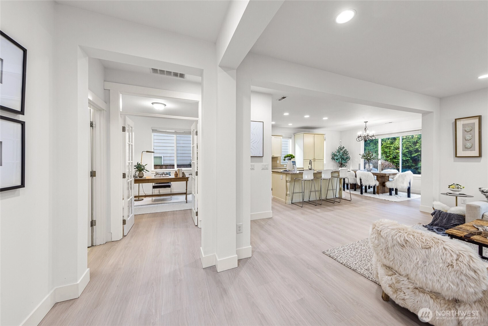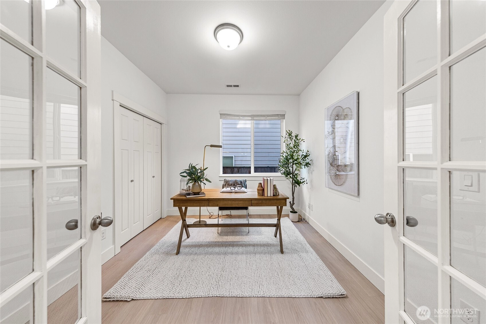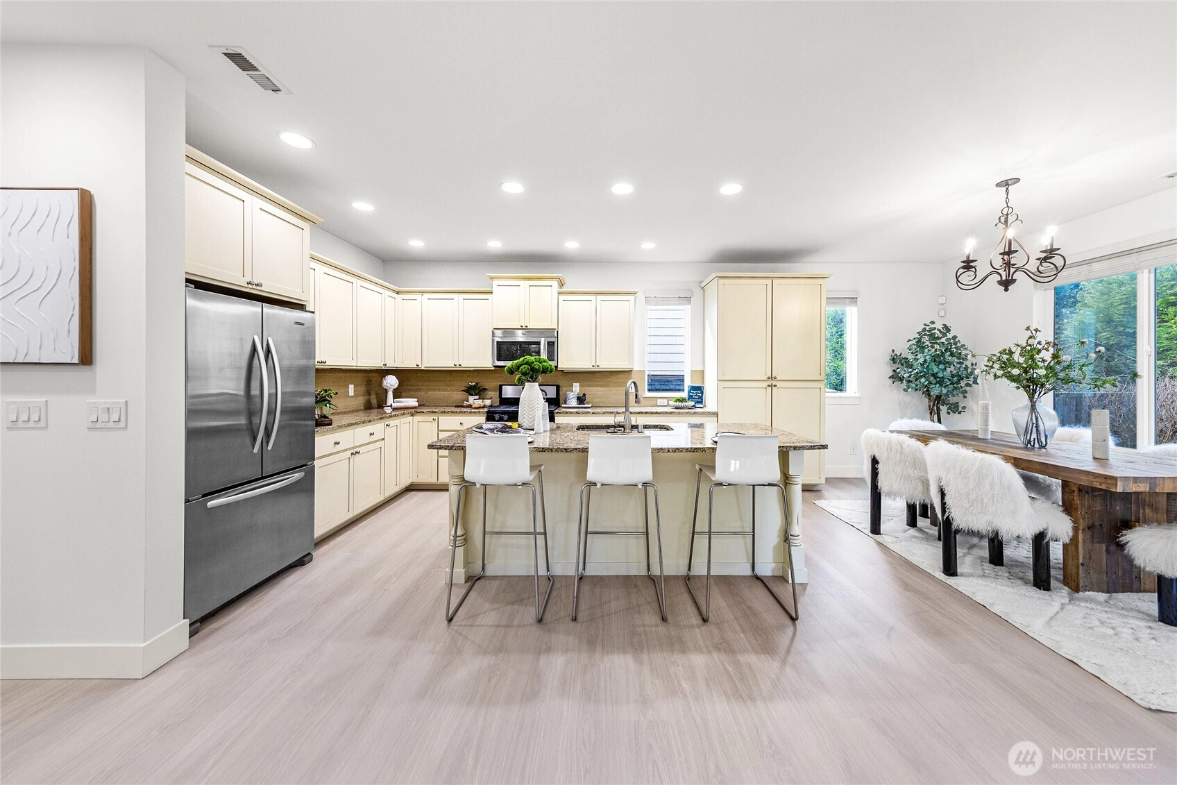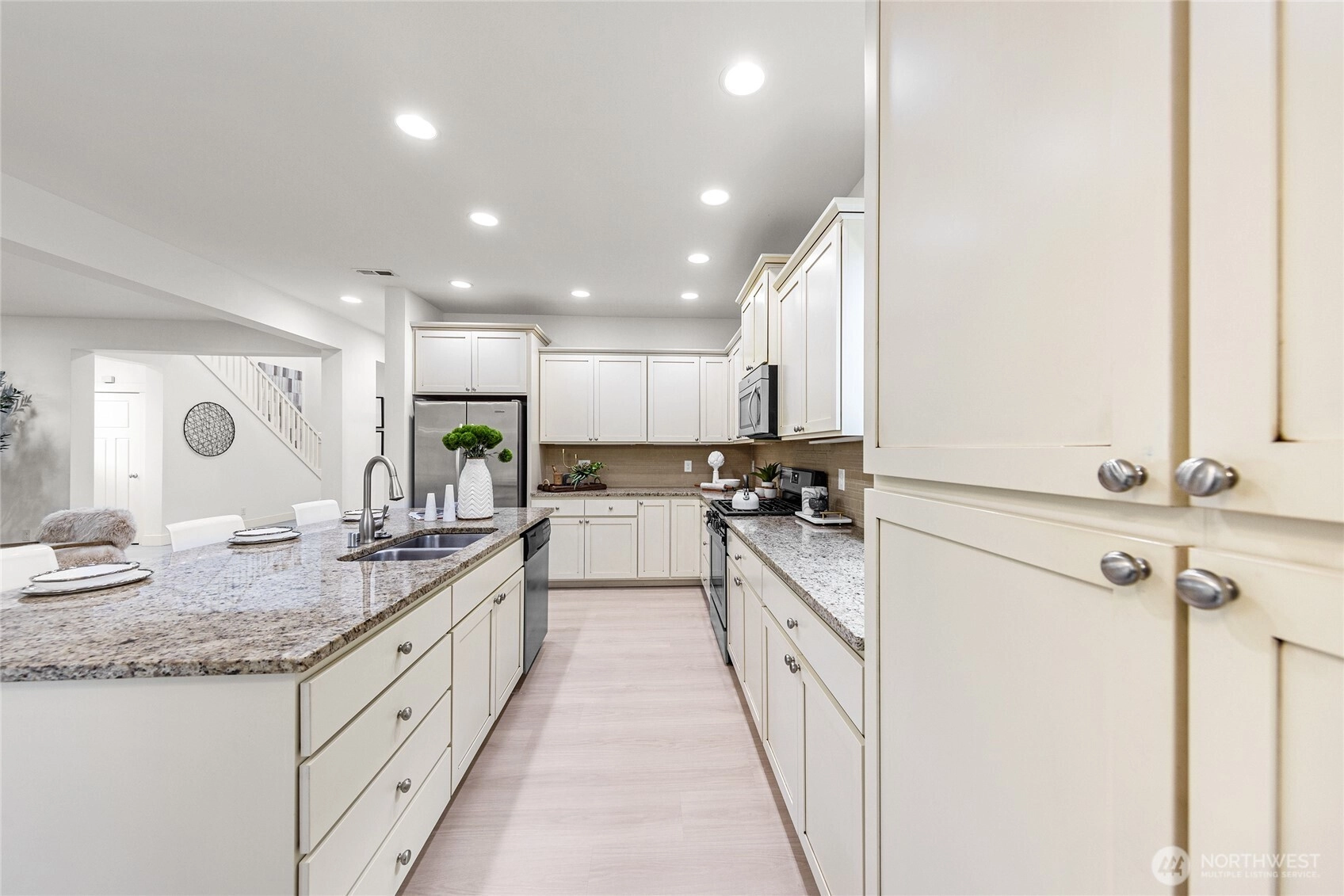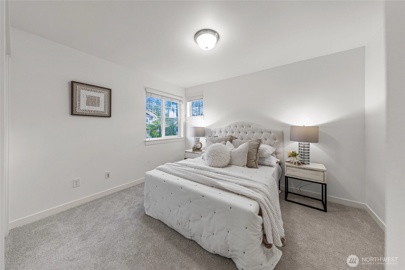 Immaculate Craftsman-style home on a desirable corner lot in Bear Creek, featuring brand-new carpet, fresh interior paint, and newly updated flooring throughout. The open layout highlights 9-foot ceilings and a gourmet kitchen with stainless steel appliances, granite countertops, and generous prep space. Main floor study with adjacent full bath offers flexibility and can easily serve as a guest suite. The vaulted primary retreat boasts a spa-inspired 5-piece bath and a spacious walk-in closet. An upstairs bonus room provides the perfect space for entertainment or work. Enjoy a fully fenced backyard with a large covered deck—ideal for gatherings. Prime location near Tambark Creek Park, major highways, and Mill Creek Town Center.