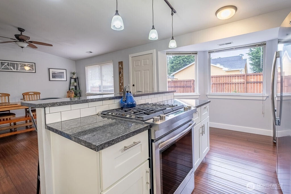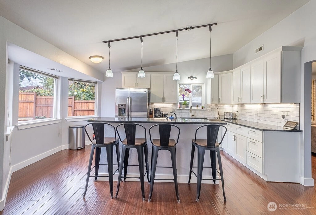 A work of art in the heart of Anacortes. Beautifully maintained and improved 3 bed, 1 3/4 bath jewel of a home. Freshly remodeled throughout. Light and bright kitchen with granite counters and high quality appliances. Luxurious primary bath with tile and stone finishes. New paint, new deck, new flooring and the list goes on. Fenced back yard for pets and play. Great built in garden beds. Even a chicken coop! Quiet street with easy access to all the city has to offer. Come and find your perfect new home!