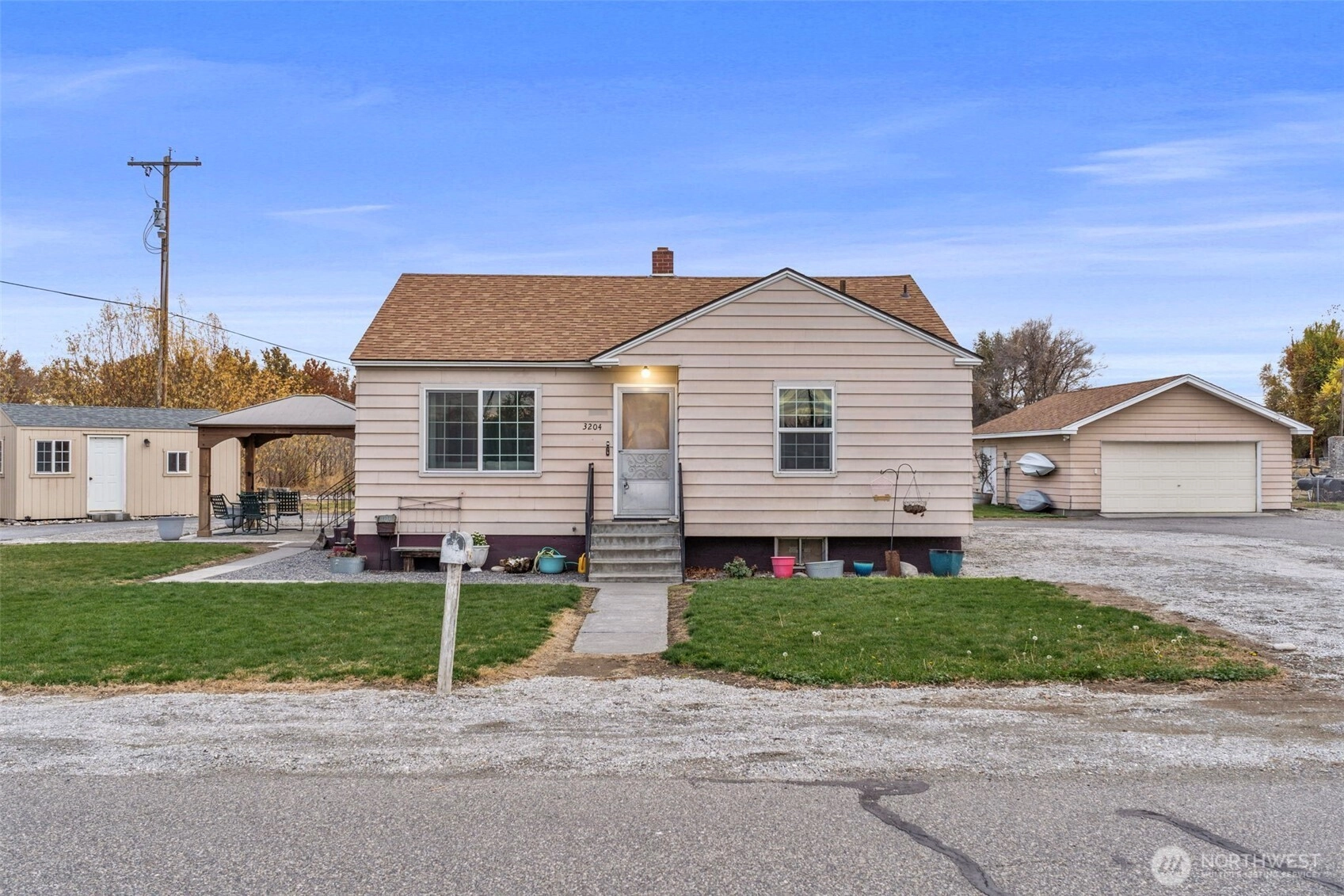 Discover a unique opportunity in West Pasco on a 0.8-acre subdividable lot. This 1948 rambler with basement offers 1,852 sq ft, 3 bedrooms, 2 bathrooms, central heat and air, and vinyl windows. A 30x22 two-car garage provides excellent storage, along with an 18x16 barn/utility building and a 10x20 shed. With irrigation water and plenty of space for projects or future potential, this property offers flexibility and convenience in an established West Pasco location.