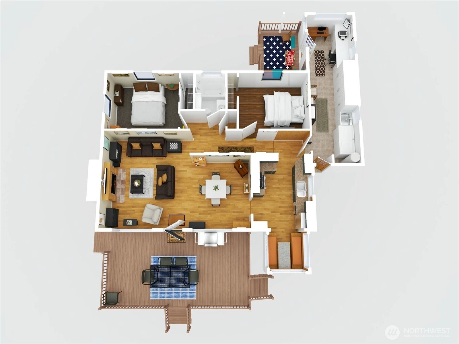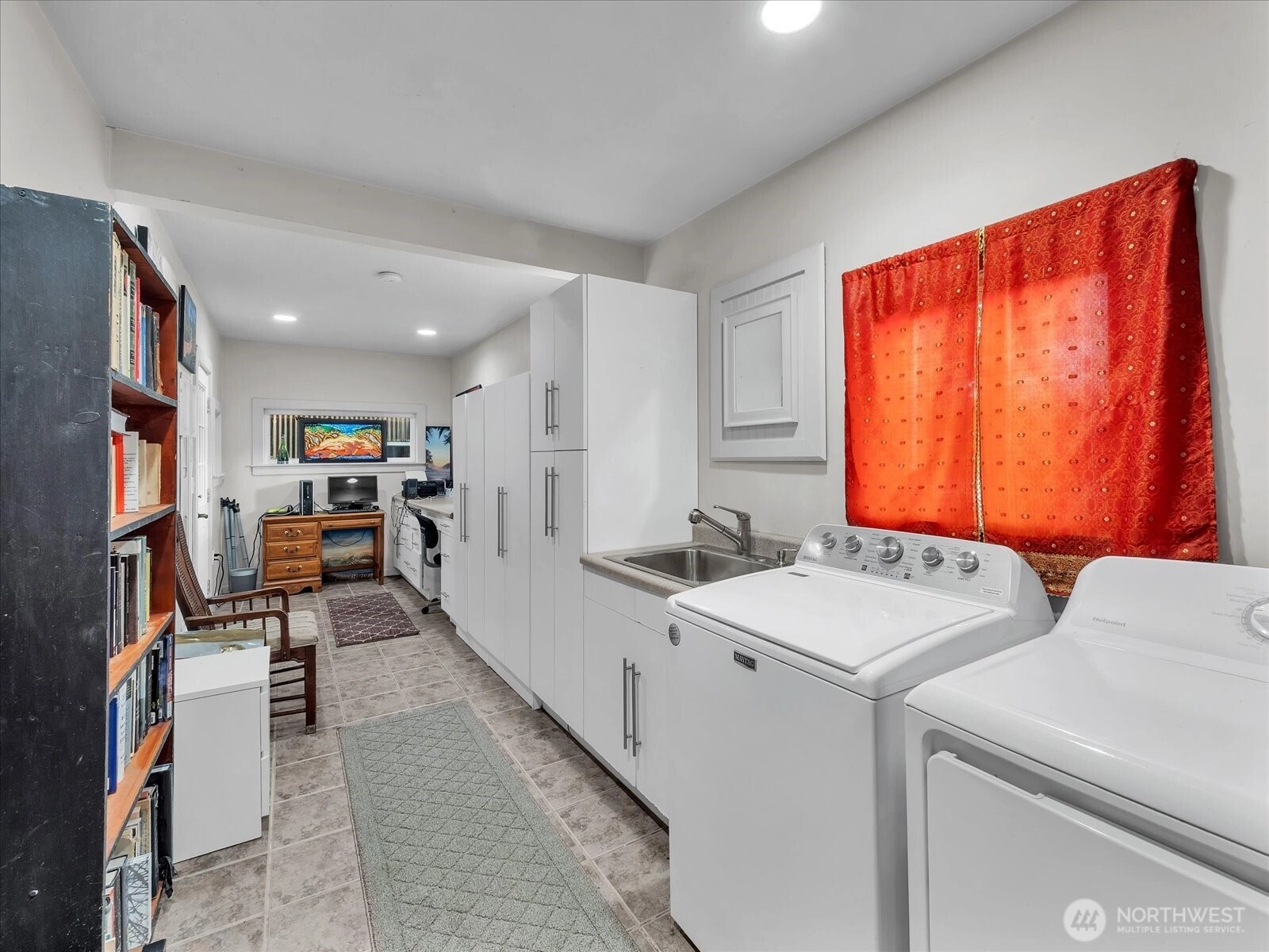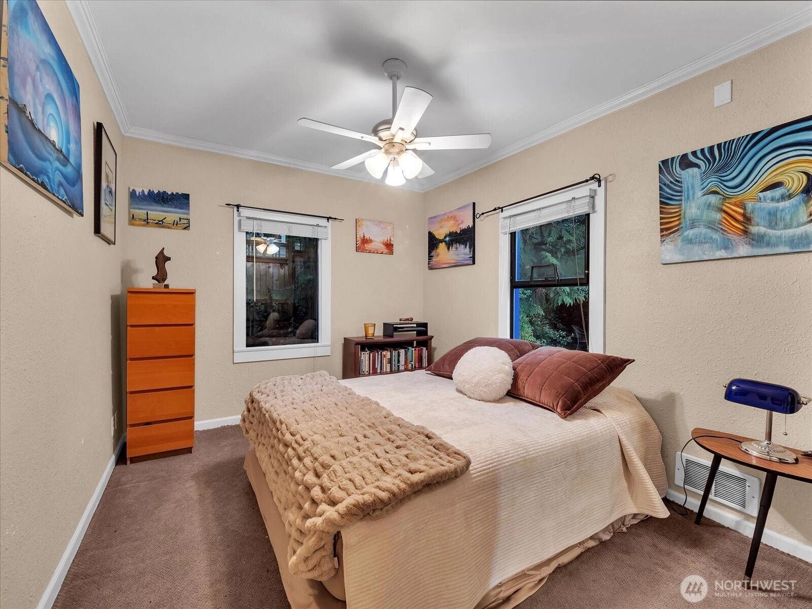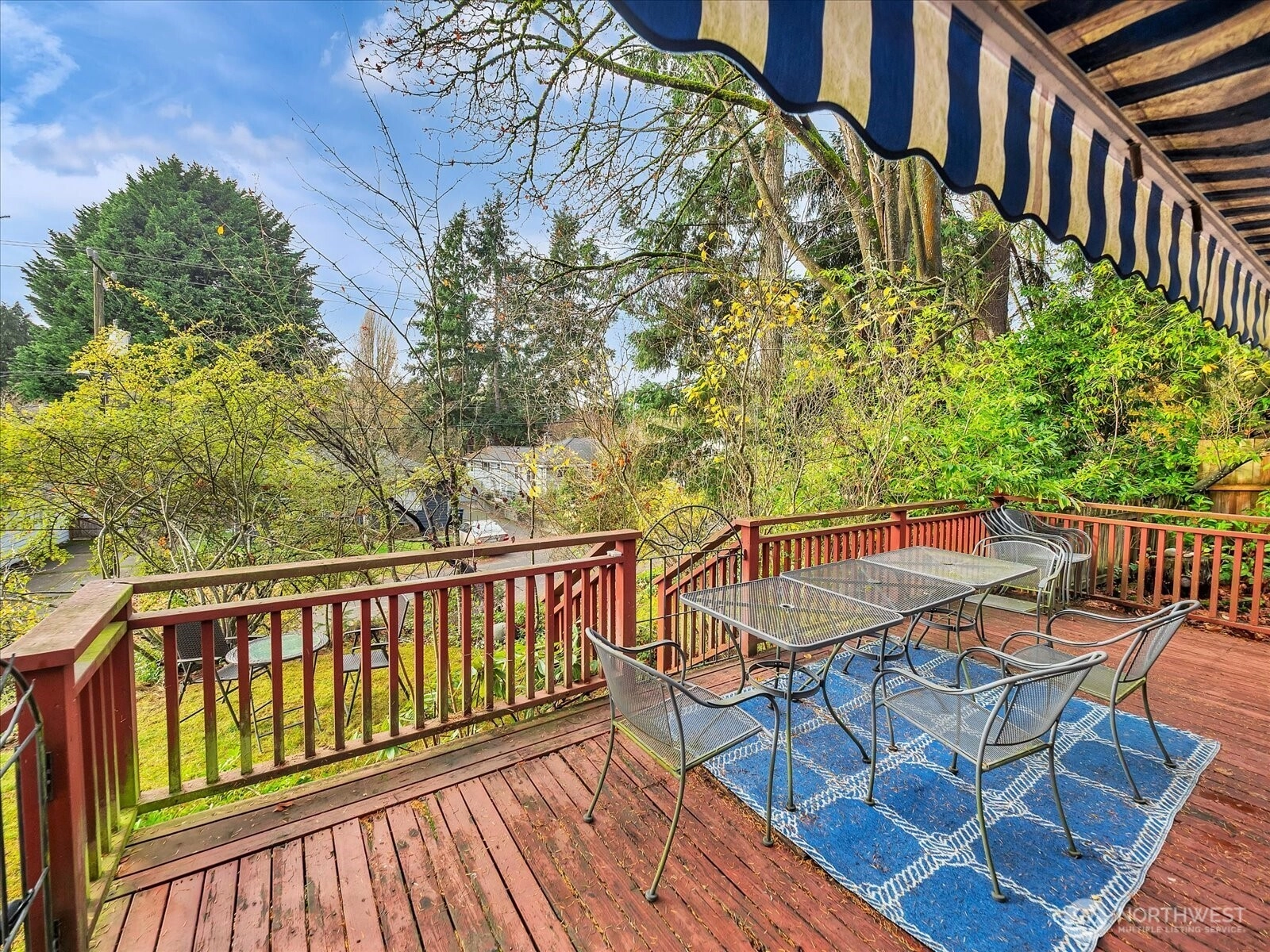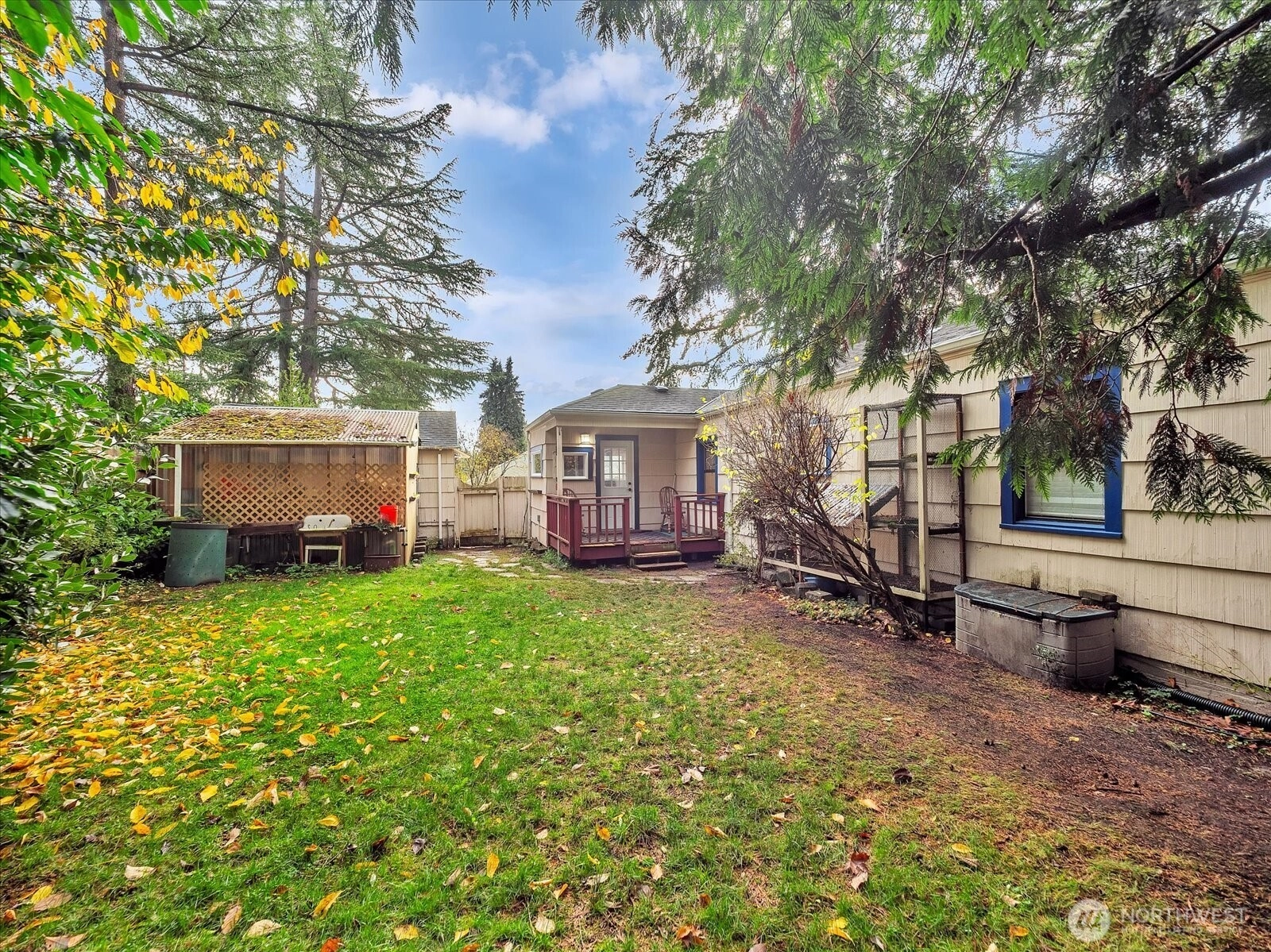 Charming home in the desirable neighborhood of Victory Heights! This uniquely located bungalow is tucked away from the road and surrounded by mature plants and trees. Enjoy views of Thornton Creek Ravine from the deck and windows. The flat backyard is ideal for entertaining, pets, and play. This commuter-friendly location is only a short drive to Green Lake, dining, and shopping. Inside, you will find a cozy, new gas fireplace, a chef's kitchen that shines with a custom pantry, & a built-in dining table with bench seating — perfect for everyday meals or hosting. Generous parking includes a detached garage plus driveway space. This is a fantastic opportunity for builders, investors, first-time homebuyers, or those looking to downsize.