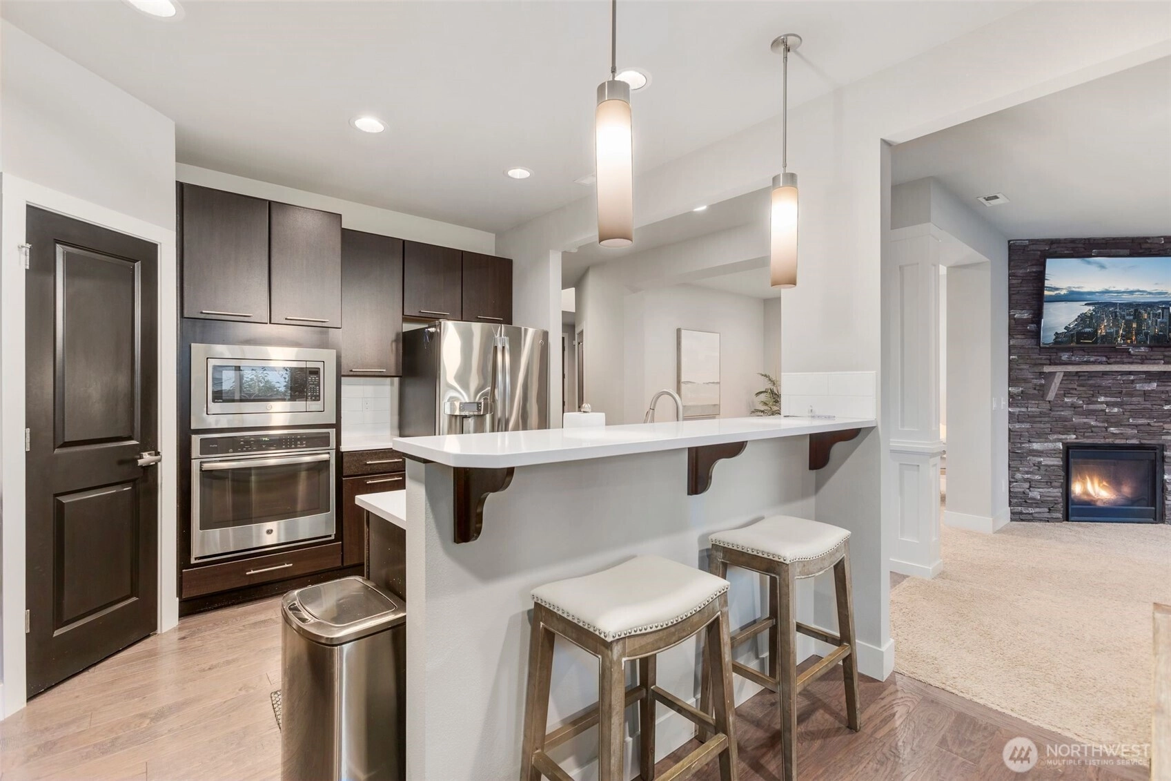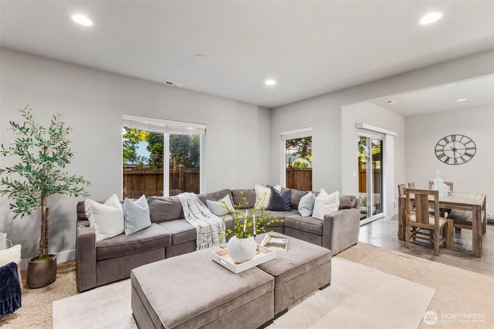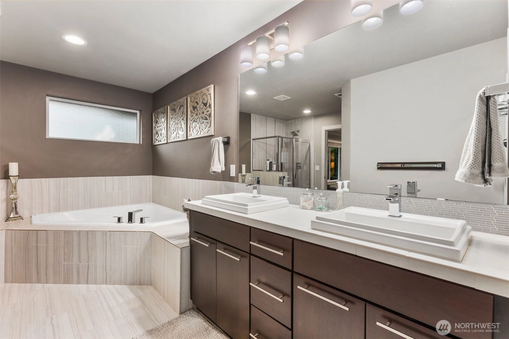 Refined, elegant living calls you into this quiet 2-story home in North Creek. This perfect home offers 4 beds, 3 baths, and 2,570 square feet of comfortable living space. This one owner, 2015 build features quartz countertops, hardwood floors, AC, security system, fresh interior paint, new garage door/motor/track, and more! Open-concept first floor w high ceilings, spacious living and dining areas perfect for entertaining. Downstairs den/office for WFH! Upstairs bedrooms are generously sized and the relaxing primary suite includes a 5 piece bath and an additional flex space. New turf yard! Five mins from Thrashers Corner, restaurants, transit, and WALK TO THE PARK! Nationally Accredited Northshore SD with desirable North Creek High School!