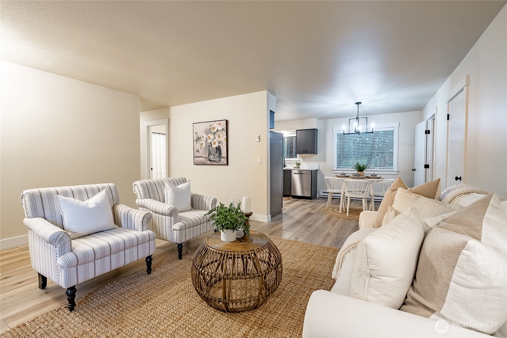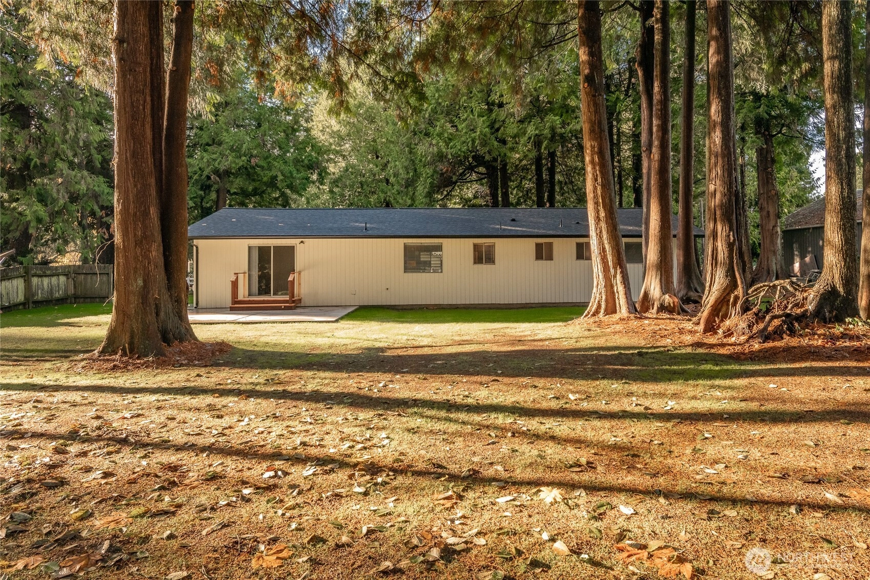 Beautifully restored 3BD/2BA rambler situated on a large park-like lot with mature cedar trees and room for your future shop. This home features a spacious primary bedroom and 3/4 bath, along with 2 additional bedrooms and a full bath. The updated kitchen includes new cabinets, granite counters, SS appliances and opens to the dining and living room. A bonus living space off the kitchen connects the attached 2-car garage and the backyard which features a new concrete patio, perfect for outdoor entertaining. Additional upgrades include new flooring, fresh paint inside and out, updated bathrooms, new insulation, and a new roof. Located on a quiet dead-end street just minutes from I-5, shopping, and dining. Move-in ready!