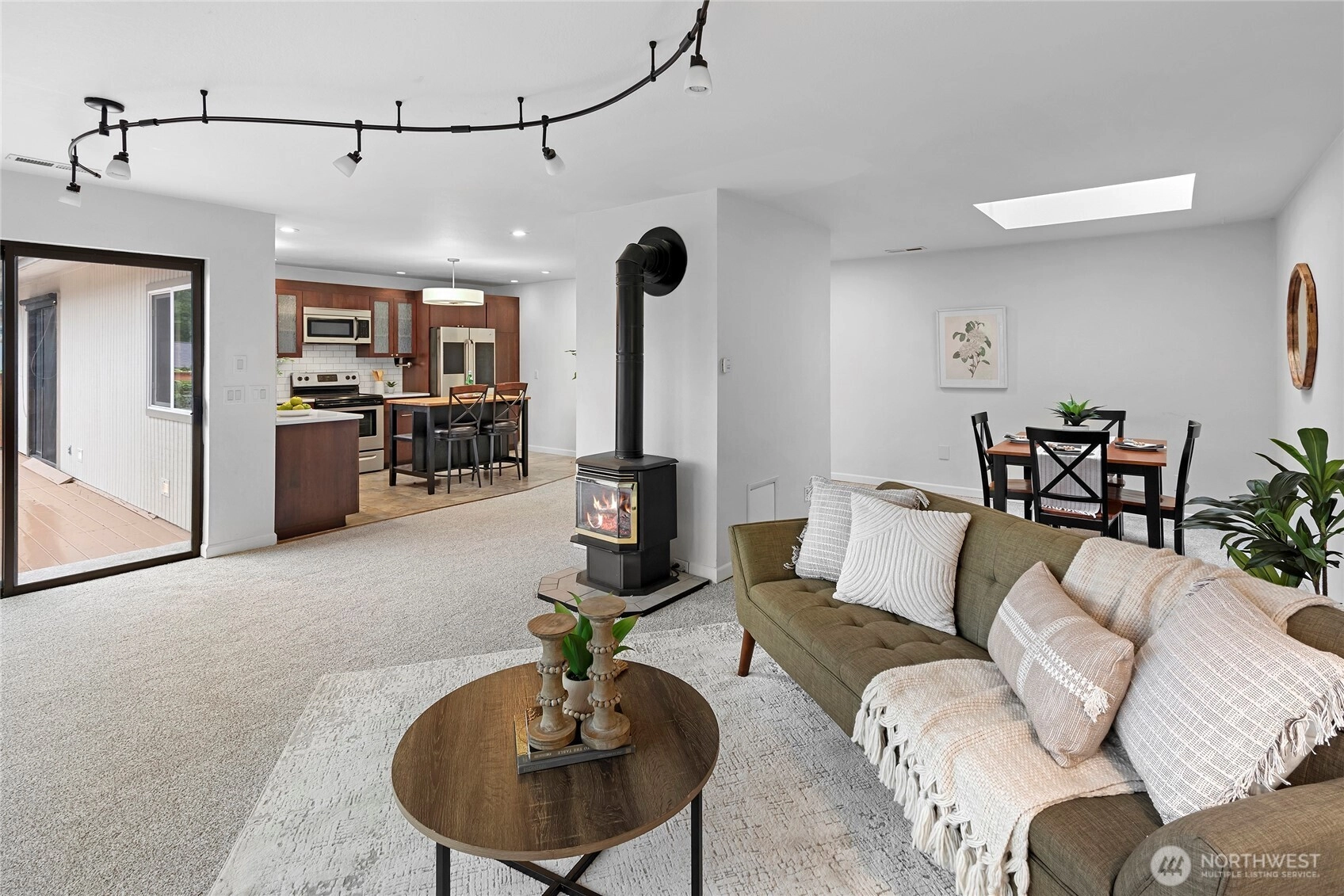 Enjoy sweeping Olympic Mountain sunsets from this light-filled Bremerton view home offering exceptional flexibility and space. The main level features a spacious family room with gas fireplace, bright kitchen with eating nook, and two primary suites ideal for guests or multigenerational living. Downstairs, you'll find a full kitchen with separate entry, large rec room with gas fireplace, two bedrooms, full bath, laundry, and private walk-out patio to back yard. Outside, relax in a beautifully landscaped and private backyard with play space, zip line, natural woods, and wide western views. Located on a quiet street close to Illahee Preserve trails, shopping, schools, and the Bremerton Ferry, with ample storage and off-street parking. No HOA.