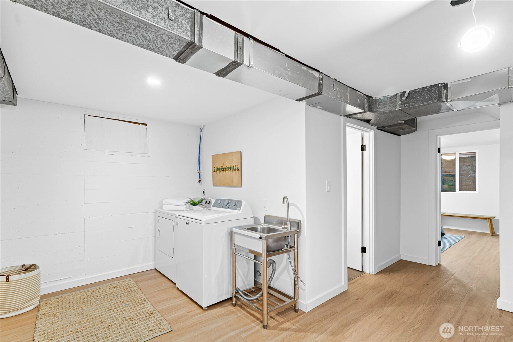 Stylishly refreshed and move-in-ready Victory Heights mid-century home situated on the higher side of a quiet street that spans only 1 block. Brand new kitchen with flat-panel oak grain cabinets, quartz counters, custom tile work and stainless steel appliances. Brand new designer bathrooms. fresh paint, refinished hardwood floors and new hard-surface flooring. Distinct living, dining and kitchen areas flow seamlessly together. Three bedrooms on the main level plus a lower-level bedroom and rec room (optional 5th bedroom). Stay cozy with forced-air heat and new furnace with heat pump A/C. New electrical service. Spacious backyard and large deck overlooking sunrise. Attached one-car garage. Easy access to freeways, Northgate and DT Seattle.