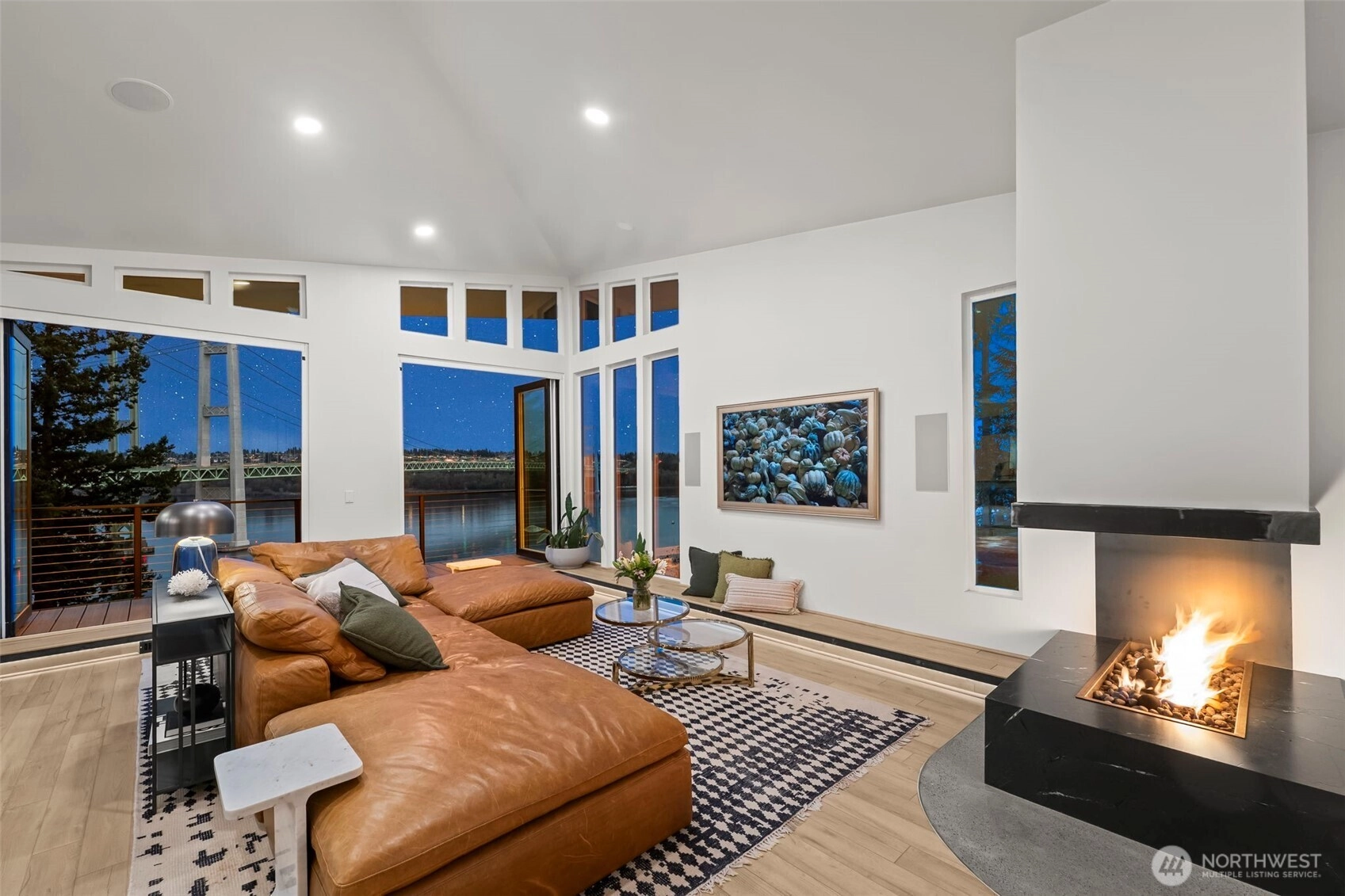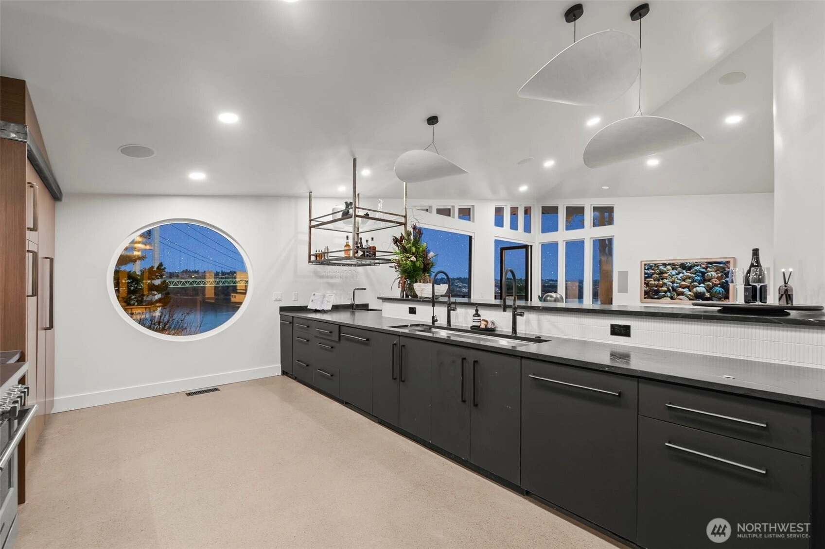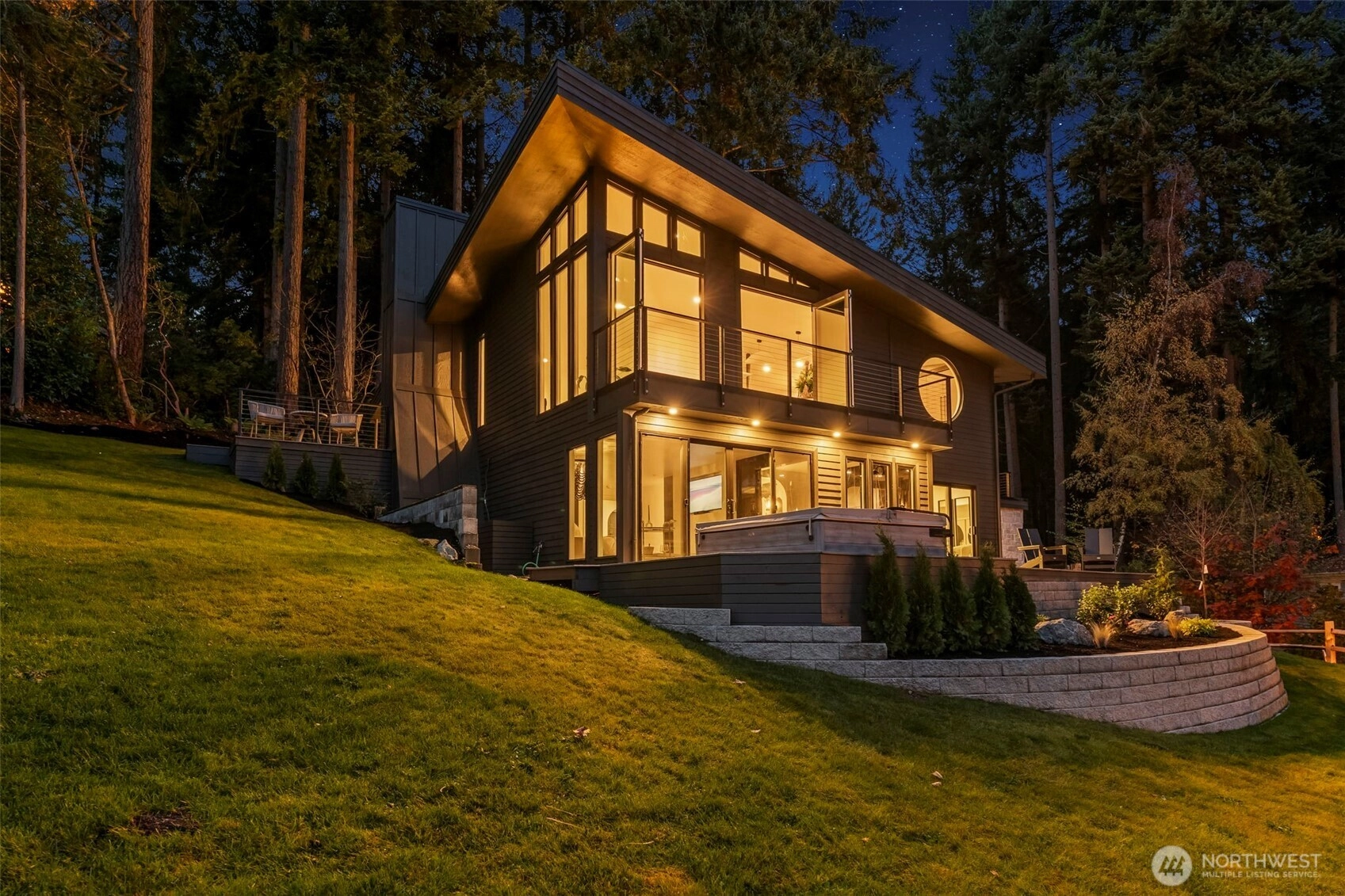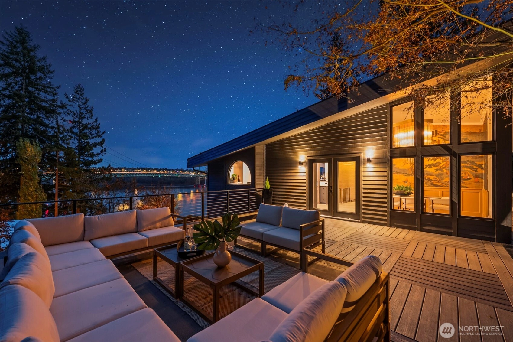 Perched above the Tacoma Narrows, this elemental Mid-Century Modern masterpiece offers sweeping views of the Narrows Bridge and Mount Rainier from every room. Set on over an acre of pristine waterfront, the 2-bedroom, 2.5-bath home marries serene, sculptural design with high-end finishes. Multiple decks create effortless indoor-outdoor flow, while the chef’s kitchen with Fisher & Paykel appliances and leather-honed granite elevates culinary life to an art form. An attached two-car garage and a striking laundry room with dual washers and dryers complete this exceptional, thoughtfully reimagined retreat.