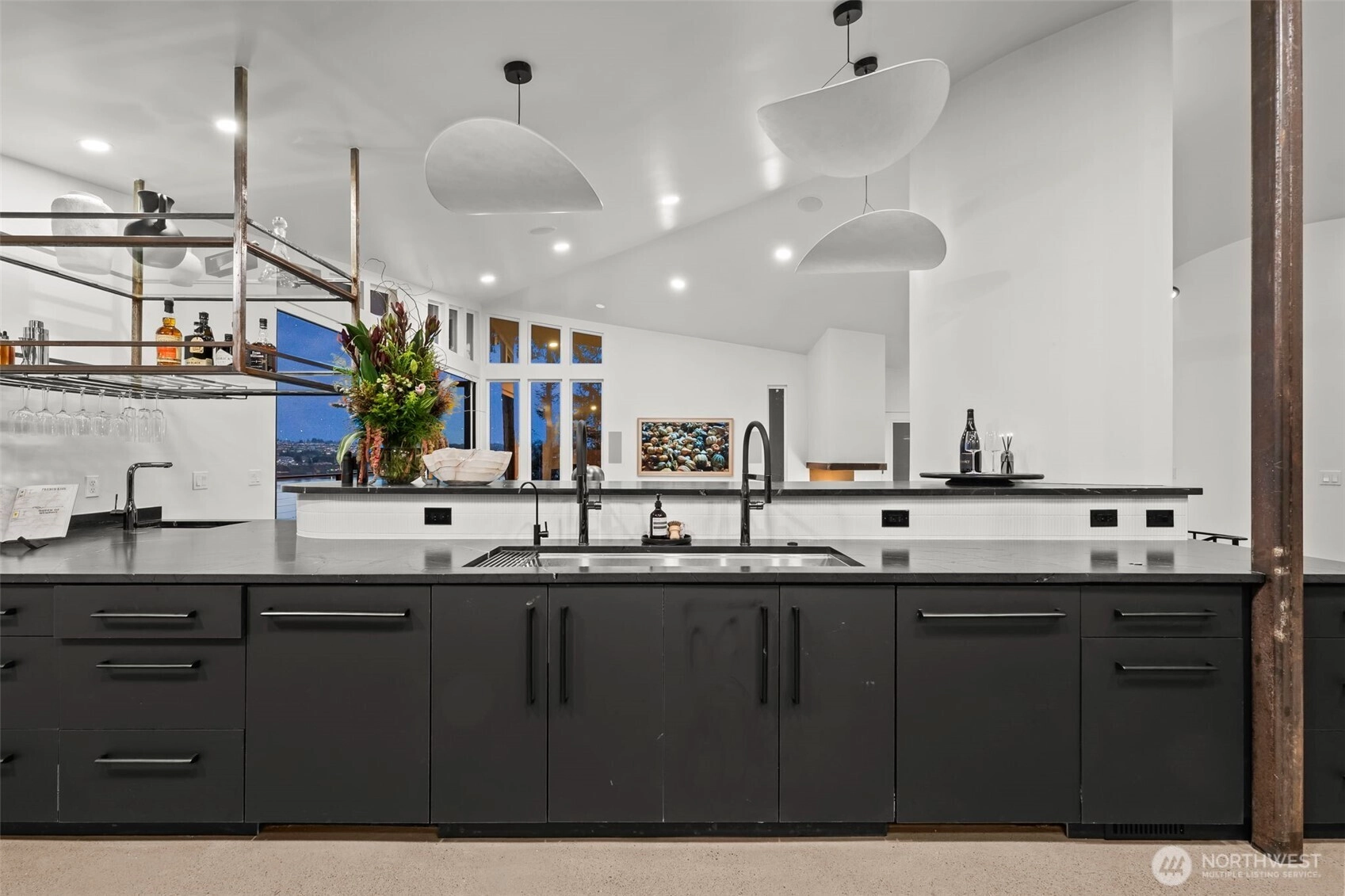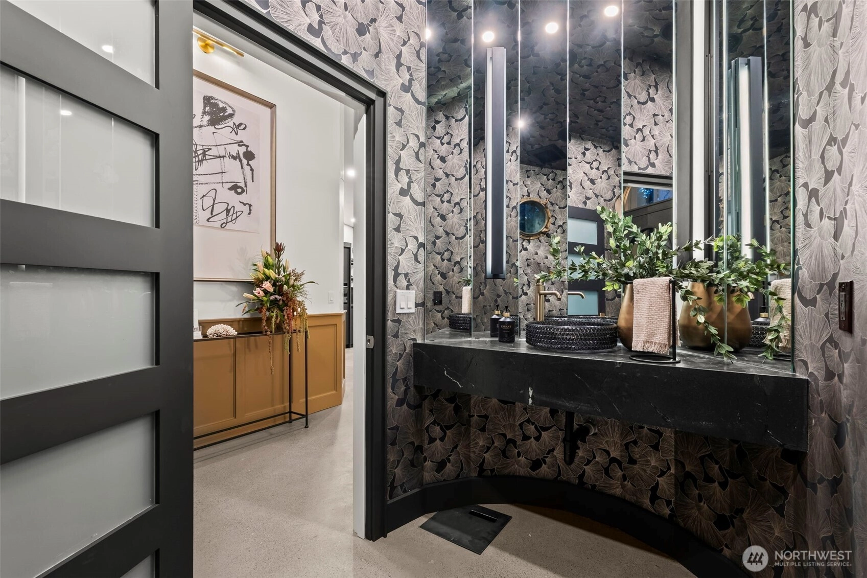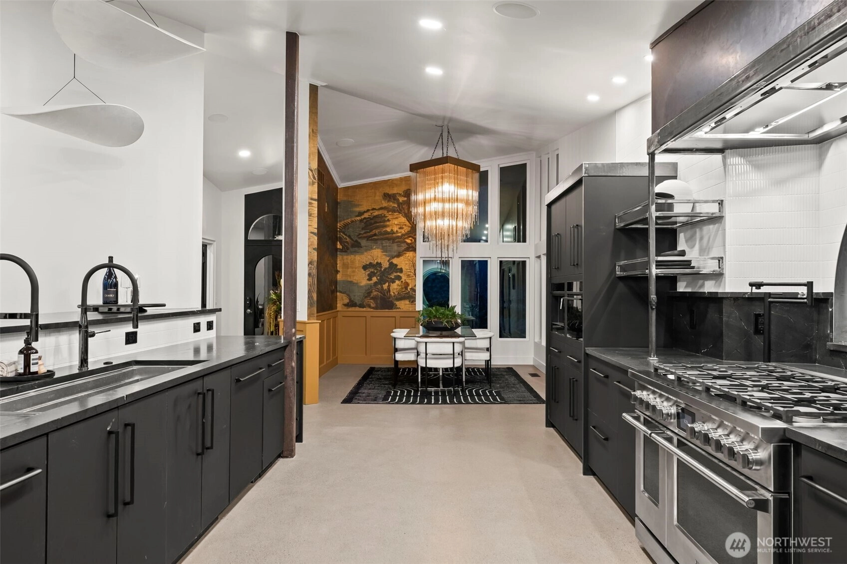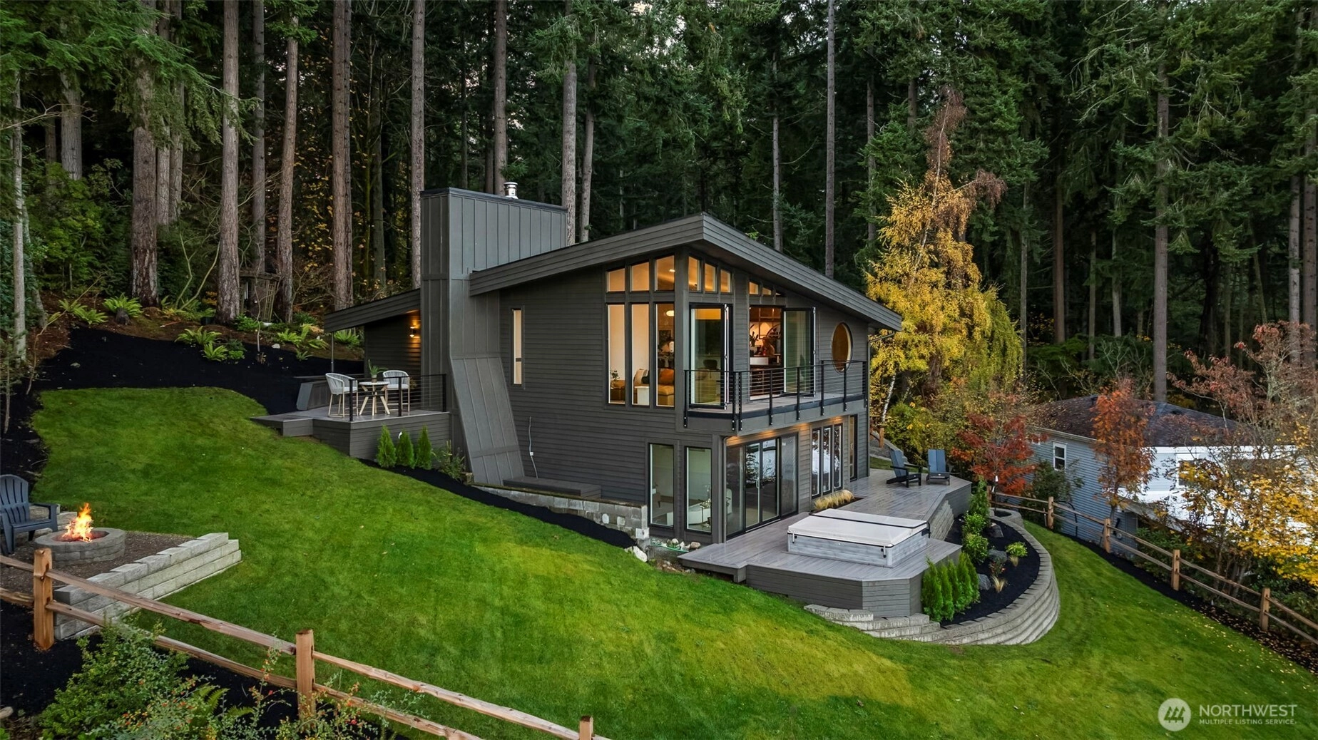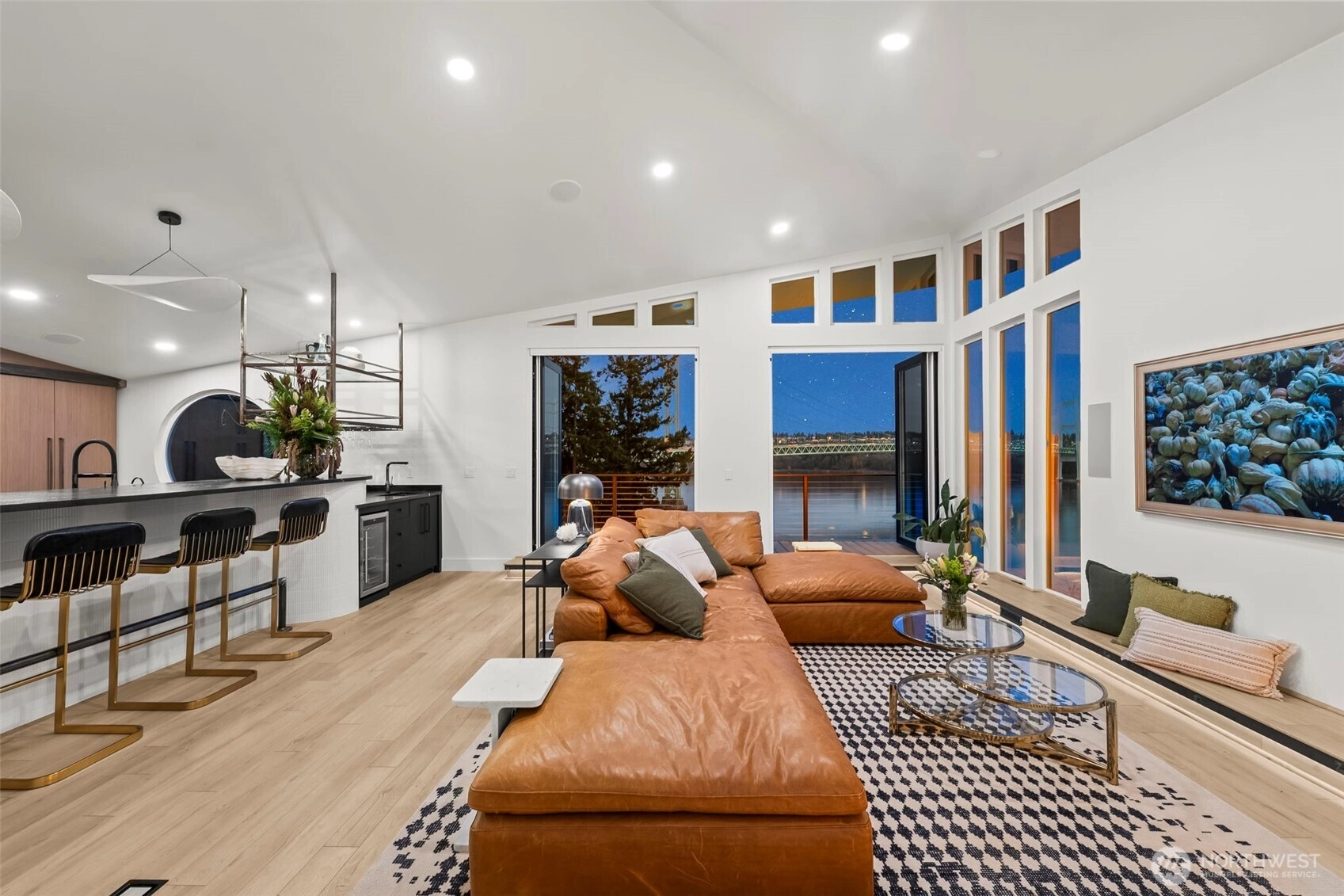 Perched above the Tacoma Narrows, this elemental Mid-Century Modern masterpiece offers sweeping views of the Narrows Bridge and Mount Rainier from every room. Set on over an acre of pristine waterfront, the 2-bedroom, 2.5-bath home marries serene, sculptural design with high-end finishes. Multiple decks create effortless indoor-outdoor flow, while the chef’s kitchen with Fisher & Paykel appliances and leather-honed granite elevates culinary life to an art form. An attached two-car garage and a striking laundry room with dual washers and dryers complete this exceptional, thoughtfully reimagined retreat.