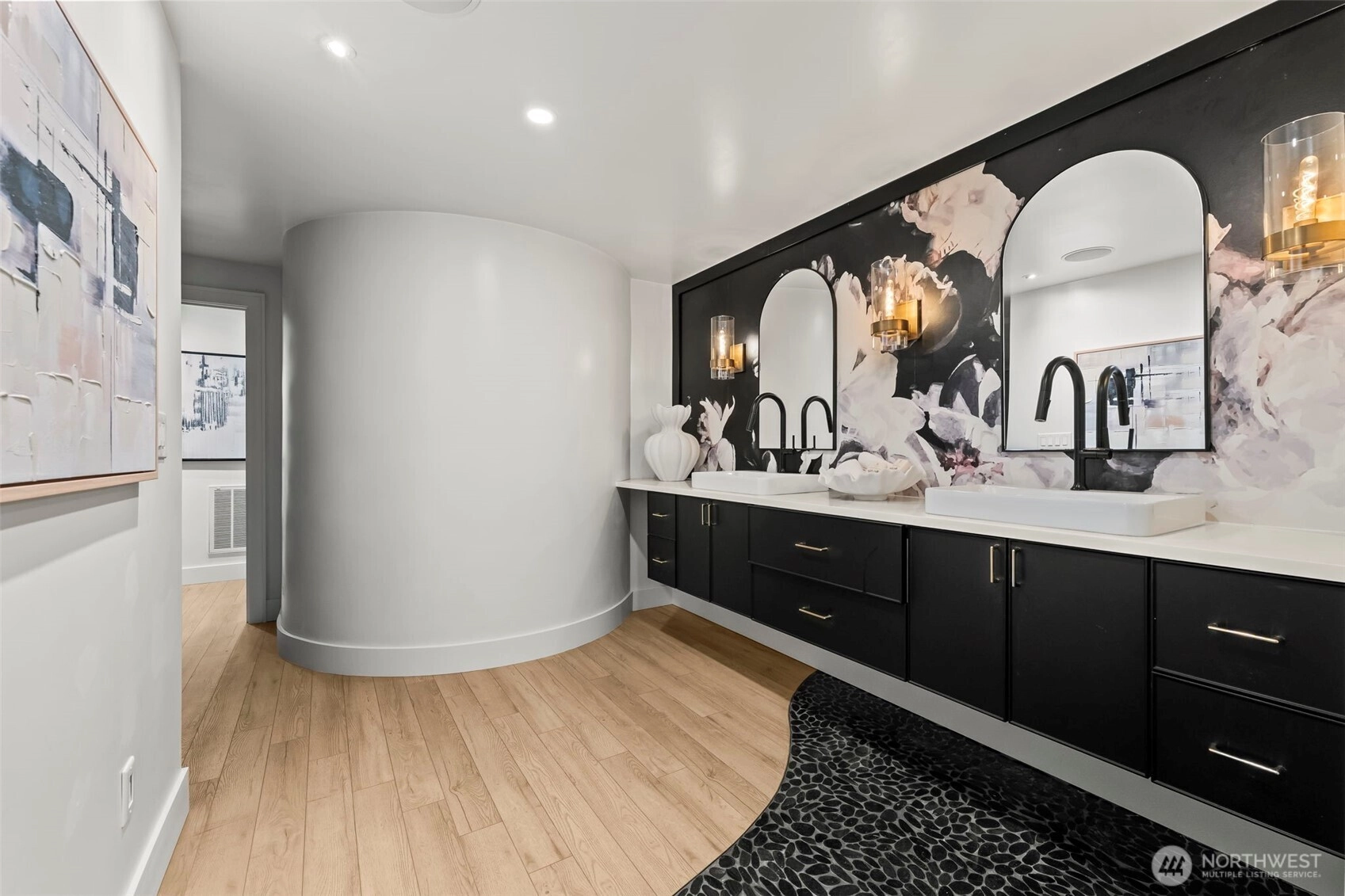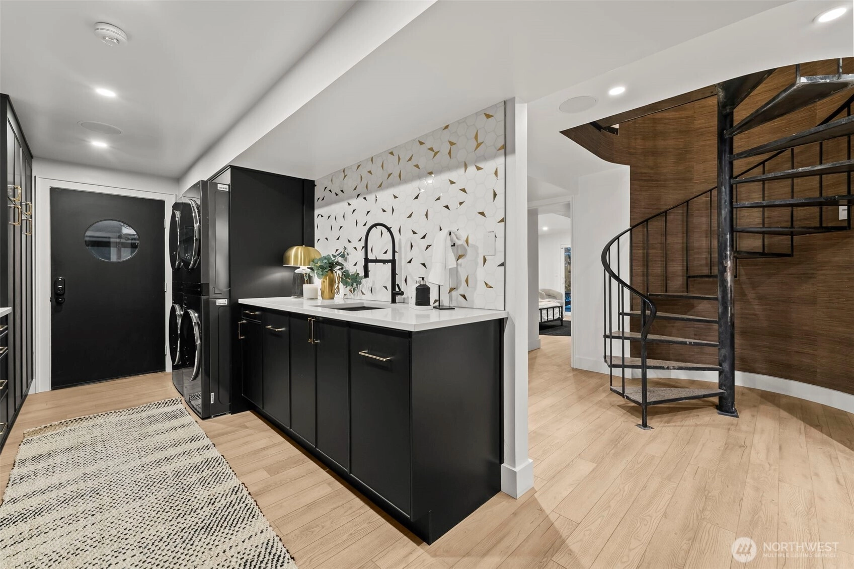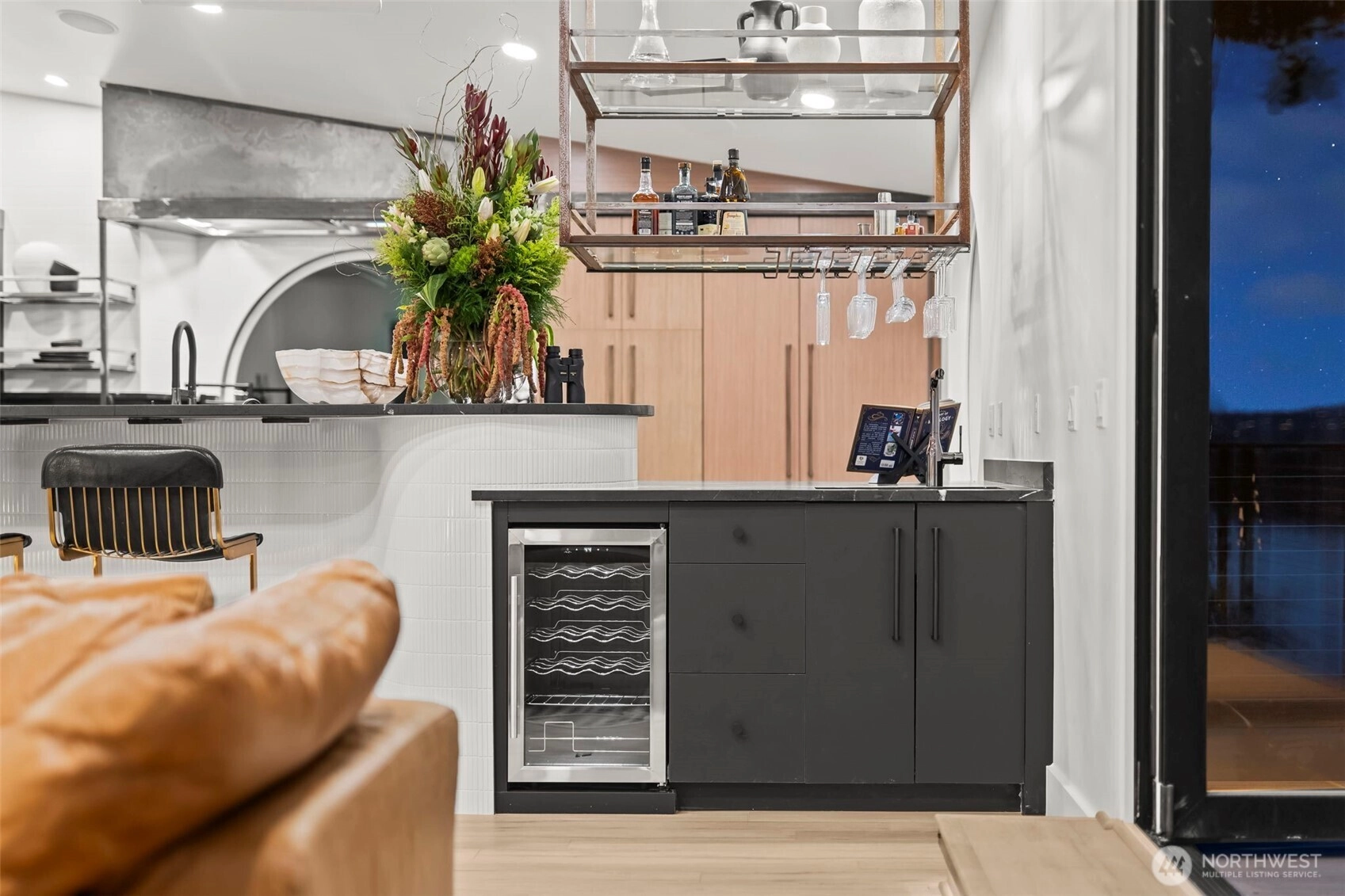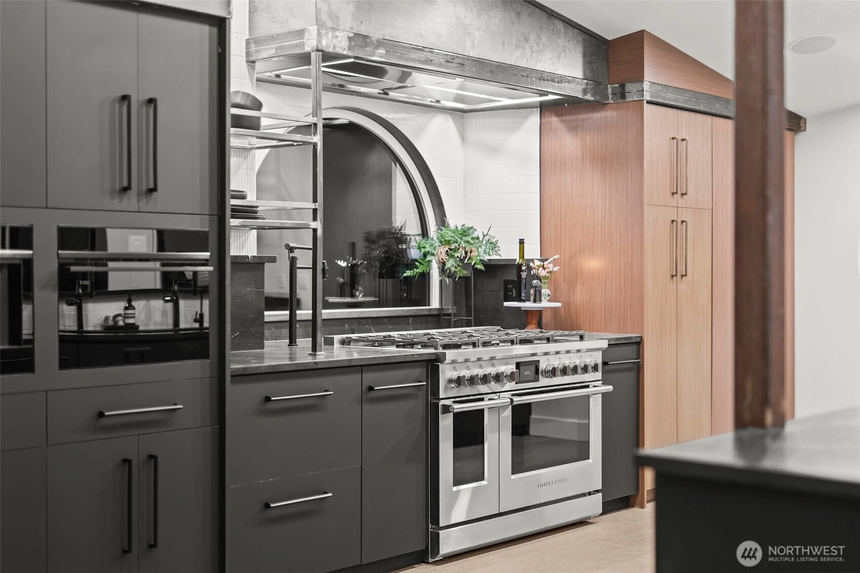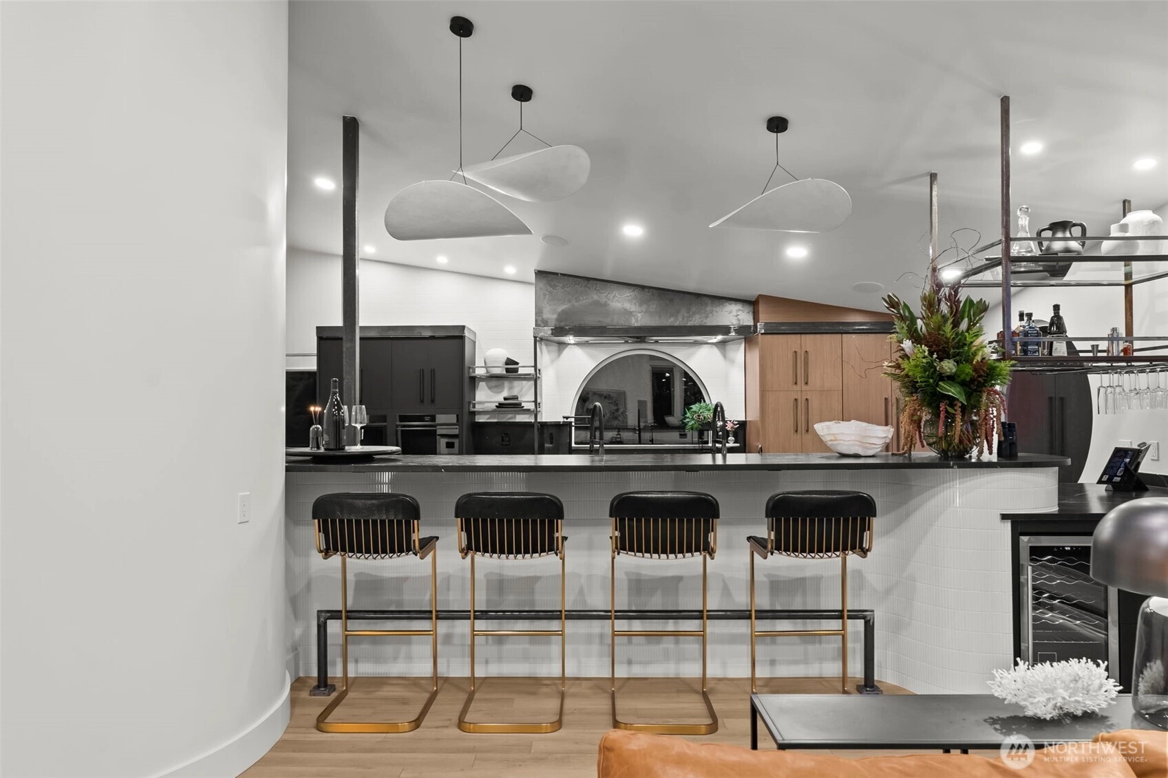 Perched above the Tacoma Narrows, this elemental Mid-Century Modern masterpiece offers sweeping views of the Narrows Bridge and Mount Rainier from every room. Set on over an acre of pristine waterfront, the 2-bedroom, 2.5-bath home marries serene, sculptural design with high-end finishes. Multiple decks create effortless indoor-outdoor flow, while the chef’s kitchen with Fisher & Paykel appliances and leather-honed granite elevates culinary life to an art form. An attached two-car garage and a striking laundry room with dual washers and dryers complete this exceptional, thoughtfully reimagined retreat.