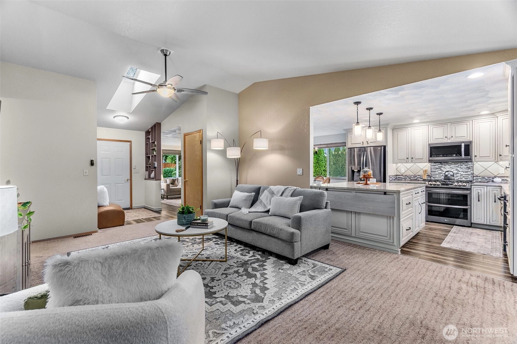 Capture the charm of single-story living in this thoughtfully UPDATED home set on a peaceful .3-acre lot in Tumwater’s Parkridge! Manicured grounds & stunning curb appeal set the tone, while inside, a fabulous chef’s kitchen steals the show with custom cabinetry, quartz counters, ss appliances & contemporary lighting—open to dining, living & family rooms for effortless flow. A screened sunroom off the kitchen, provides the perfect covered spot for summer buffets & easy indoor-outdoor entertaining. Step onto the expansive deck w/hot tub & gazebo or retreat to the serene primary suite w/ LUXE full-tile, walk-in shower, dual closets & direct hot tub access! All the features you love in a space designed to be beautifully manageable & inviting!