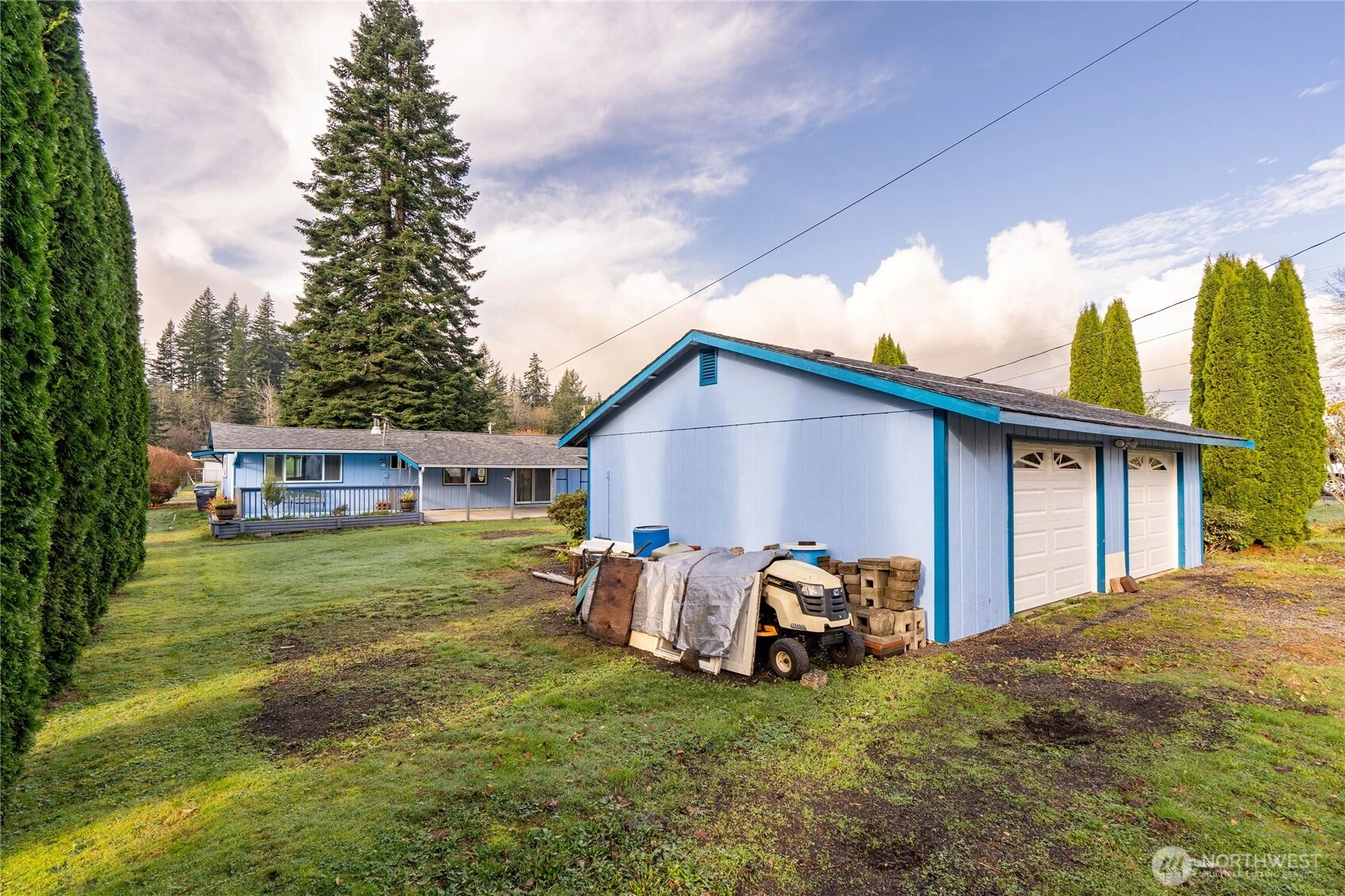 Welcome to this charming one-story, 4-bedroom home, perfectly situated on a level corner lot in a desirable in-town location—just minutes from the school, parks, and everyday amenities. Featuring 1.75 bath and two spacious living areas, including a cozy wood-burning free-standing stove, this home is perfect for relaxing or entertaining. Recent updates include a new roof and gutters installed in 2024, along with fresh exterior paint. Step outside to a covered concrete patio and deck, offering multiple outdoor spaces to enjoy. The detached 2-car garage provides ample storage and workspace. Well-maintained and move-in ready, this home combines comfort, convenience, and timeless charm—an opportunity you won’t want to miss!