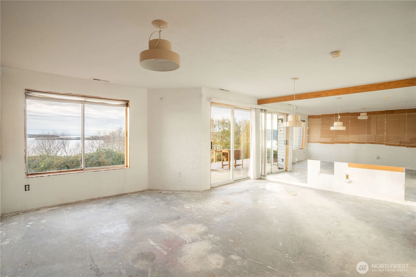 Build equity & create your dream home while you enjoy STUNNING WATER VIEWS from this FRONT ROW nearly 1600 sq. ft. condo. Facing southwest, staring across Drayton Harbor & with no obstructions, this 3-level condo is a blank canvas, ready for your interior cosmetic remodel & pesonalizations. The main level features an open kitchen / liv. room layout, 1/2-bath w/full size laundry, attached 1-car garage & view balcony. Upstairs you have the view-facing Primary BR w/en suite full bath + a guest BR w/its own 3/4 bath. Rec room or 3rd BR downstairs. The entire complex will be re-sided with Hardiplank in 2027, adding massively to the quality of this complex. NO RENTAL CAP! Use it for yourself or hold & rent until your retirement years. Sold as-is.