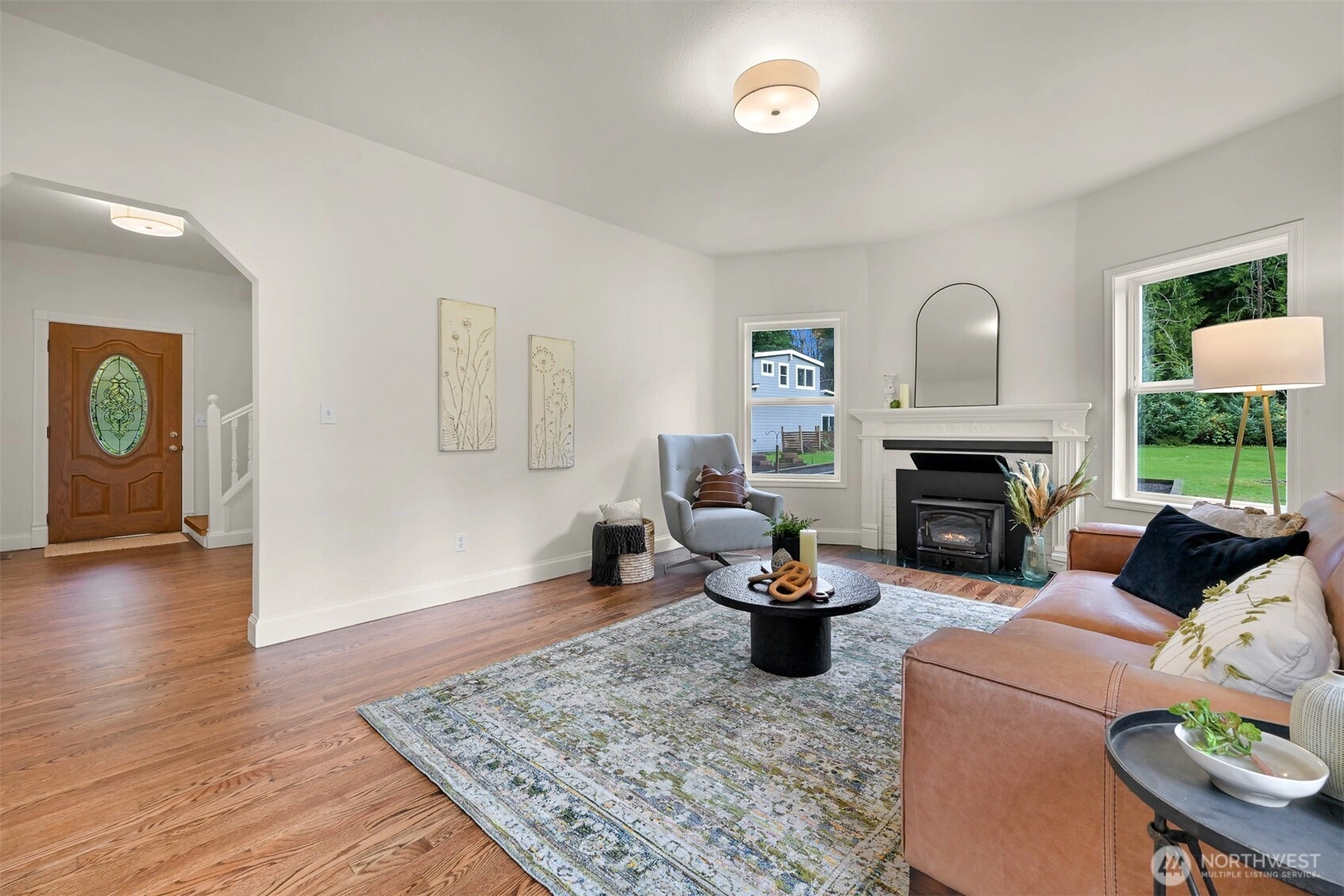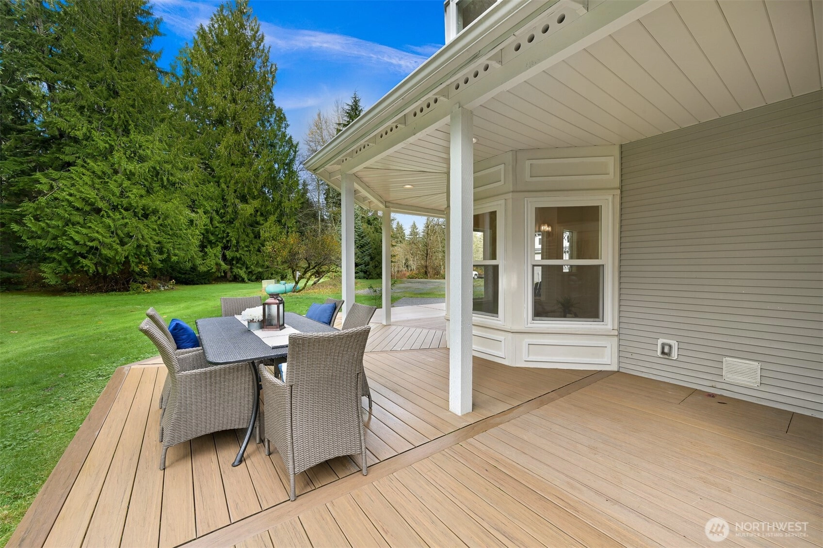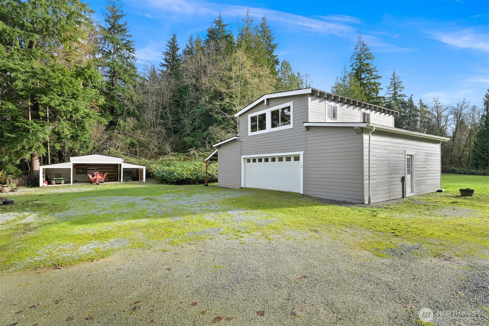 Nestled on a tranquil 6-acre property this home offers privacy and close proximity to Bellingham, Bow and Burlington. Enjoy the warmth of a fireplace in the family room and the elegance of hardwood floors throughout. Formal living room and dining room. Main floor laundry and half bath. The spacious kitchen has a dining nook with French doors leading out to wraparound deck. Upstairs find the spacious primary suite with a jetted tub. 2 bedrooms (one with a fireplace) + full guest bath. The property features a functional workshop with 220V and a loft, perfect for projects or storage, a two-car garage and additional shed for extra convenience. Outdoor enthusiasts will appreciate the raised garden beds and the soothing presence of Friday Creek.