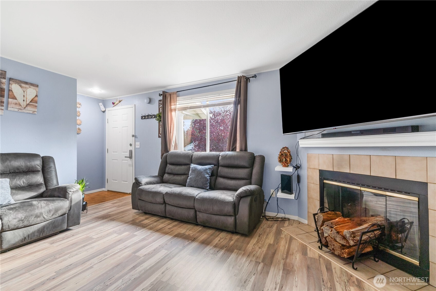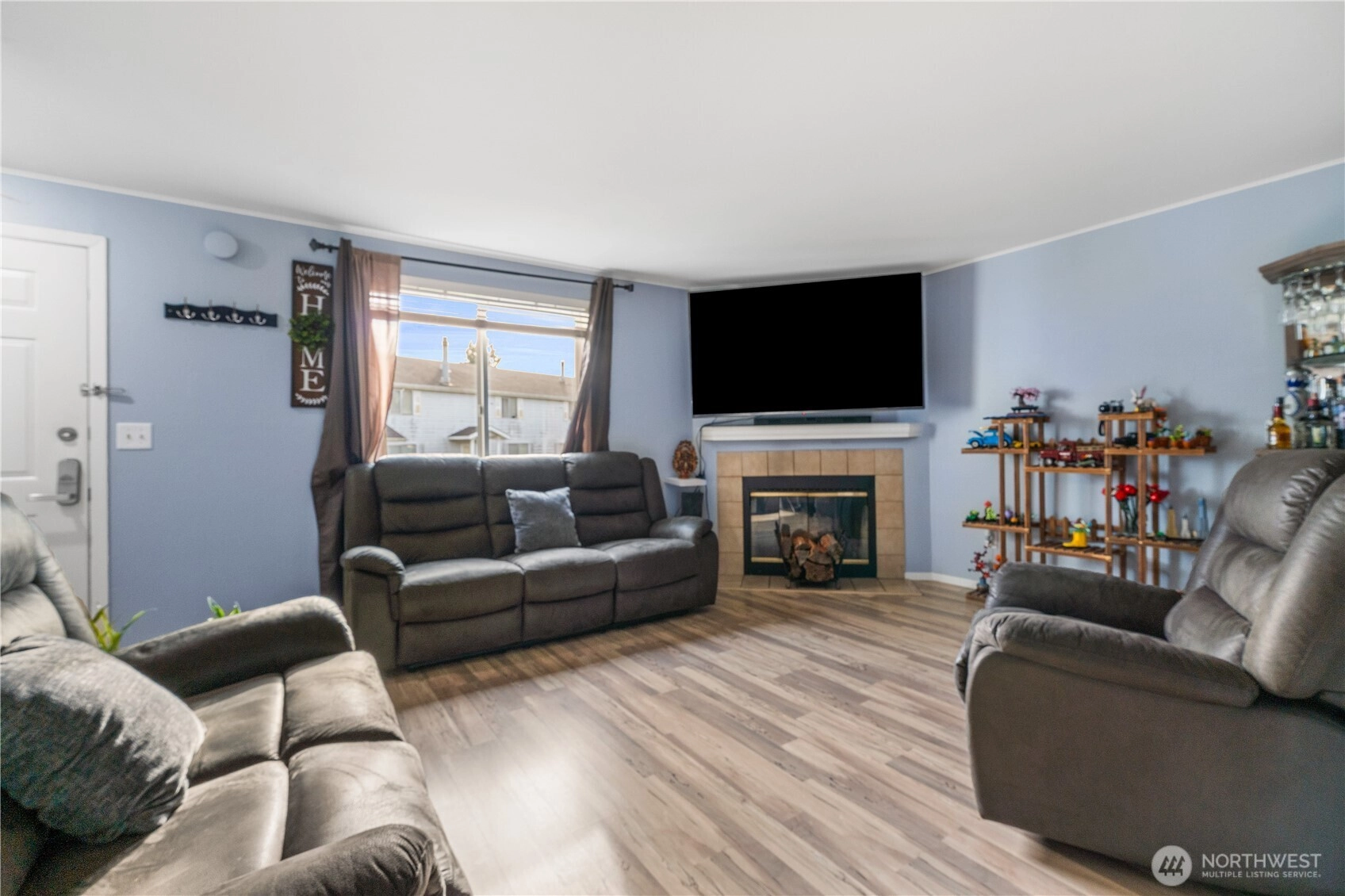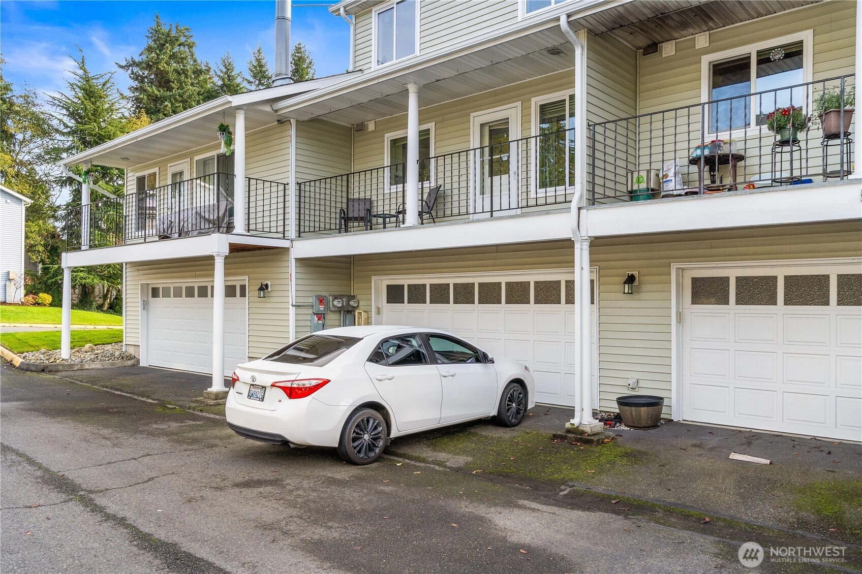 Beautiful and well maintained multilevel townhouse condo style, all three bedrooms and full bathroom are located in the upper level. Open kitchen concept and dining room with rear facing small balcony, living room with a wood burning fireplace, and half bathroom are located in the main level.The lower level has two big space garage for 2or 3 cars. New floor, new interior paint, HOA replaced siding in 2023, kitchen appliances has a few year old as well the carpet. Stairs and upper level has carpet, main level new vinyl floor, roof was replaced in 2007.Transit center and upcoming light rail station, shopping center and lots of restaurants , Common Mall, and two public libraries all nearby.