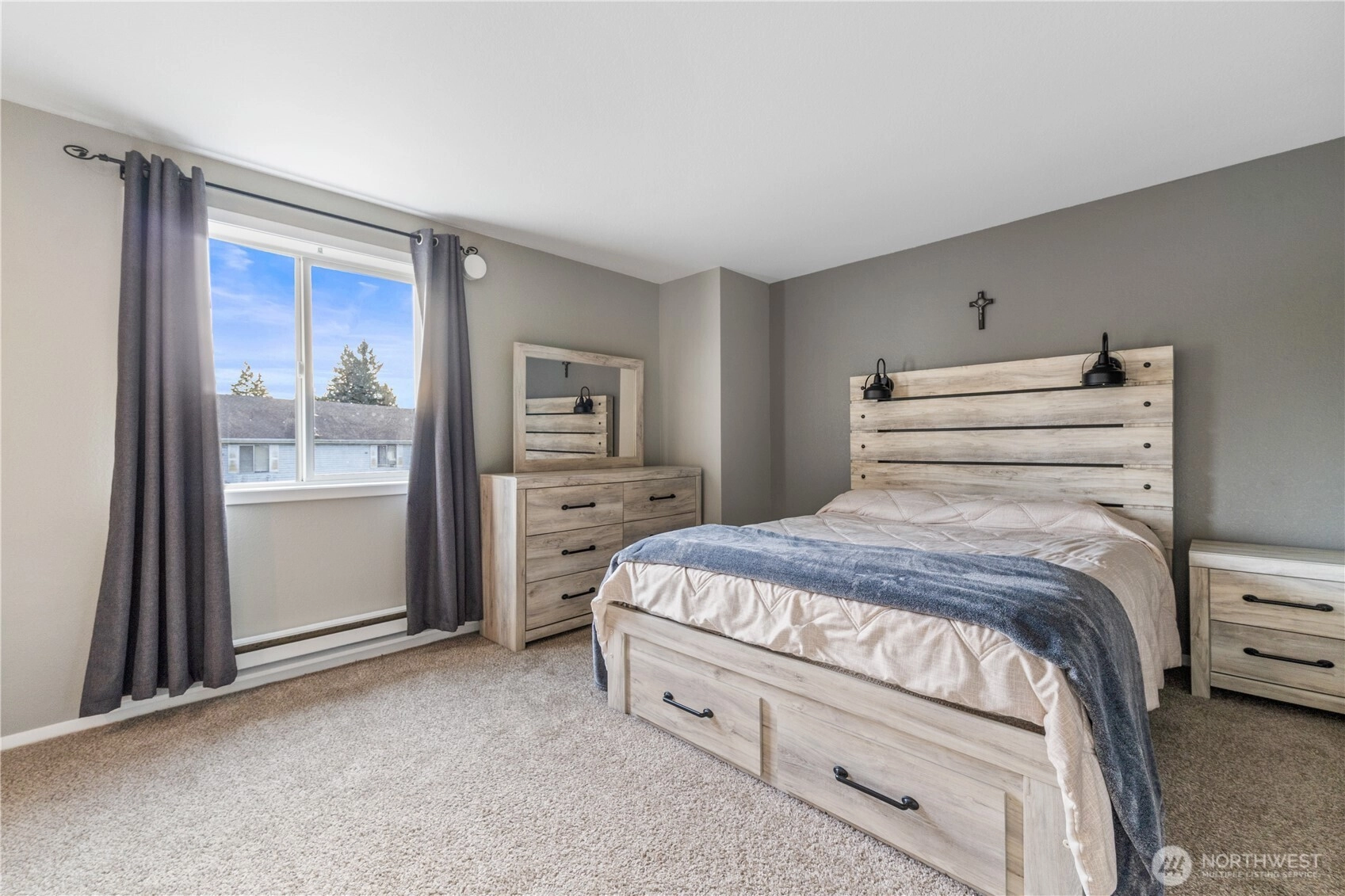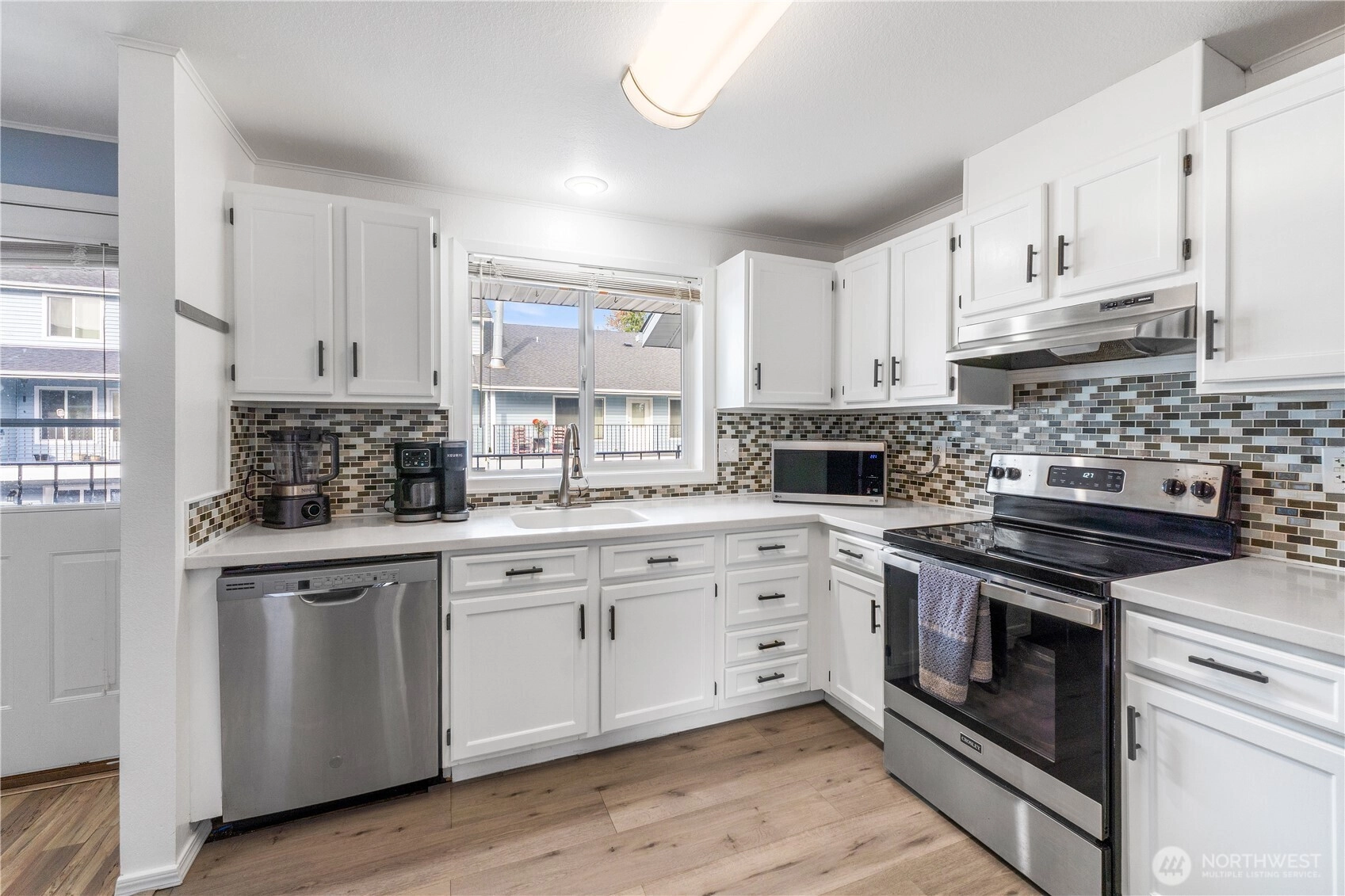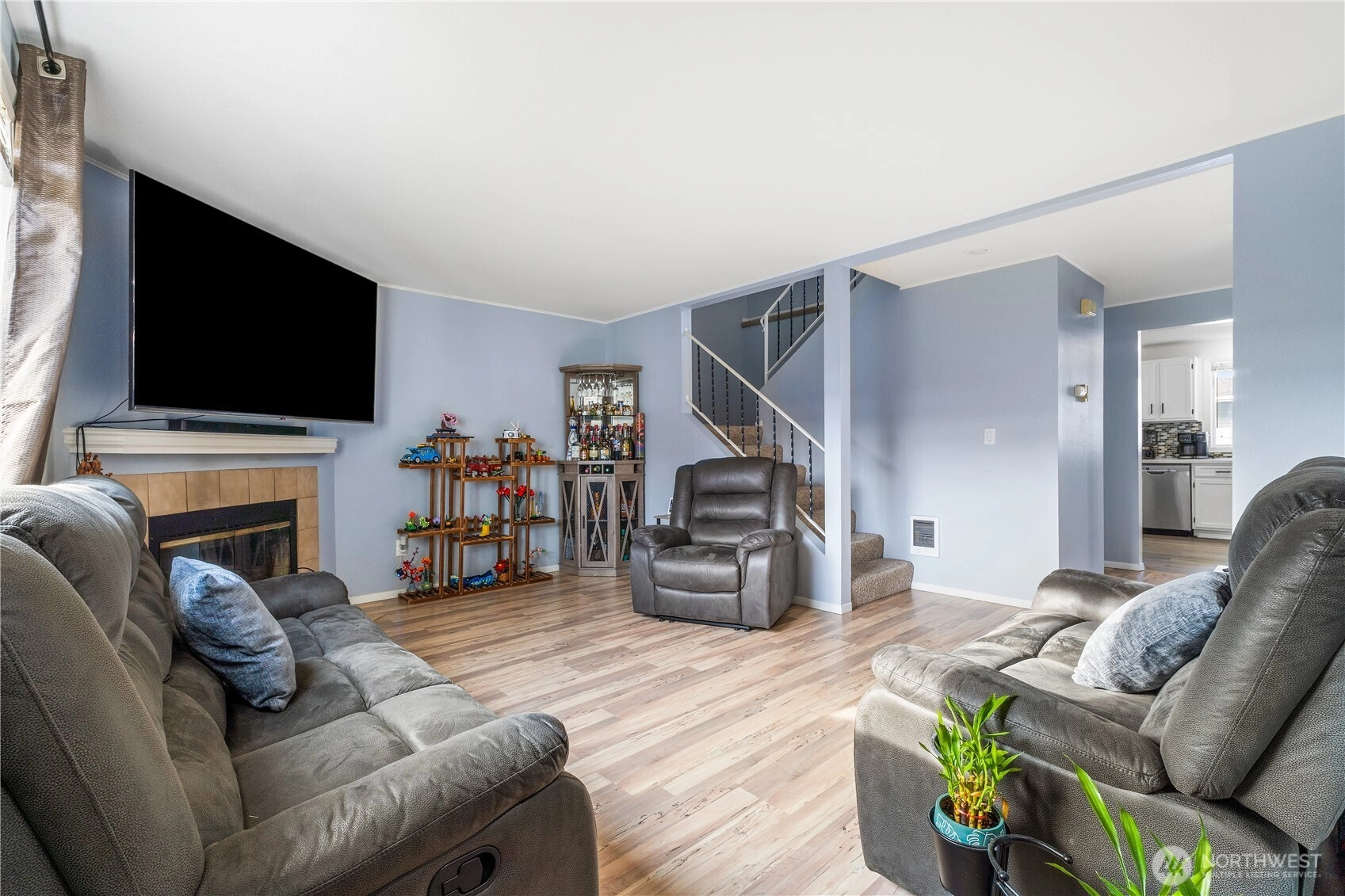 Beautiful and well maintained multilevel townhouse condo style, all three bedrooms and full bathroom are located in the upper level. Open kitchen concept and dining room with rear facing small balcony, living room with a wood burning fireplace, and half bathroom are located in the main level.The lower level has two big space garage for 2or 3 cars. New floor, new interior paint, HOA replaced siding in 2023, kitchen appliances has a few year old as well the carpet. Stairs and upper level has carpet, main level new vinyl floor, roof was replaced in 2007.Transit center and upcoming light rail station, shopping center and lots of restaurants , Common Mall, and two public libraries all nearby.