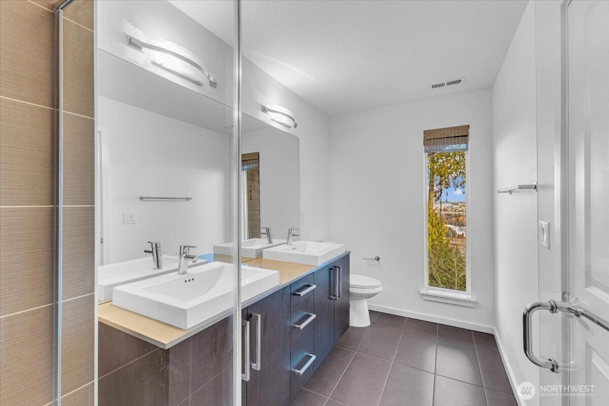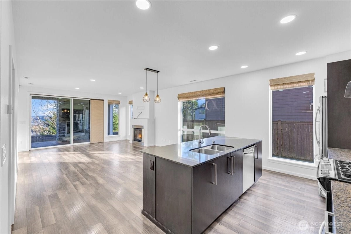 Modern MainVue luxury in sought-after Vista Pointe! Bright spaces, oversized windows, and double 10' x 8' sliders lead to a backyard covered patio with a fireplace, TV hookup, and valley views. Enjoy thoughtful upgrades, including a custom front door, butler’s pantry, super-sized island, granite counters, tile backsplash, Grohe faucets, Euro vessel sinks, designer flooring, and custom blinds. Recently painted, featuring new carpets and lighting, this resale feels like a new construction home! A large primary bedroom on both the main floor and upper floor, perfect for multi-generational living. Enjoy the best of both worlds—privacy with no front or rear neighbors and the warmth of a vibrant community. Access to 18, 167, 99, and shopping.