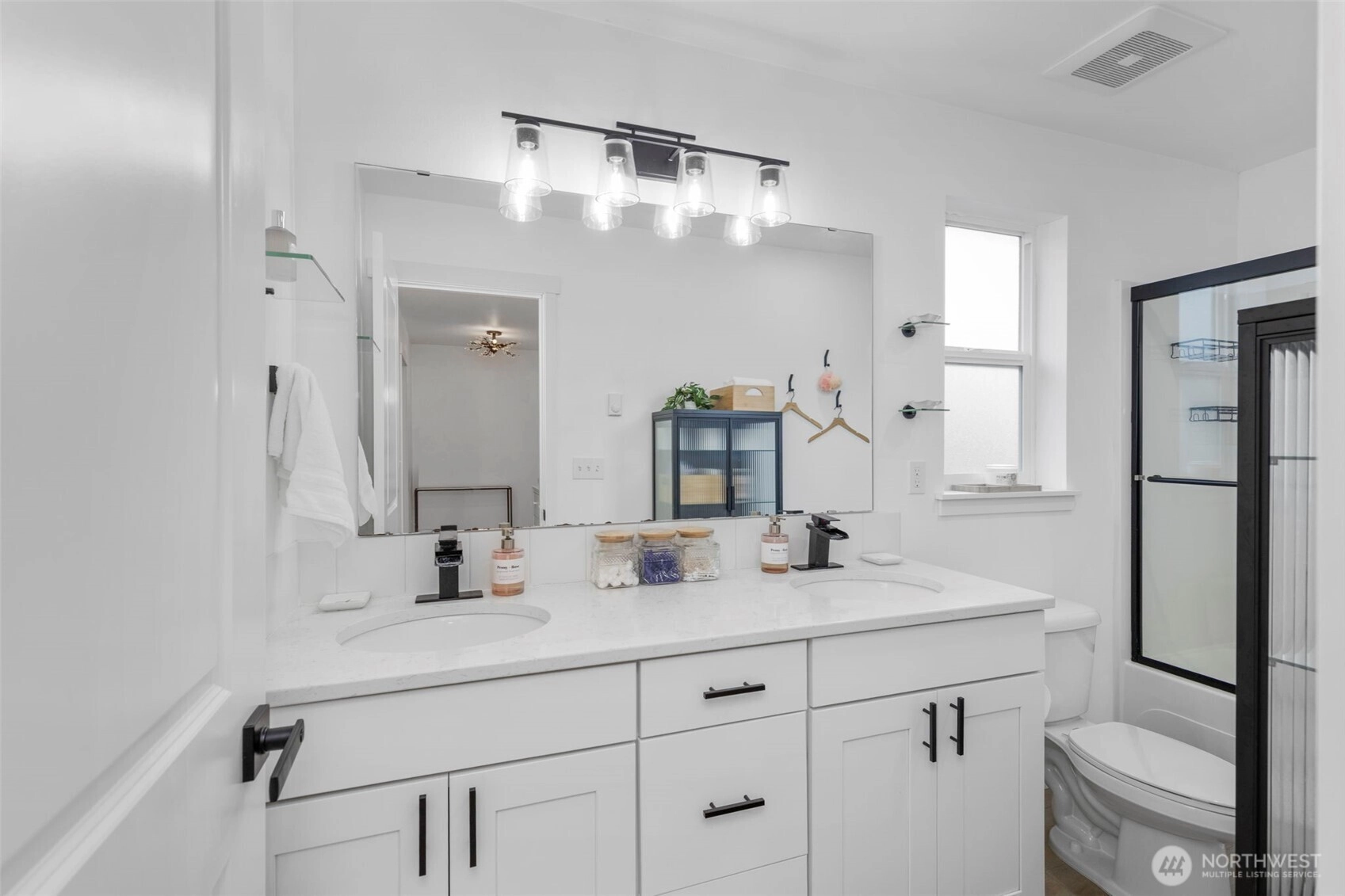 Like-new 2021 build in the heart of Suquamish! This modern farmhouse–inspired home offers 3 bedrooms, 2.25 baths, & 1,664sqft of beautifully designed living. The open-concept main floor features warm laminate plank flooring and a stunning statement fireplace accented with shiplap and a wood mantel. The gorgeous kitchen shines with white cabinetry, quartz countertops, stainless steel appliances, & an easy flow perfect for entertaining. Upstairs, you’ll find the bedrooms, including a spacious primary suite & beautiful ensuite bath. Enjoy the convenience of a one-car garage plus a large yard full of potential—ready for a garden, play space, or outdoor living. Move-in ready and impeccably maintained, this home is a must-see!