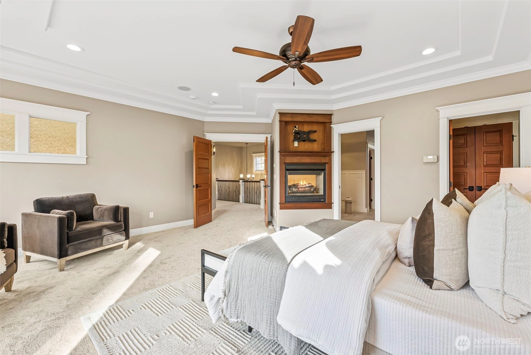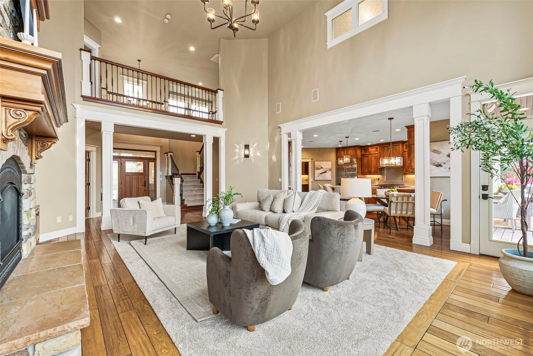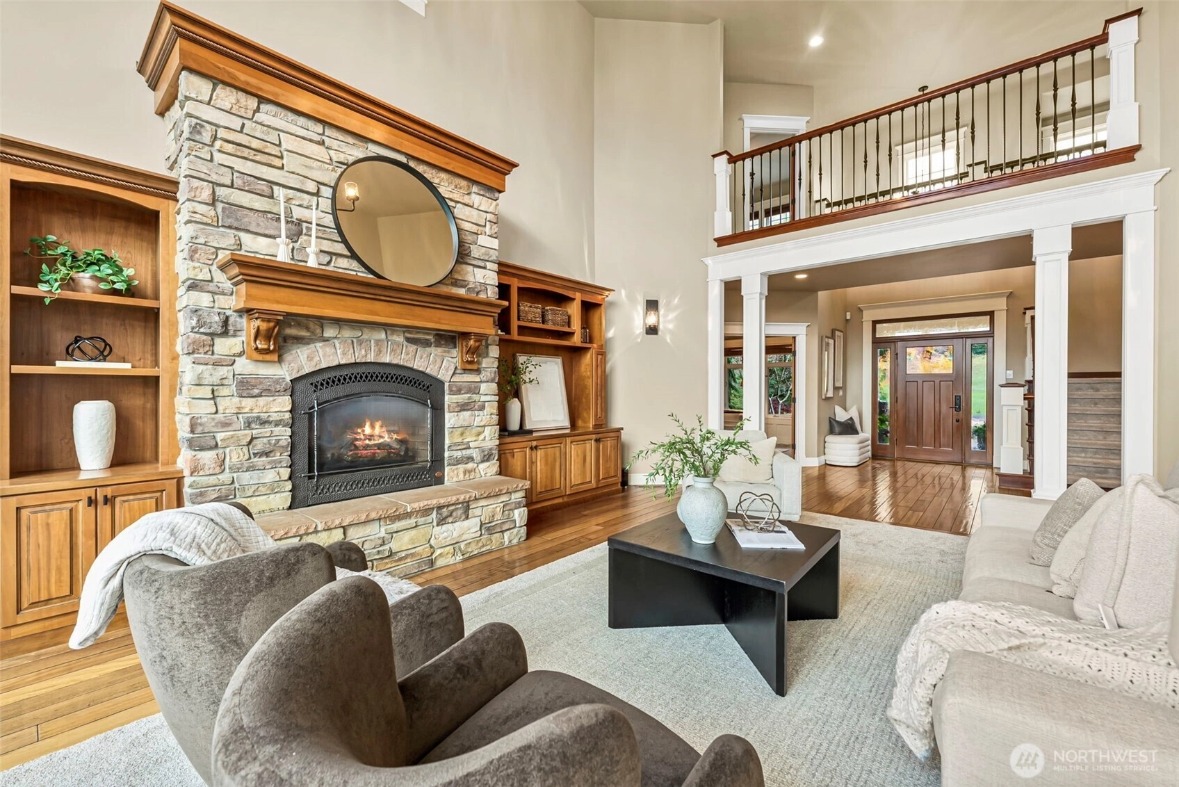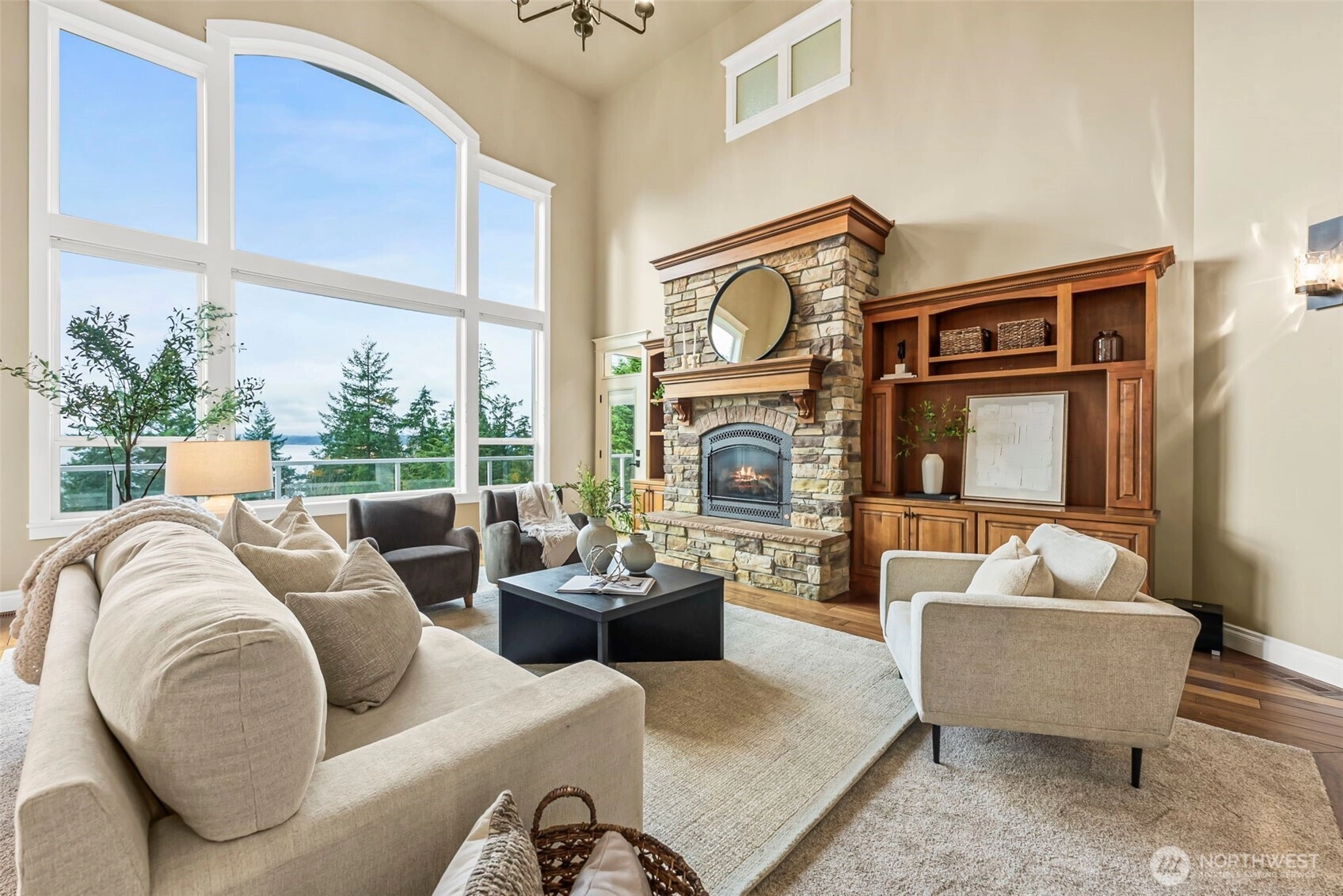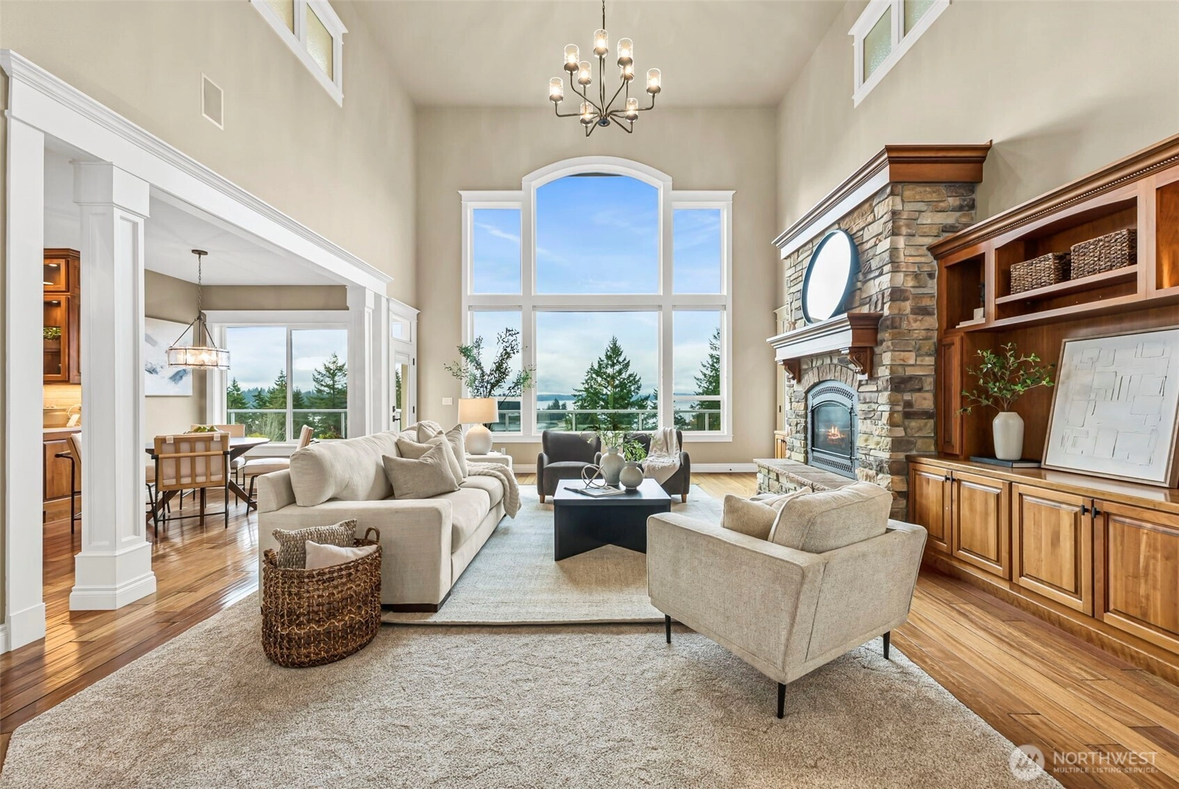 Exquisite 4,800+ sq ft custom builder's home by Eagle Homes, perfectly situated on 1 acre to capture unforgettable sunsets. This refined two-story with daylight basement offers 4 bedrooms, 3.25 baths,& exceptional craftsmanship throughout. The expansive chef's kitchen showcases a grand island, eating nook,& is open to a 2 story great room that features a beautiful stone fireplace. The luxurious primary suite includes a double sided fireplace, quartz counters, soaking tub, & upscale finishes. The media room impresses with a fireplace, projector, 110" screen,& built in cabinetry equipped with microwave, bar sink, & beverage fridge. Extensive updates, including new carpet throughout, elevate every space. This is truly a rare, luxury view home.