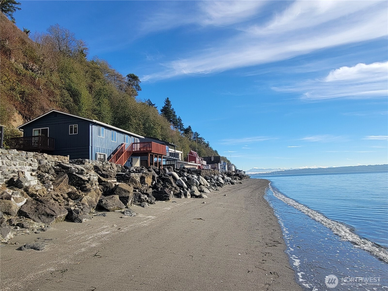 Come live the Hat Life! This home lives large indoors & out & literally sits right on one of the most beautiful, sandy beaches you'll see in WA State. Every room in the house, even the garage, has an incredible 180* Southerly view of the Mukilteo ferry crossing, Mt Rainier, Olympic Mtns, sunsets & amazing whale watching up close. The beachside patio has built-in firepit & stairs to the beach to enjoy beach walks, clamming, crabbing & kayaking. Upper level has a brand new deck, vaulted ceilings, 2 beds & full bath. Lower level is spacious, 3/4 bath & its own separate entrance. Garage, fenced yard & new ext paint. On island enjoy the USGA rated golf course, pickleball, community garden & community events. Deeded, 2nd class tidelands do convey