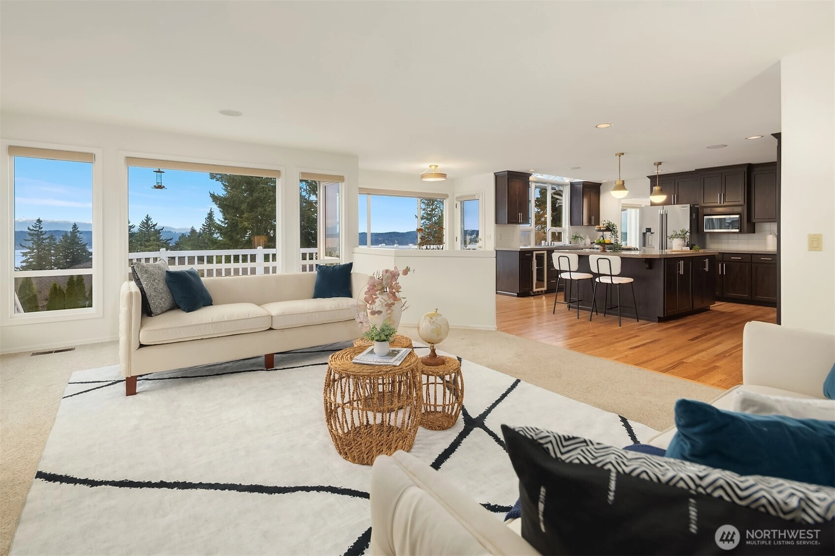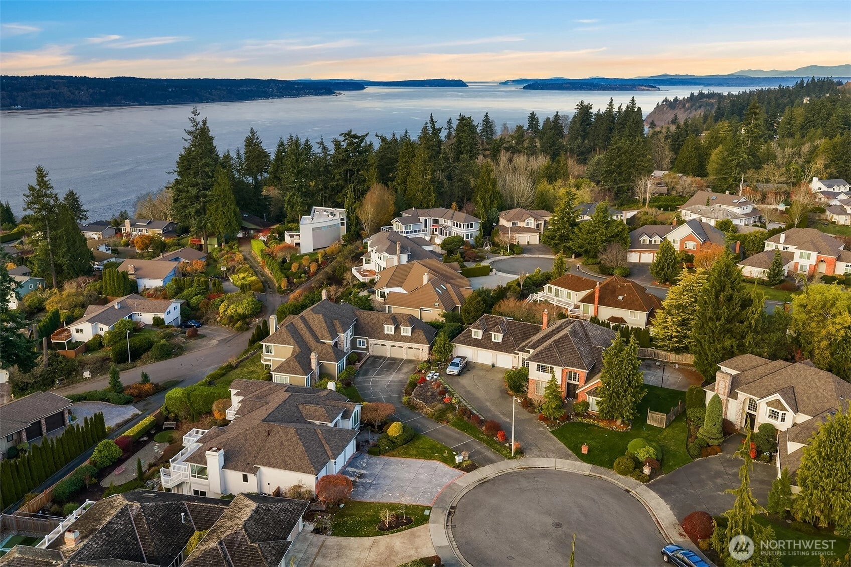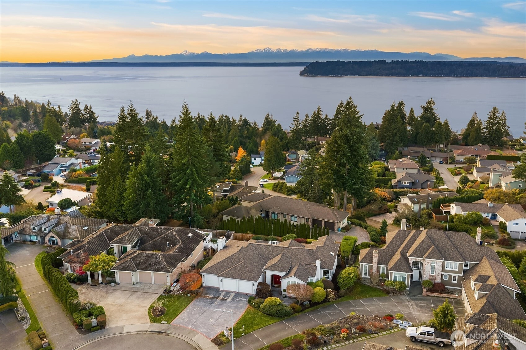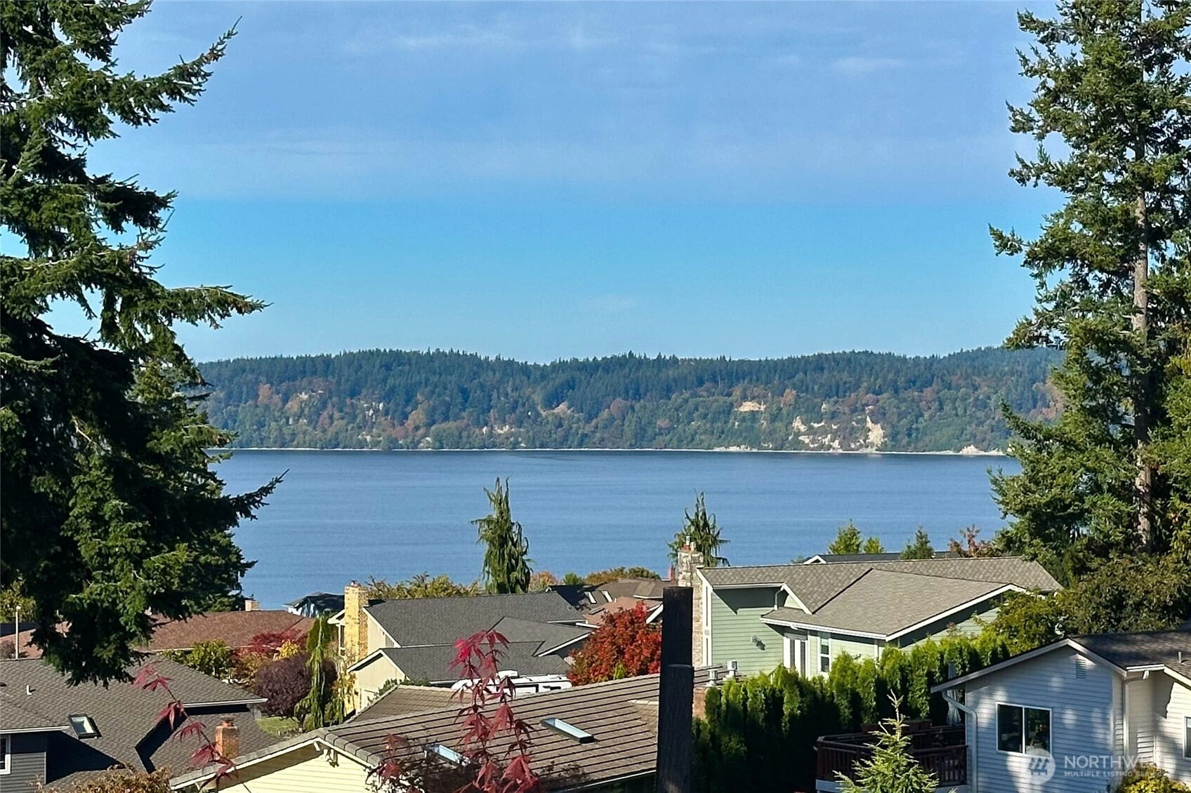 Amazing Mukilteo view home with fabulous floor plan designed to maximize vistas of the water & mountains. Expansive main-floor primary suite with vaulted ceilings, 5-piece bath and view deck. Updated kitchen w/ quartz counters, gas top, double oven, new stainless appliances. Main floor also features oak floors, two fireplaces & a powder room. The lower level features 3 additional bedrooms, including a 2nd primary suite, remodeled bathroom, large bonus rec room. Lower potential kitchenette with addition of appliances, perfect for an ADU. Large 3-car garage with shop bench. Huge hidden stand-up storage in the basement, not included in the SF. New 2024 presidential roof, new gas furnace & central A/C. Quiet private street of just 7 homes.