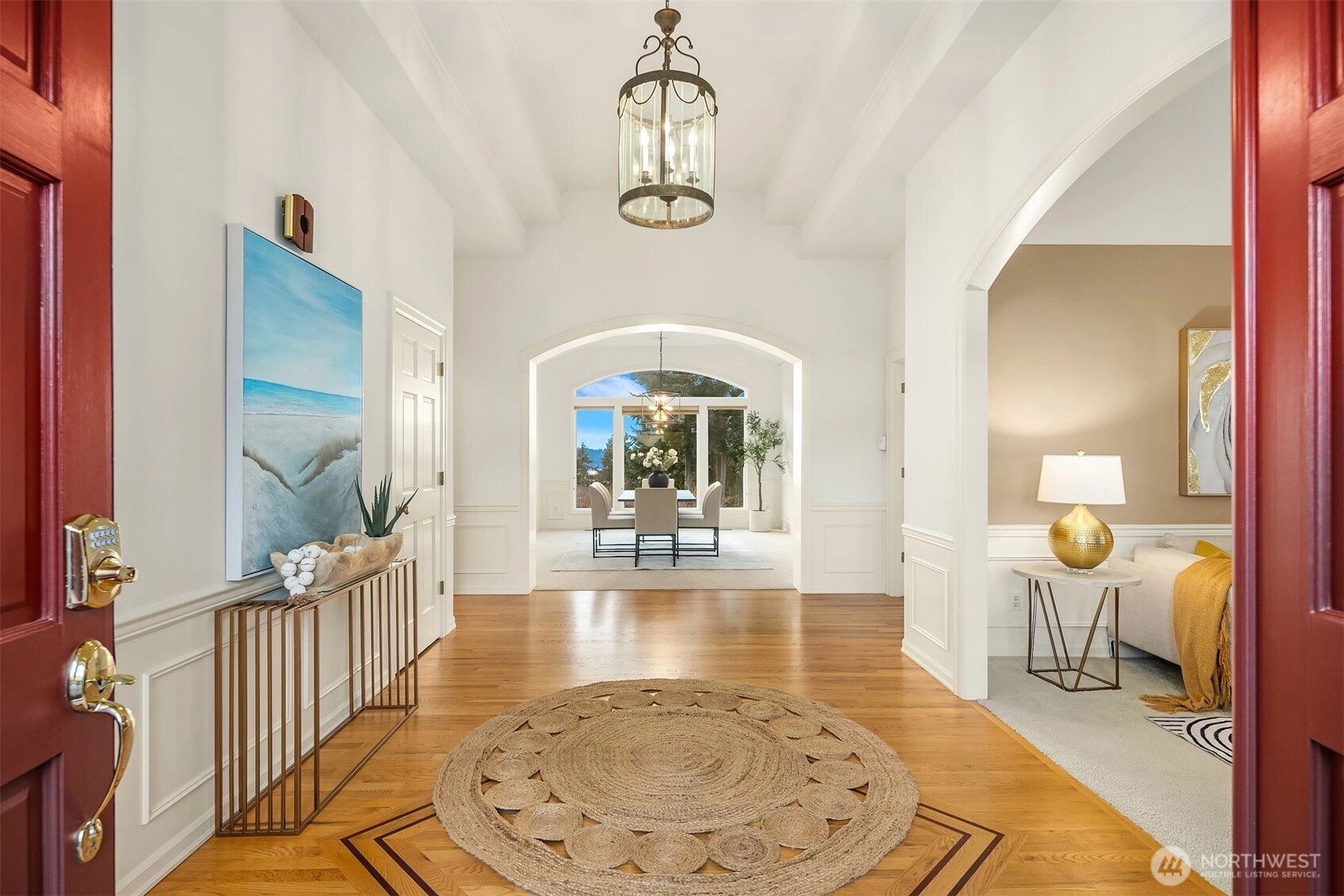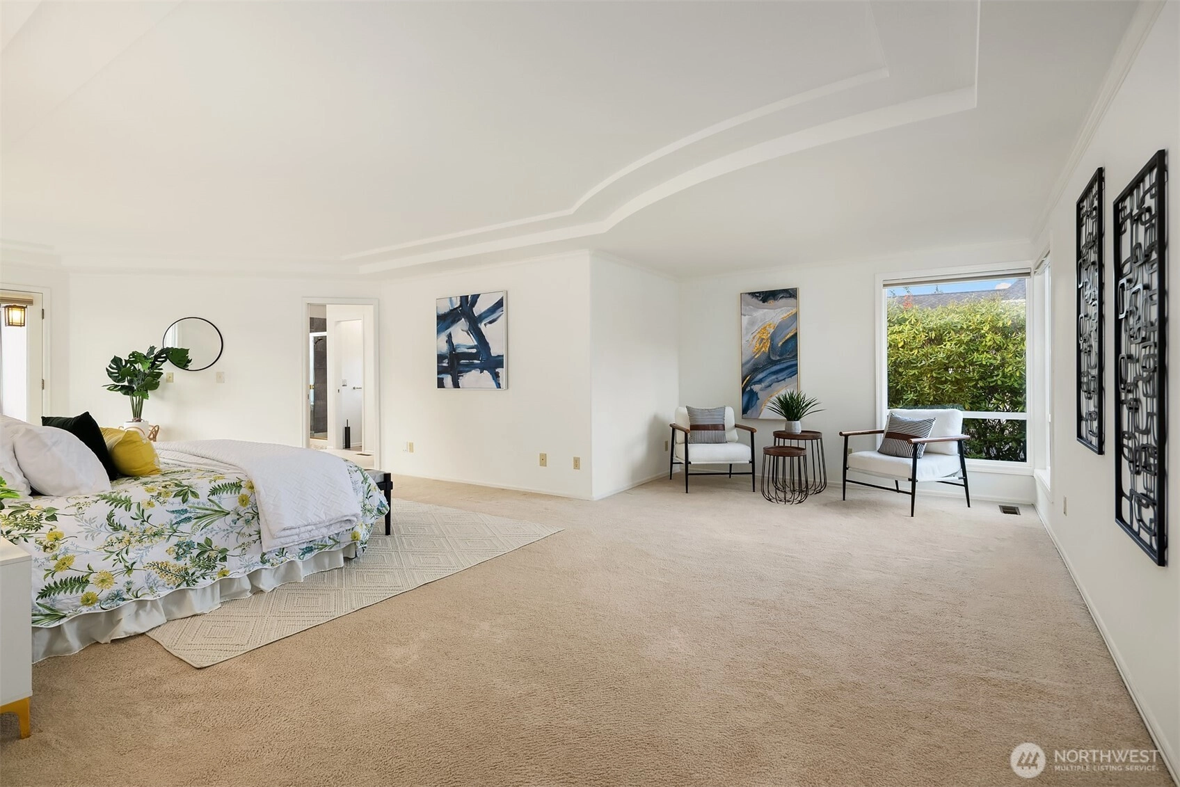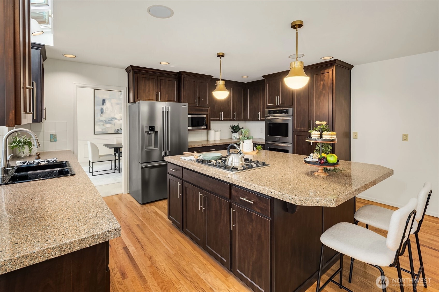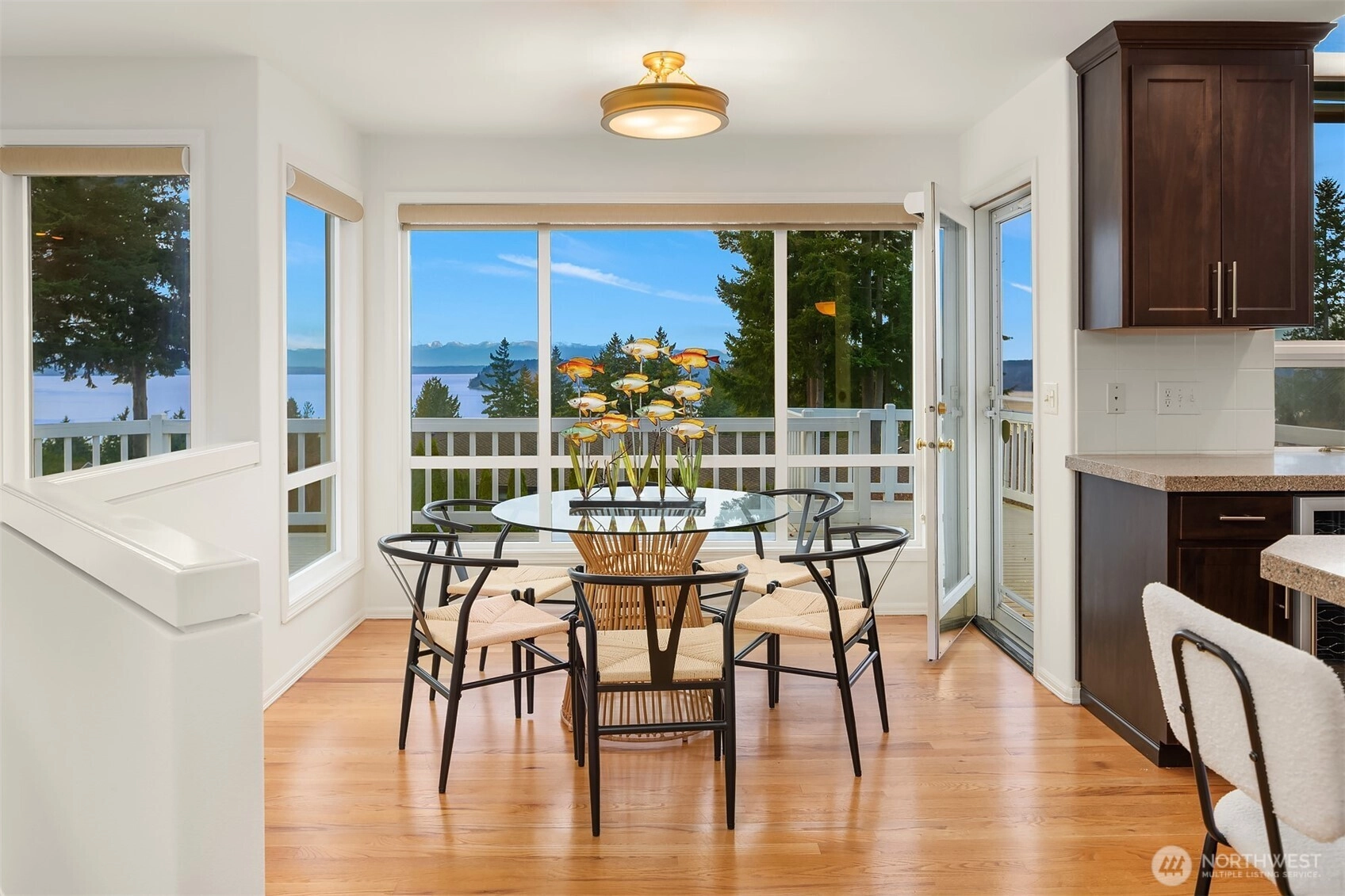 Amazing Mukilteo view home with fabulous floor plan designed to maximize vistas of the water & mountains. Expansive main-floor primary suite with vaulted ceilings, 5-piece bath and view deck. Updated kitchen w/ quartz counters, gas top, double oven, new stainless appliances. Main floor also features oak floors, two fireplaces & a powder room. The lower level features 3 additional bedrooms, including a 2nd primary suite, remodeled bathroom, large bonus rec room. Lower potential kitchenette with addition of appliances, perfect for an ADU. Large 3-car garage with shop bench. Huge hidden stand-up storage in the basement, not included in the SF. New 2024 presidential roof, new gas furnace & central A/C. Quiet private street of just 7 homes.