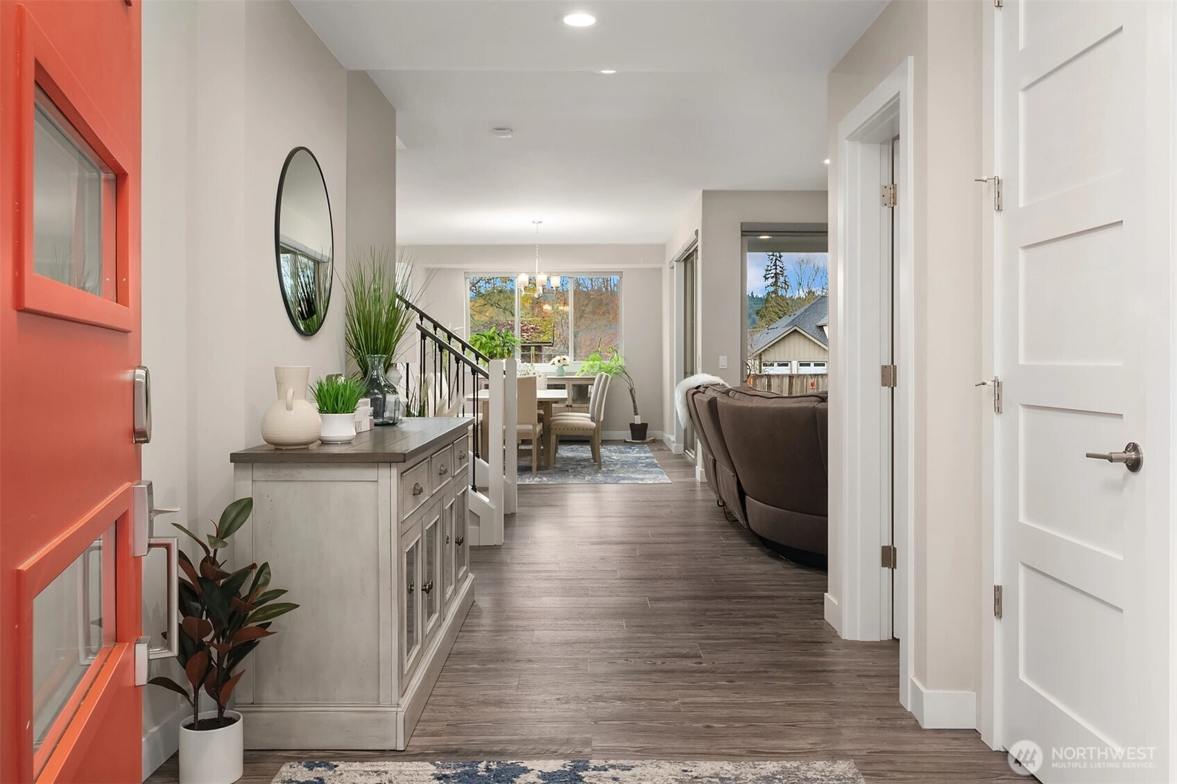 Discover this stunning home on one of the largest lots in Serene Estates! This east-facing contemporary shines with custom finishes, a long private driveway, hardwood floors & central AC. The gourmet kitchen features quartz counters, gas cooktop, stainless appliances & upgraded cabinetry. Main-level office/bedroom with full bath is ideal for guests or multigenerational living. Luxurious primary suite includes a spa-inspired bath & Elfa closet. Three additional bedrooms plus bonus room offer flexibility for media, play or work. Covered patio opens to an expansive, private backyard perfect for entertaining. Three-car tandem garage provides ample storage. Walk to downtown Carnation, schools, parks, and trails. Pre-inspected for peace of mind.
