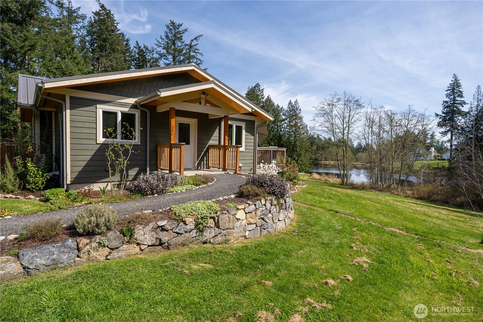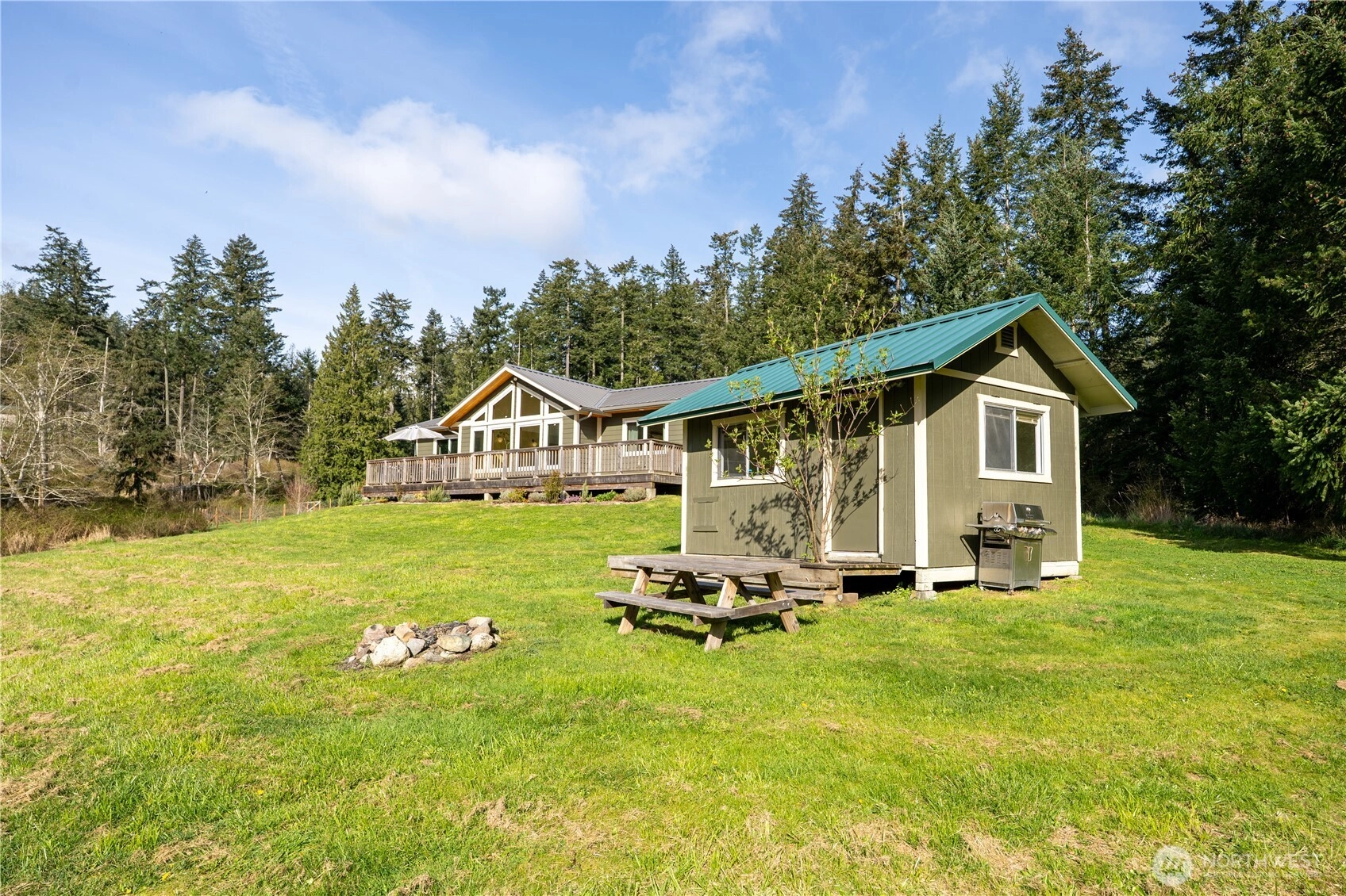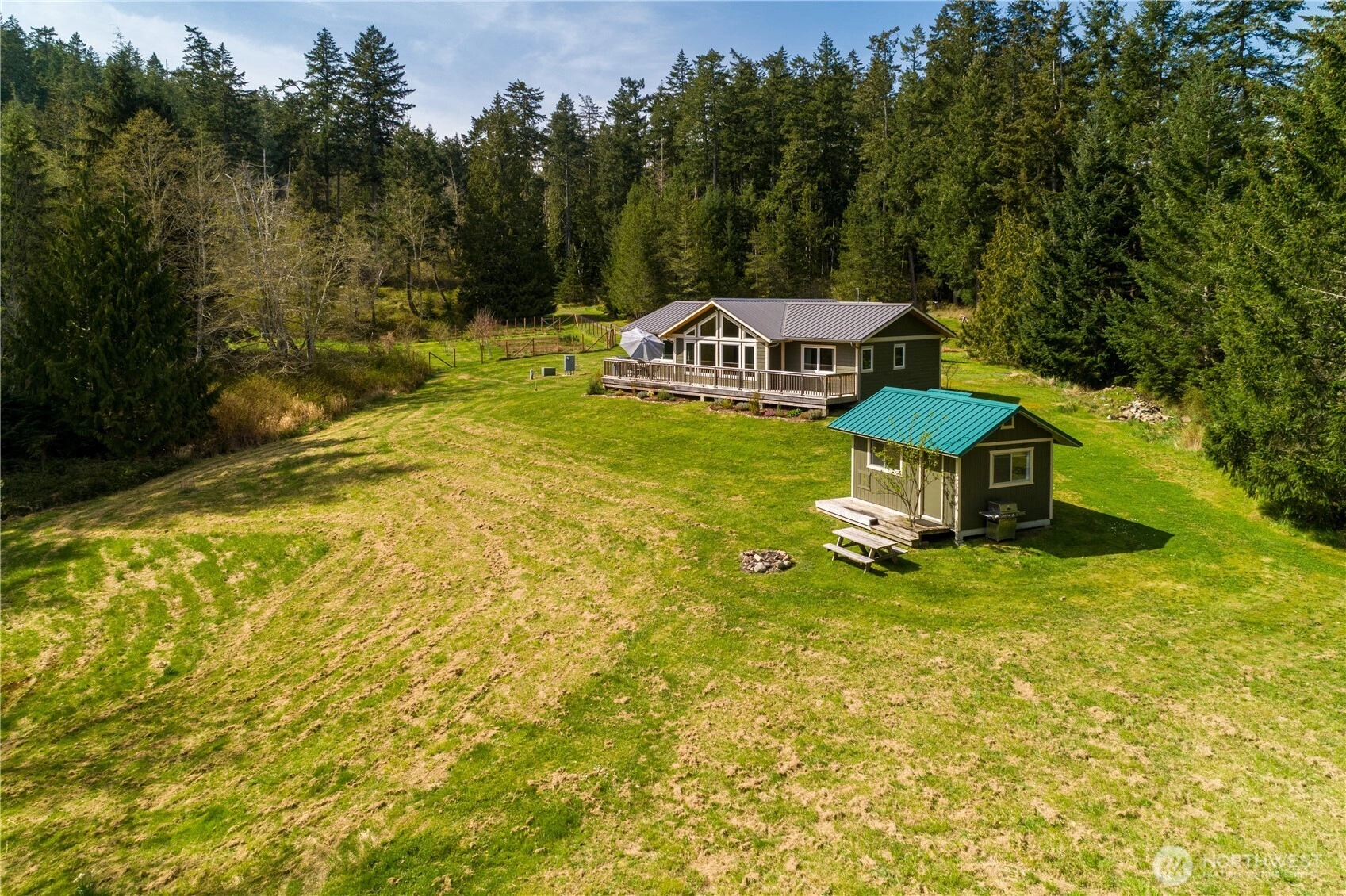 This inviting 1,368 sq. ft. lakefront home offers two bedrooms and one and three-quarter baths in a spacious great room design. Set on 5.5± acres with coveted south-facing exposure, the home is bathed in natural light and showcases stunning views of the lake. A large fenced garden with orchard provides a perfect setting for those who love to grow and harvest, while the 1,380 sq. ft. garage/shop with attached studio or office creates abundant space for work, hobbies, or storage. A charming detached studio adds even more versatility—ideal as a guest retreat or art space Private well, a 4-bedroom septic system, and serene mix of woods and meadow, this property blends comfort, functionality, and natural beauty into a rare and peaceful retreat.